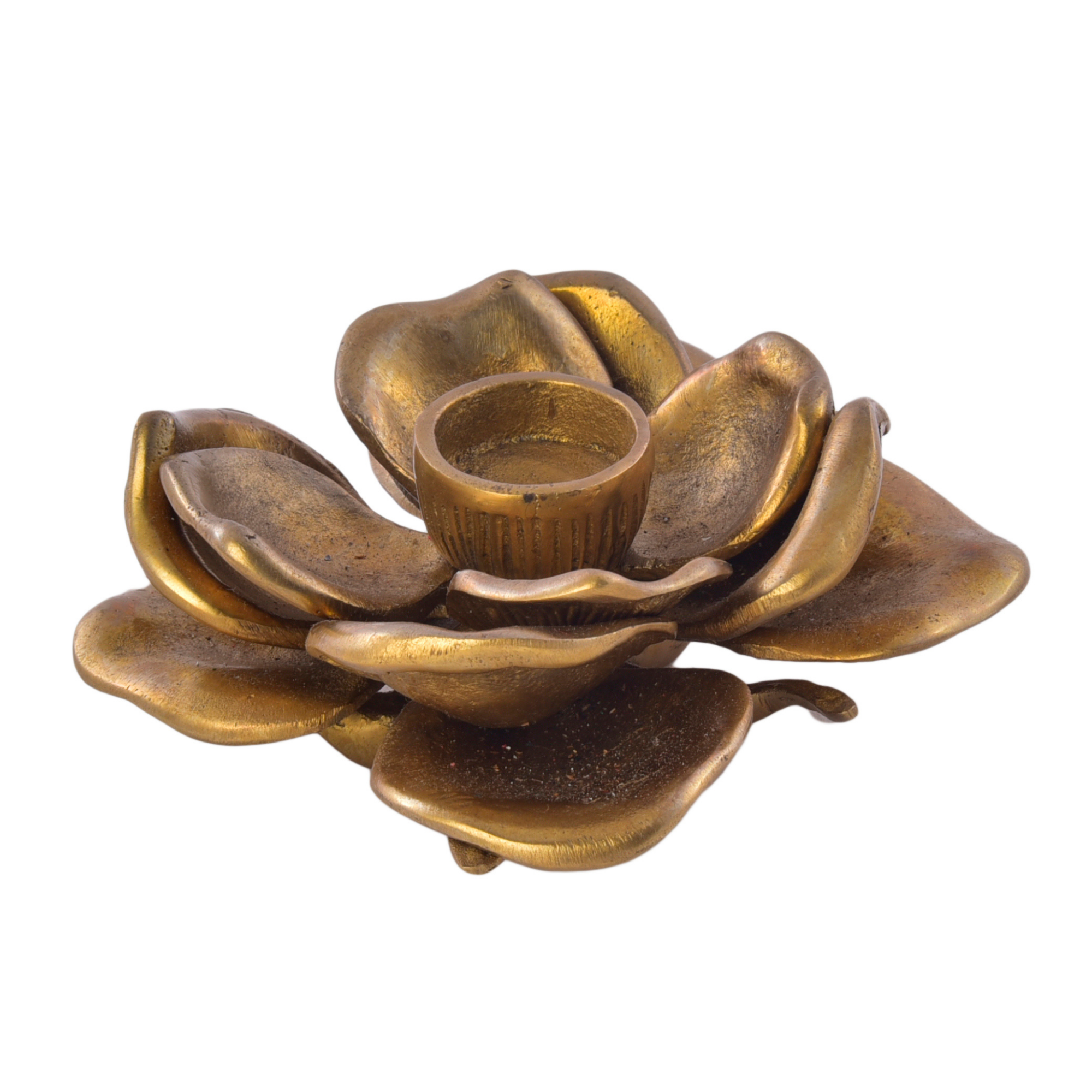 Brass Flower Candle Stand – Handcrafted Brass Diya Holder for Home & Temple
