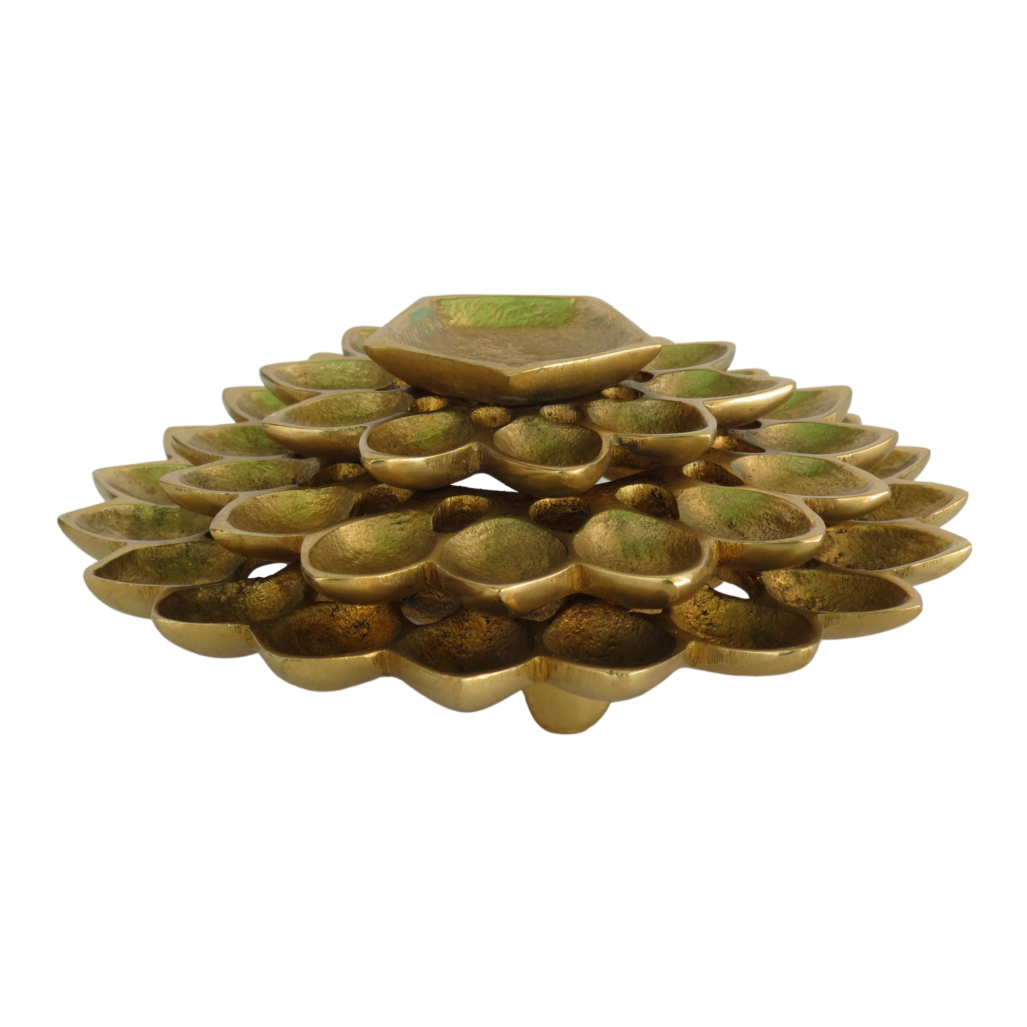 Unique Flower Shape Design with 3 round oil lamps for traditional pooja