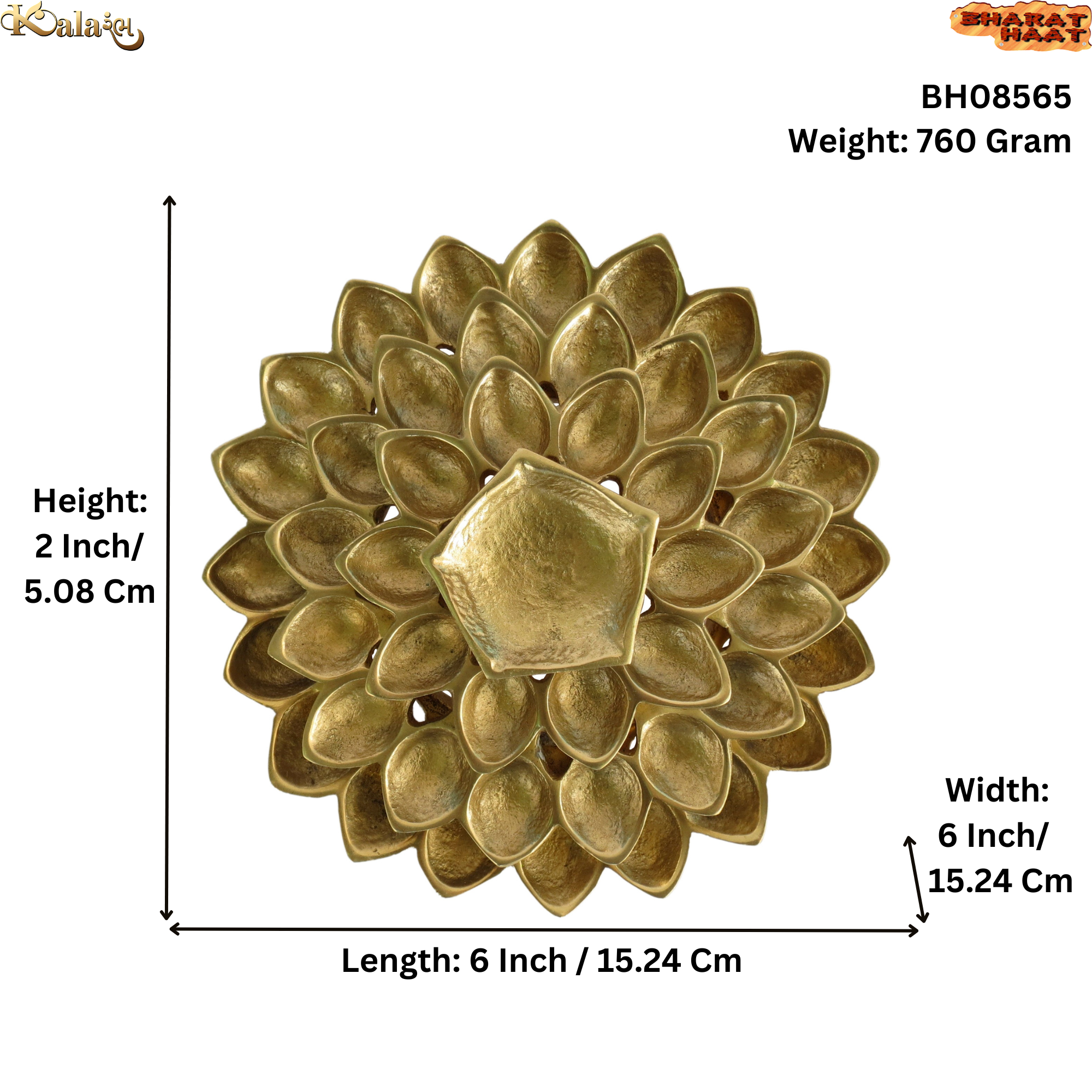 Brass Flower-Shaped Diya with 3 Round KBH08565