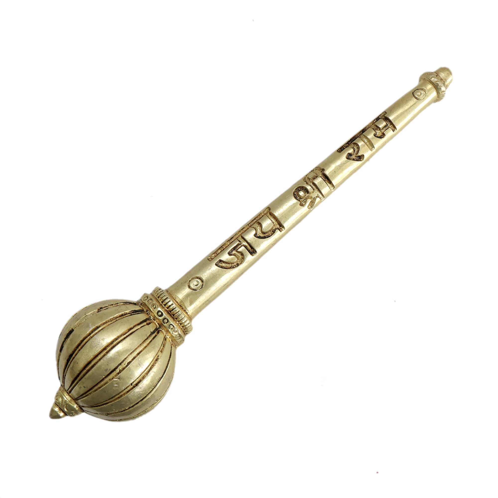 This authentic brass mace attracts positive energy, removes obstacles, and invites divine blessings to your mandir. Ideal for Hanuman devotees, spiritual collectors, and traditional home decor enthusiasts. Essential religious artifact for Indian households seeking powerful spiritual symbols, blessed atmosphere, and divine protection in their prayer area and worship space.
