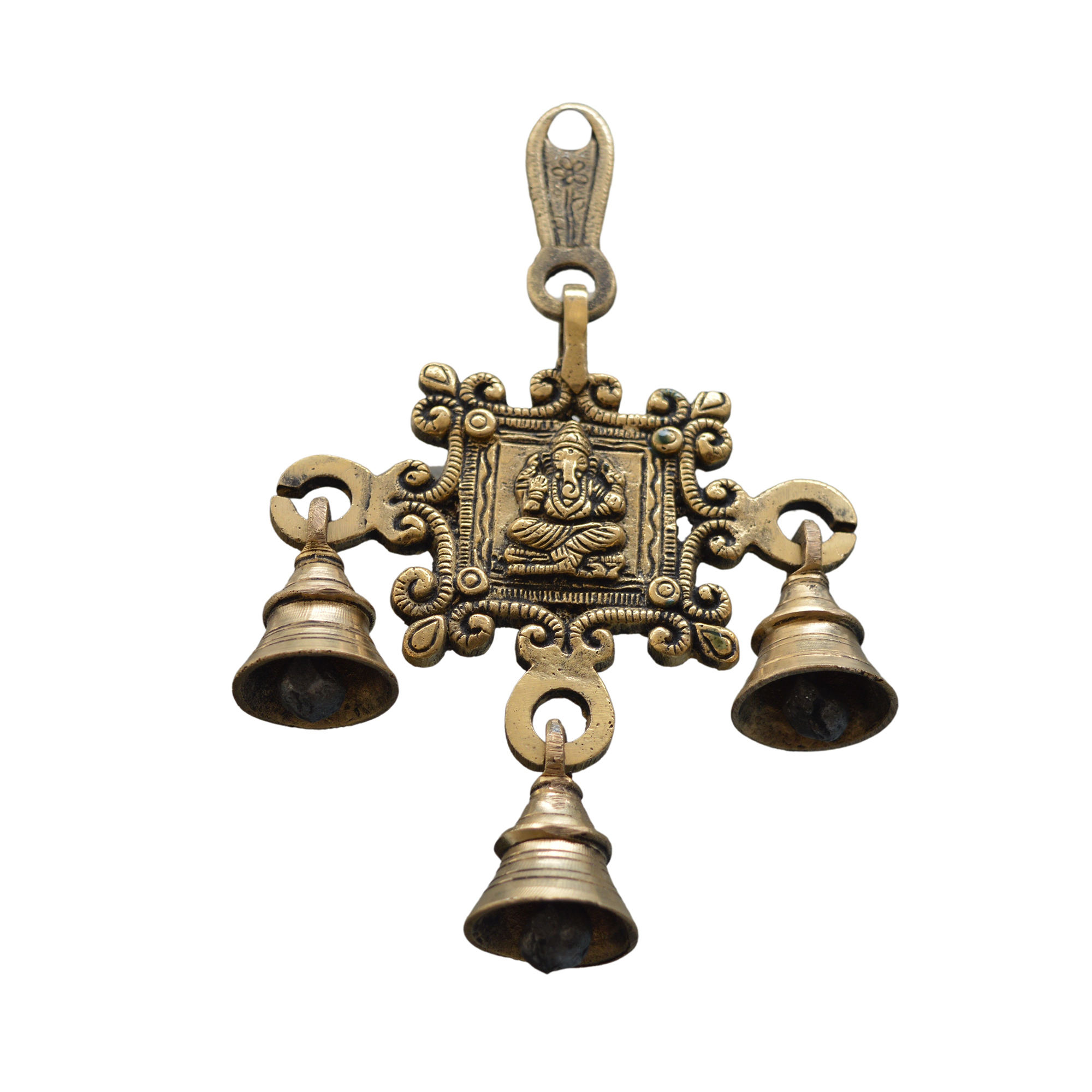 Beautiful Brass Ganesh Bell Hanging featuring a traditional Ganpati design. Perfect for home décor, temple use, or gifting.
