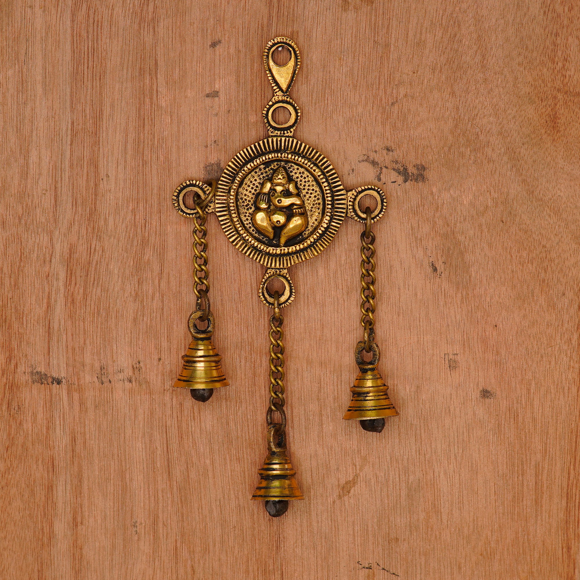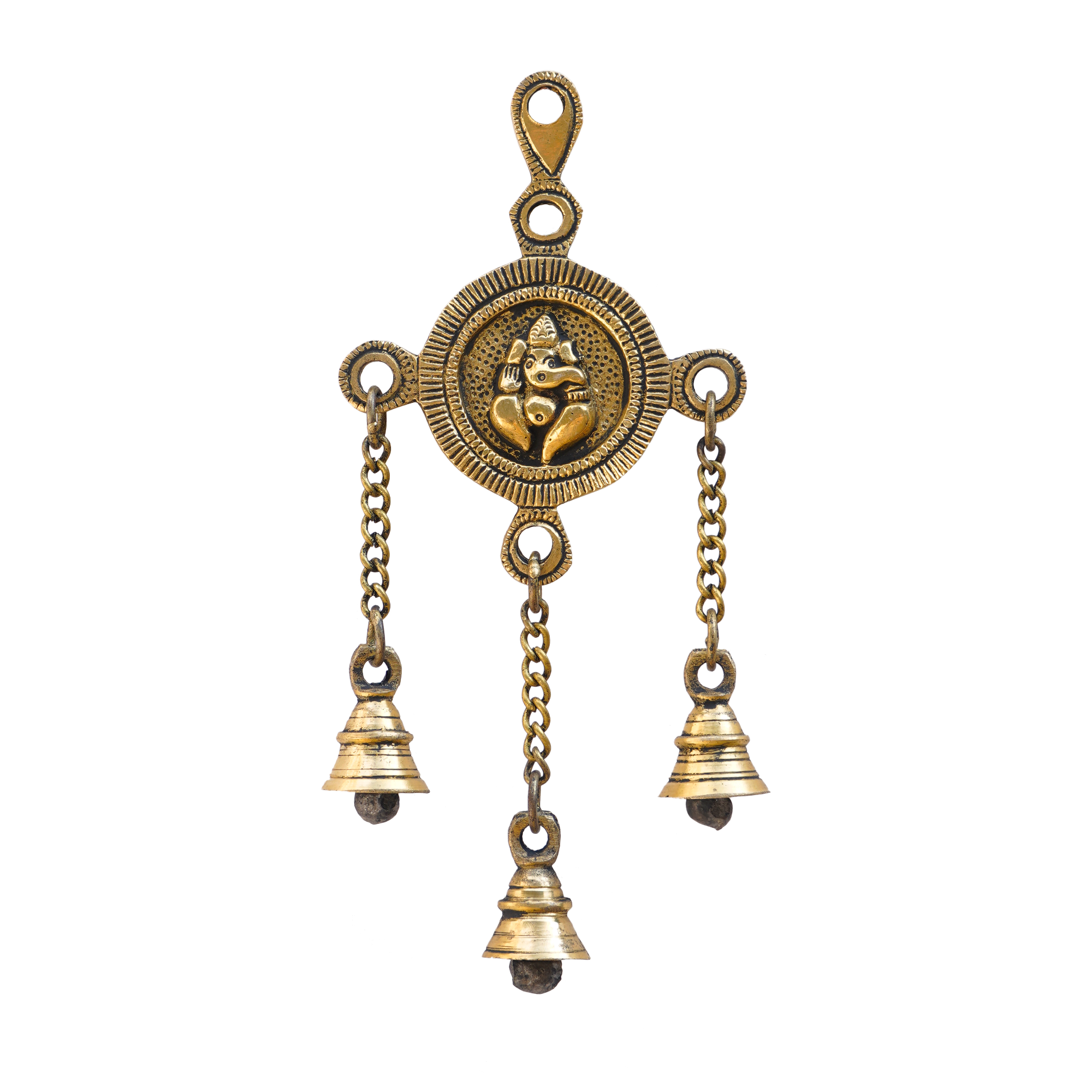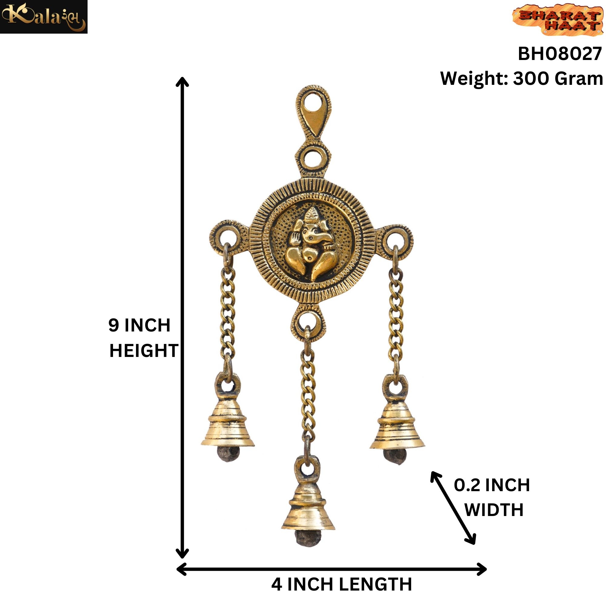 Decorative Brass Ganesh Bell with fine detailing, perfect for home temples and spiritual wall decor.