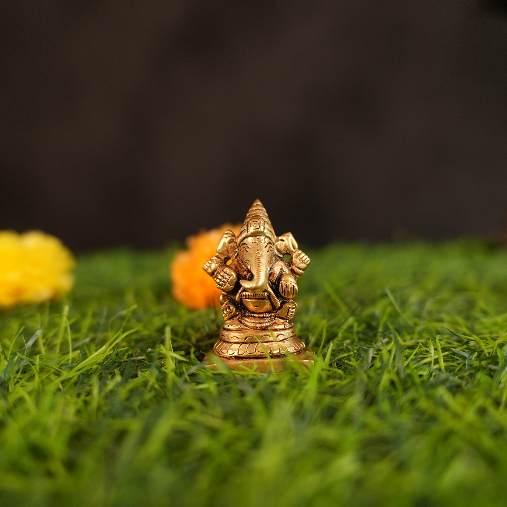 Miniature Brass Ganesh statue, 1 Pc, size 1.4 x 1.1 x 2.2 Inch, 150g. Perfect for altars, shelves, or as a thoughtful gift for devotees.