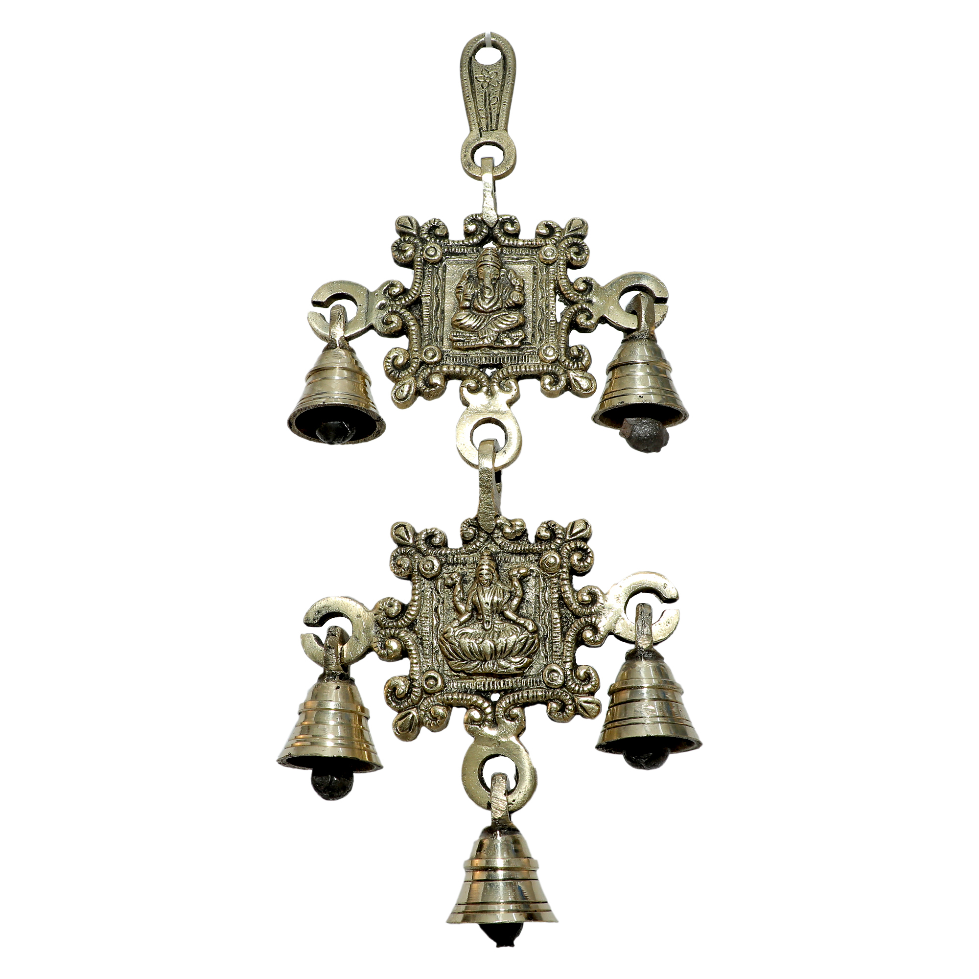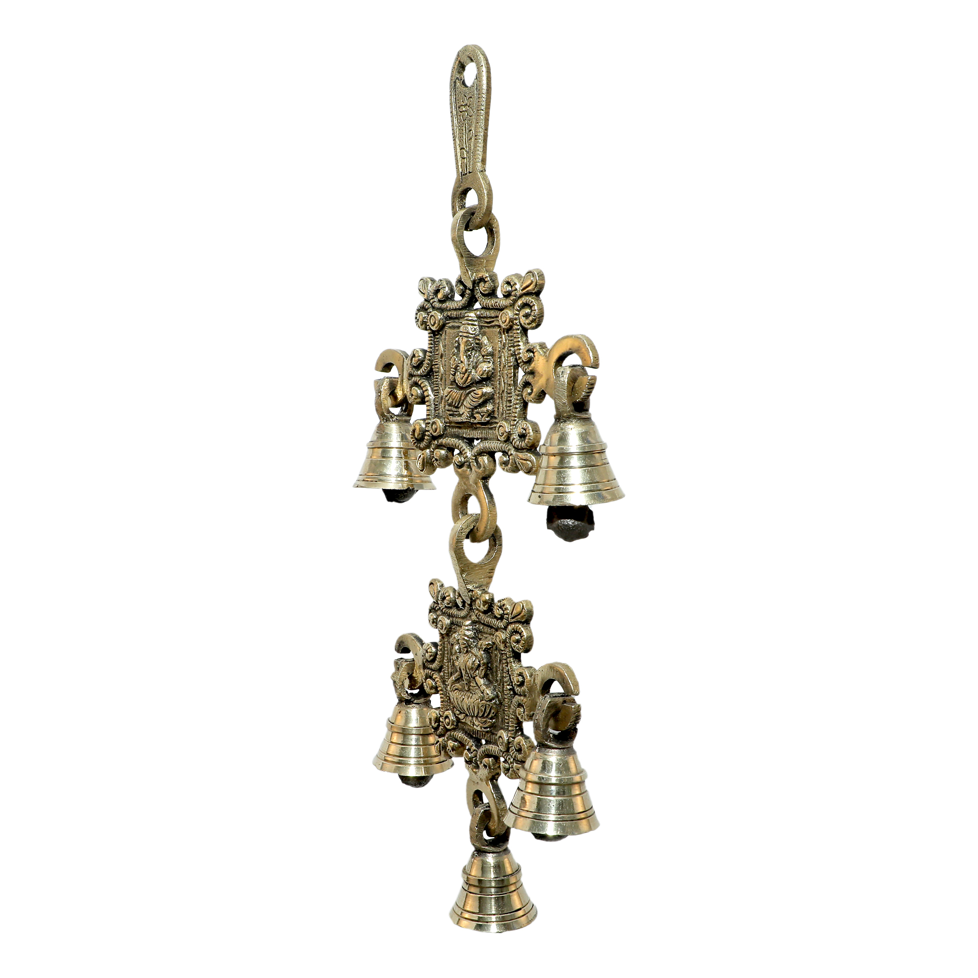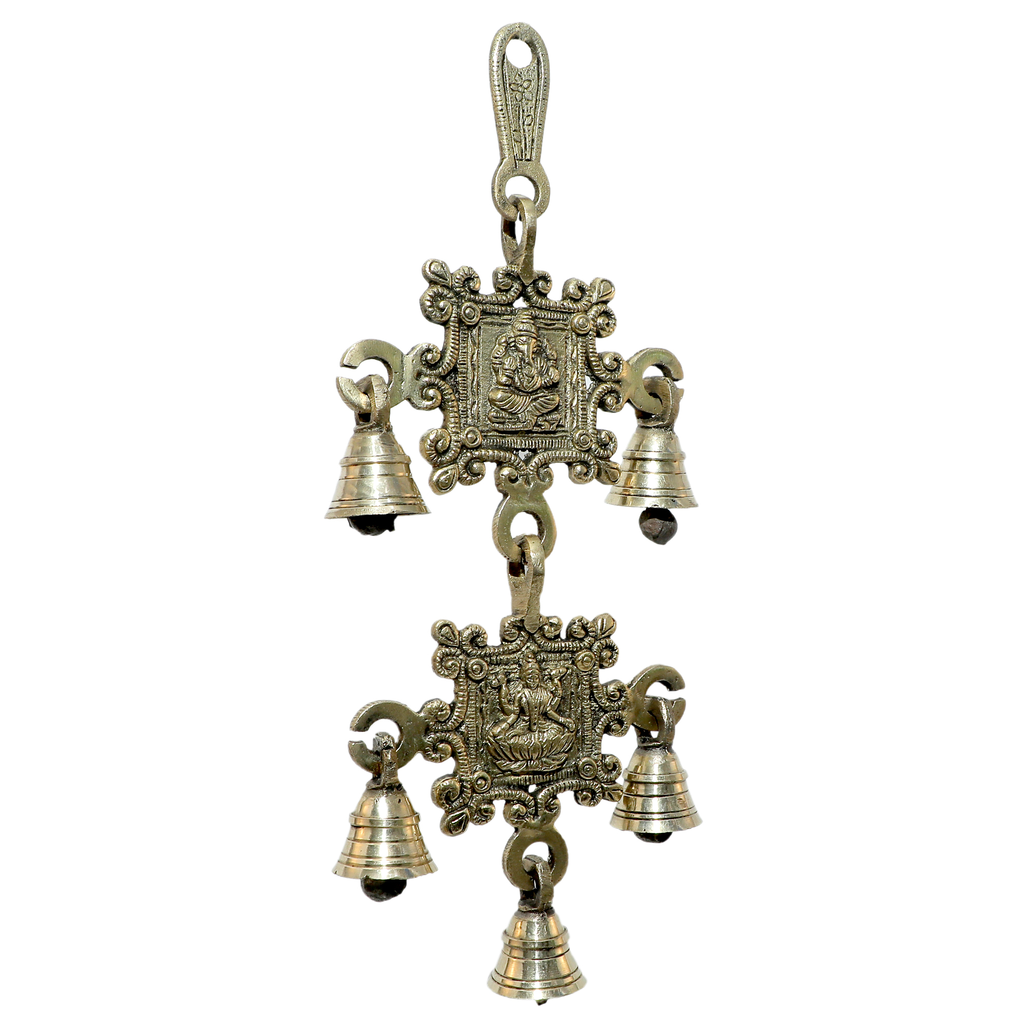 Handcrafted Pure Brass Ganesh & Laxmi Bell | Traditional Hanging Temple Bell for Home & Spiritual Décor, Add divine charm and purity to your space with this Handcrafted Brass Ganesh & Laxmi Bell. Expertly made by skilled Indian artisans, this temple bell features the sacred images of Lord Ganesha—the remover of obstacles—and Goddess Laxmi, the goddess of wealth and prosperity.