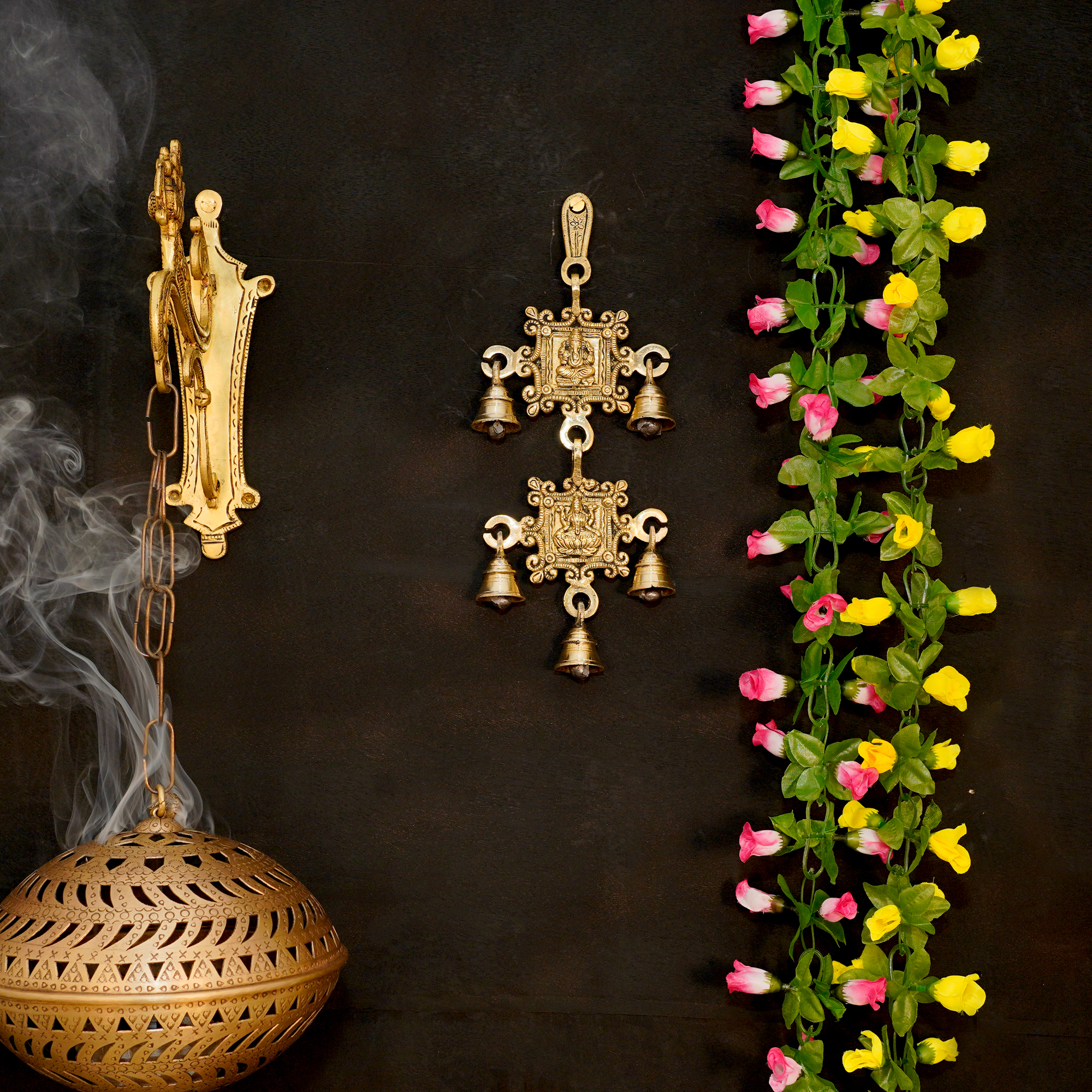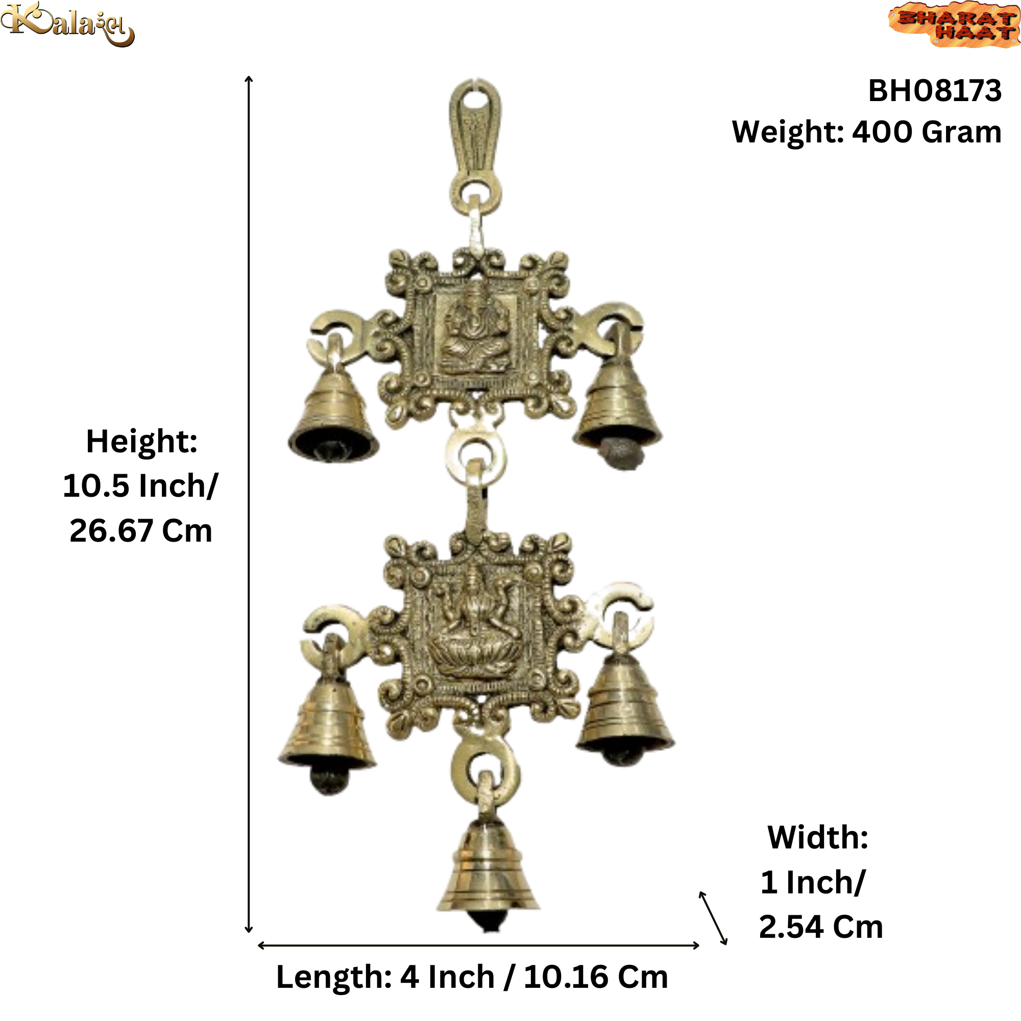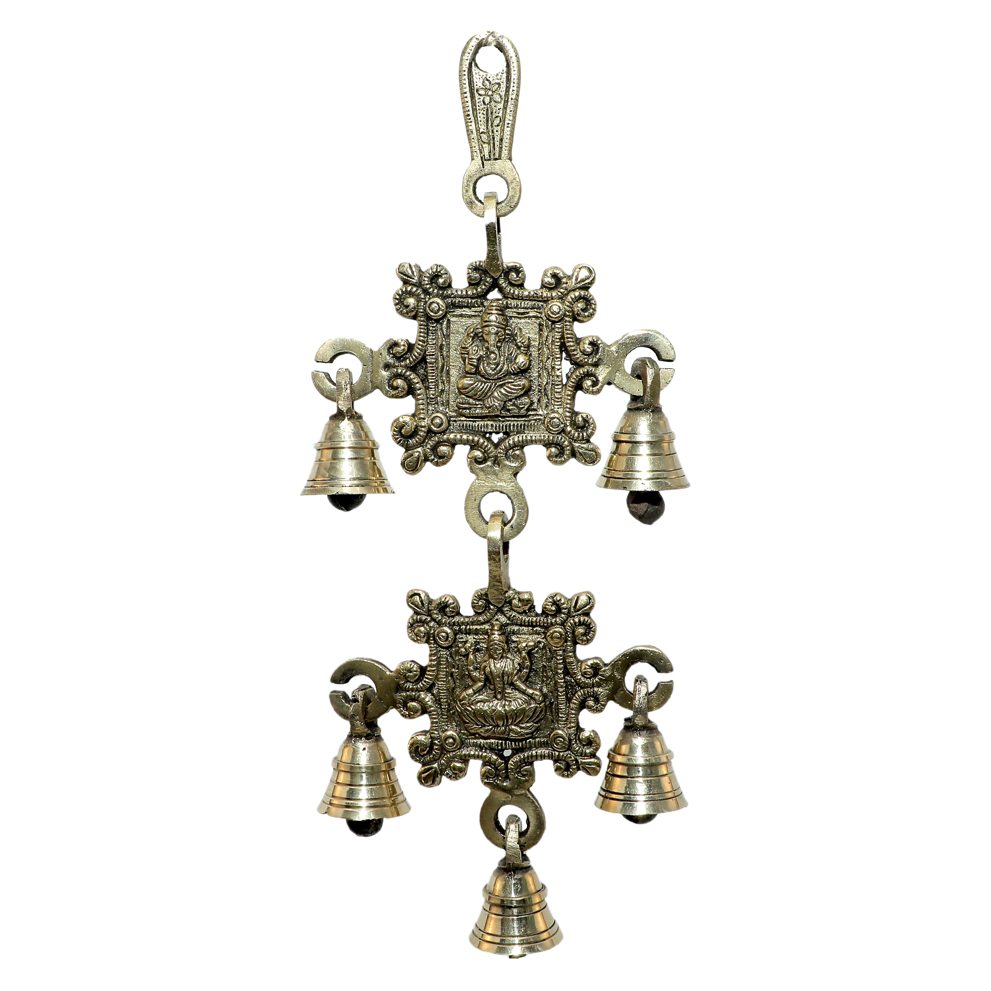 Handcrafted Pure Brass Ganesh & Laxmi Bell | Traditional Hanging Temple Bell for Home & Spiritual Décor, Add divine charm and purity to your space with this Handcrafted Brass Ganesh & Laxmi Bell. Expertly made by skilled Indian artisans, this temple bell features the sacred images of Lord Ganesha—the remover of obstacles—and Goddess Laxmi, the goddess of wealth and prosperity.