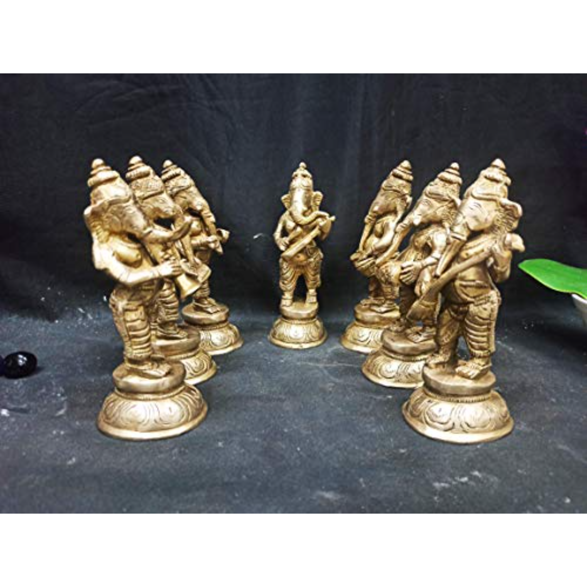 Handcrafted Brass Ganesh Musical Set, perfect for pooja rooms, home decor, or temple display, combining spiritual significance with artistic craftsmanship.