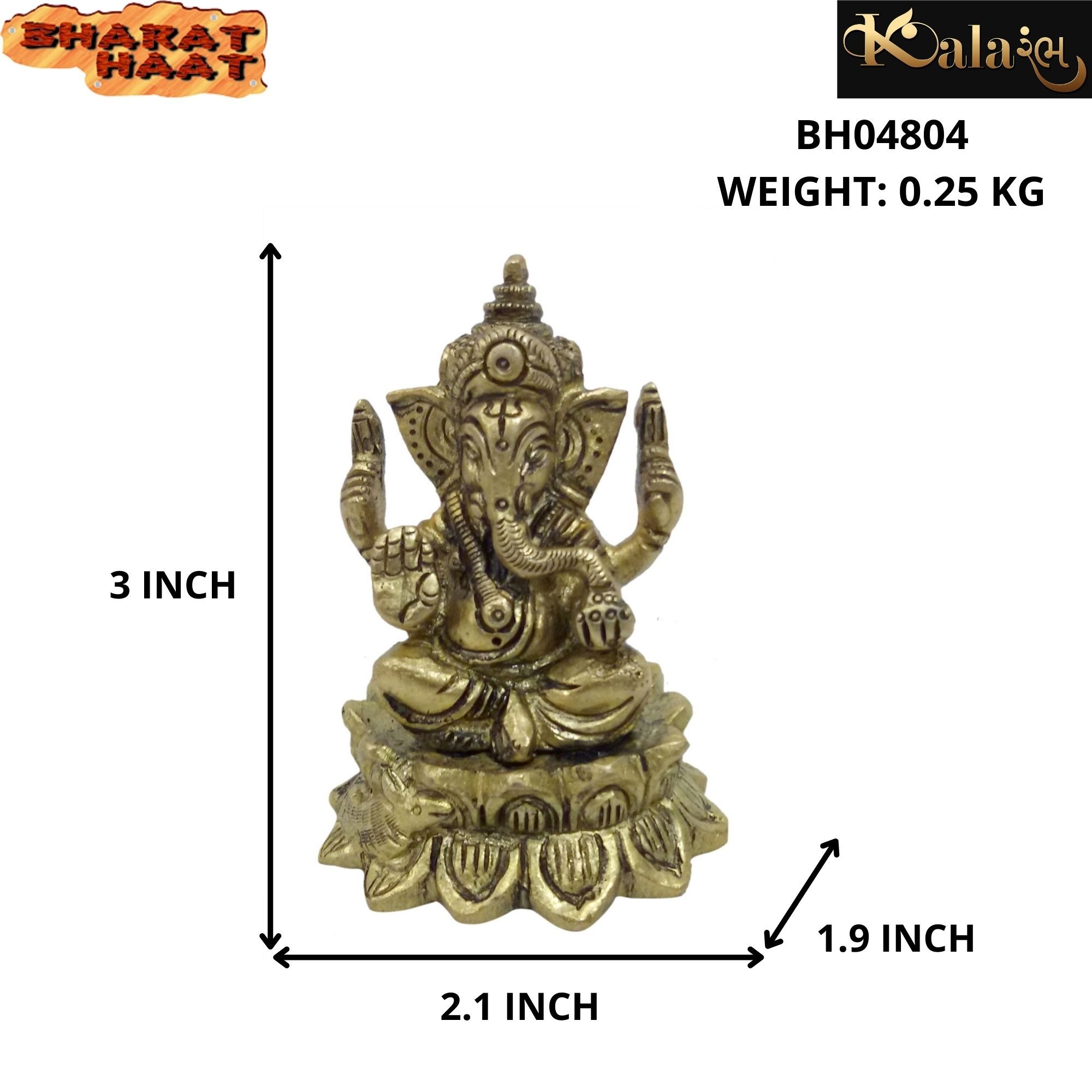 Miniature Brass Ganesh sitting on Kamal, ideal for pooja, gifting, or decorative display.