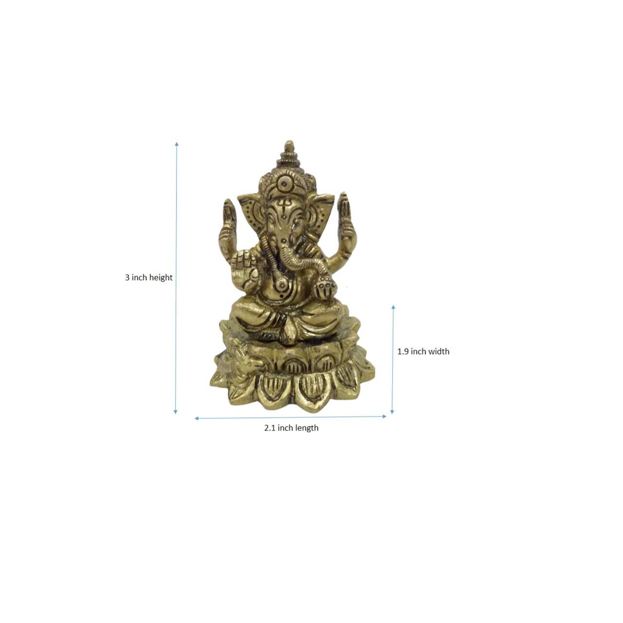 Design: Beautifully crafted small brass statue of Lord Ganesha seated on Kamla , symbolizing prosperity, wisdom, and spiritual blessings