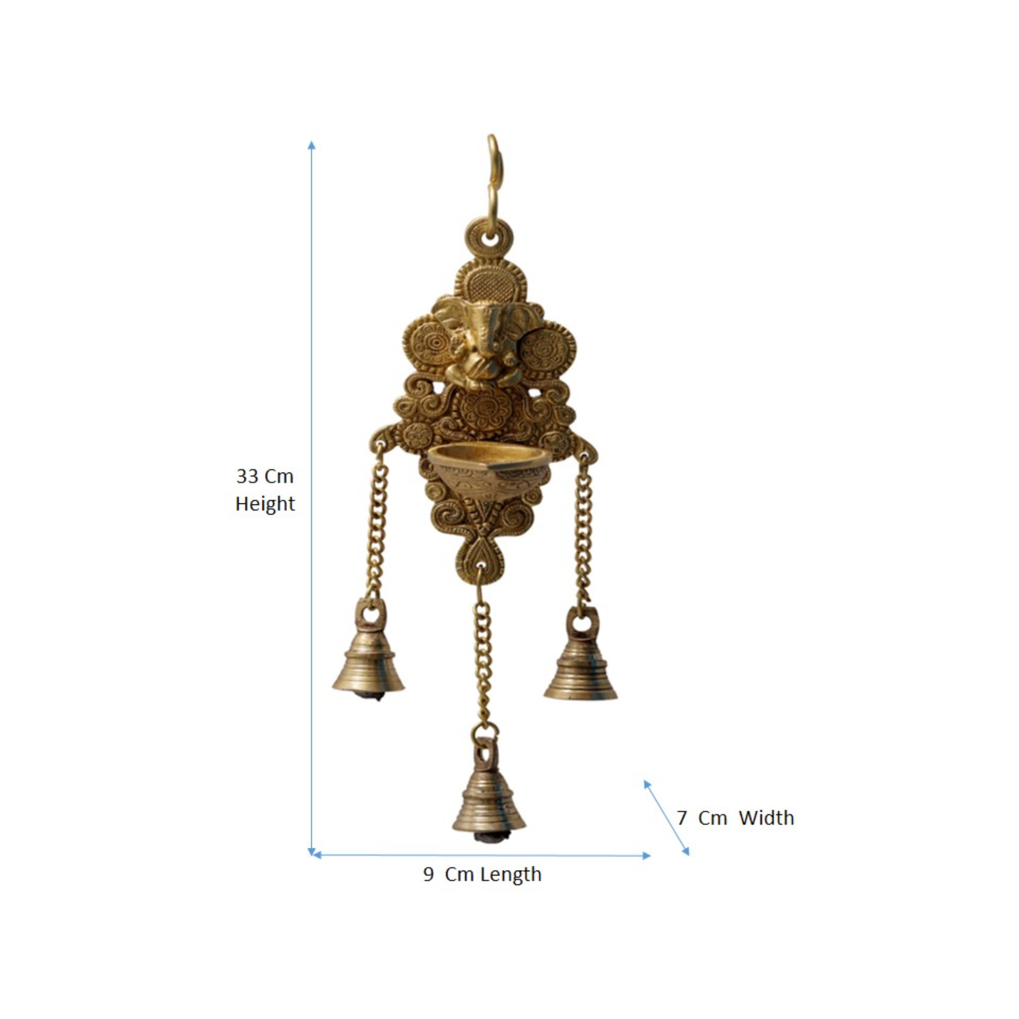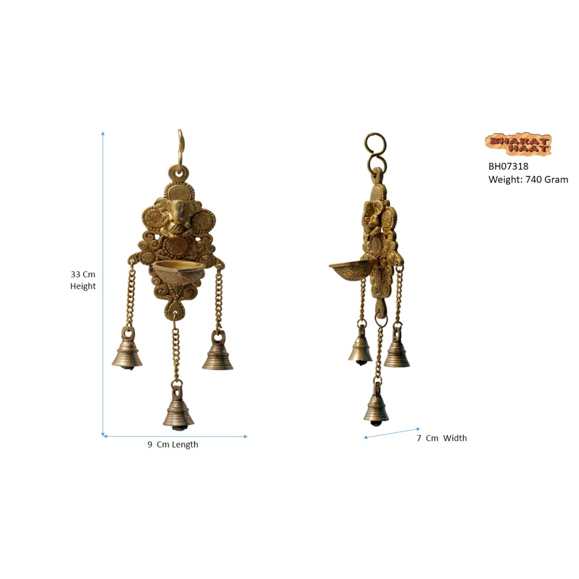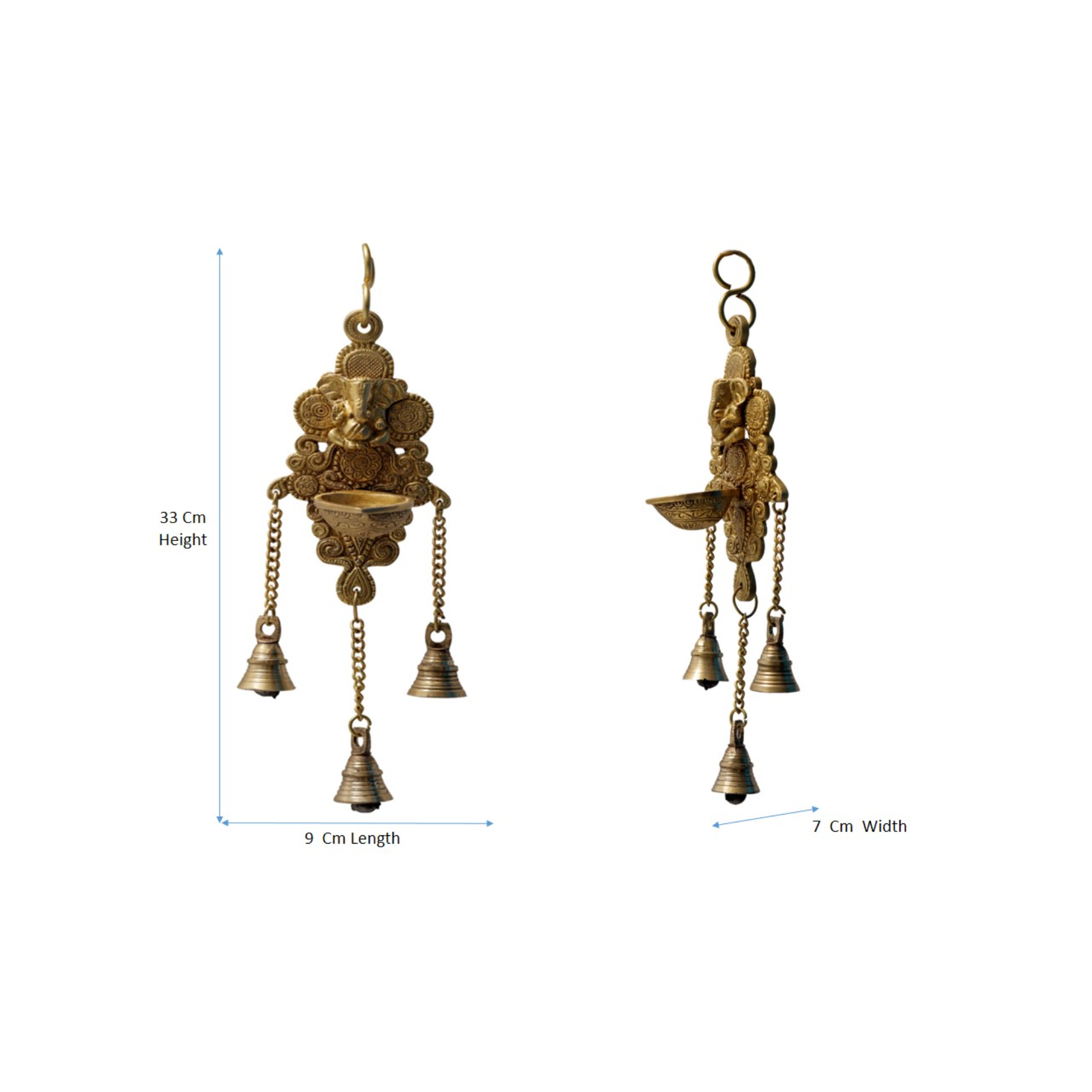 This Brass Ganesh Wall Hanging Diya features a beautifully crafted Ganesha design with a traditional brass deepak. With a height of 12 inch and strong brass build, it adds elegance to pooja rooms, entrances and home decor.