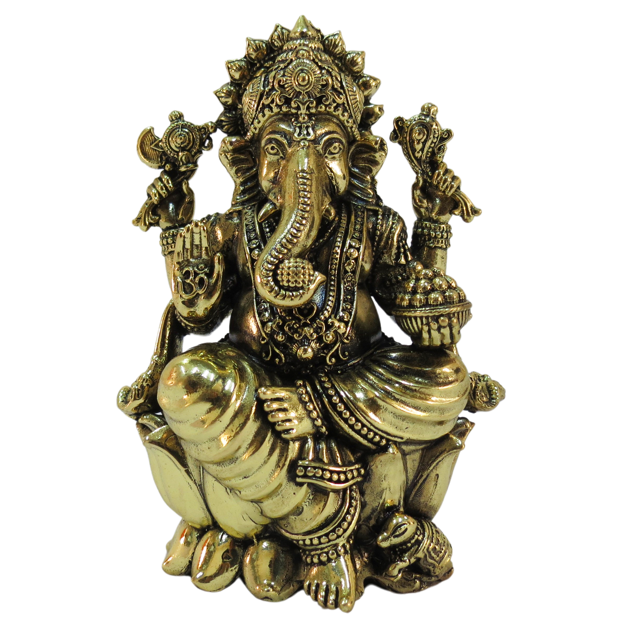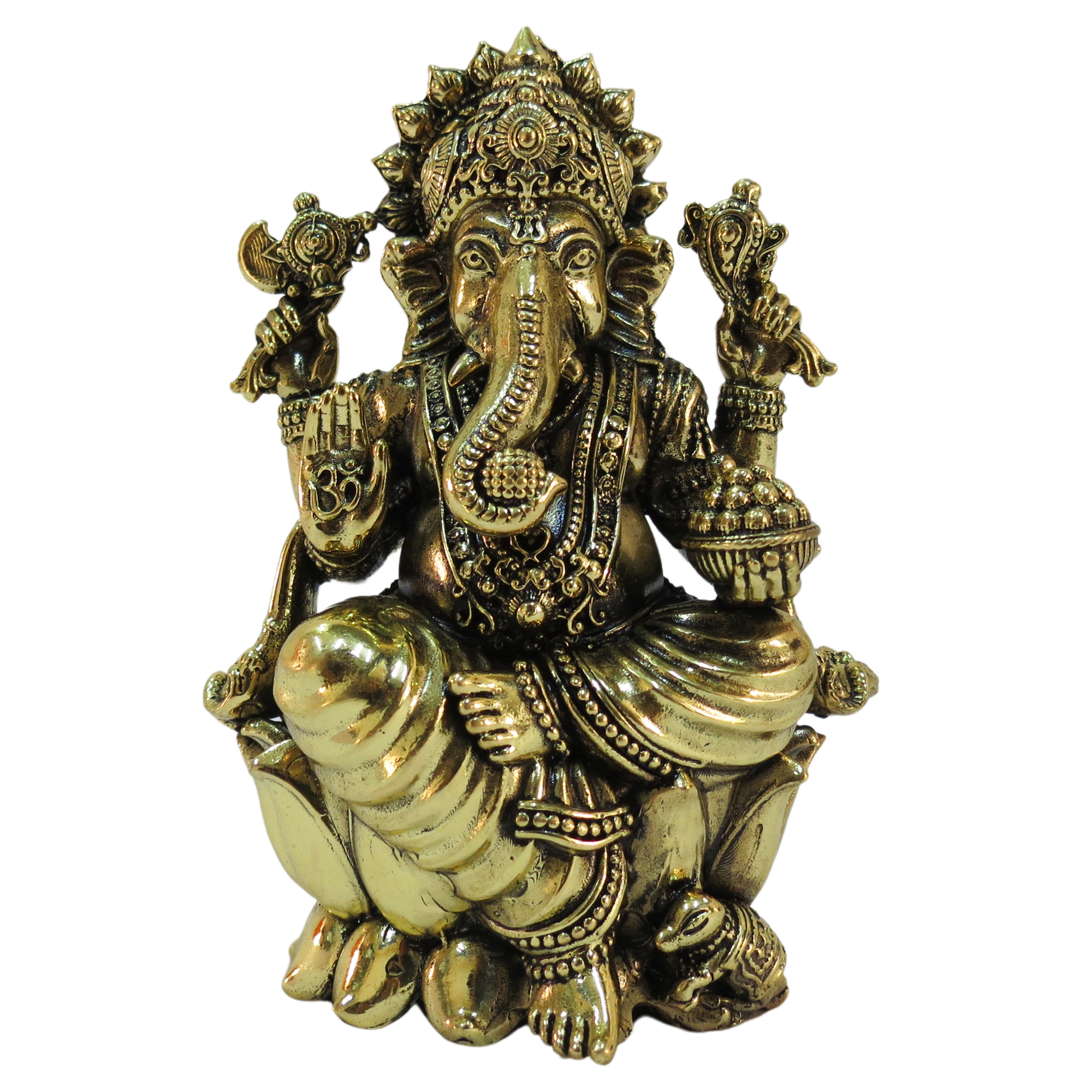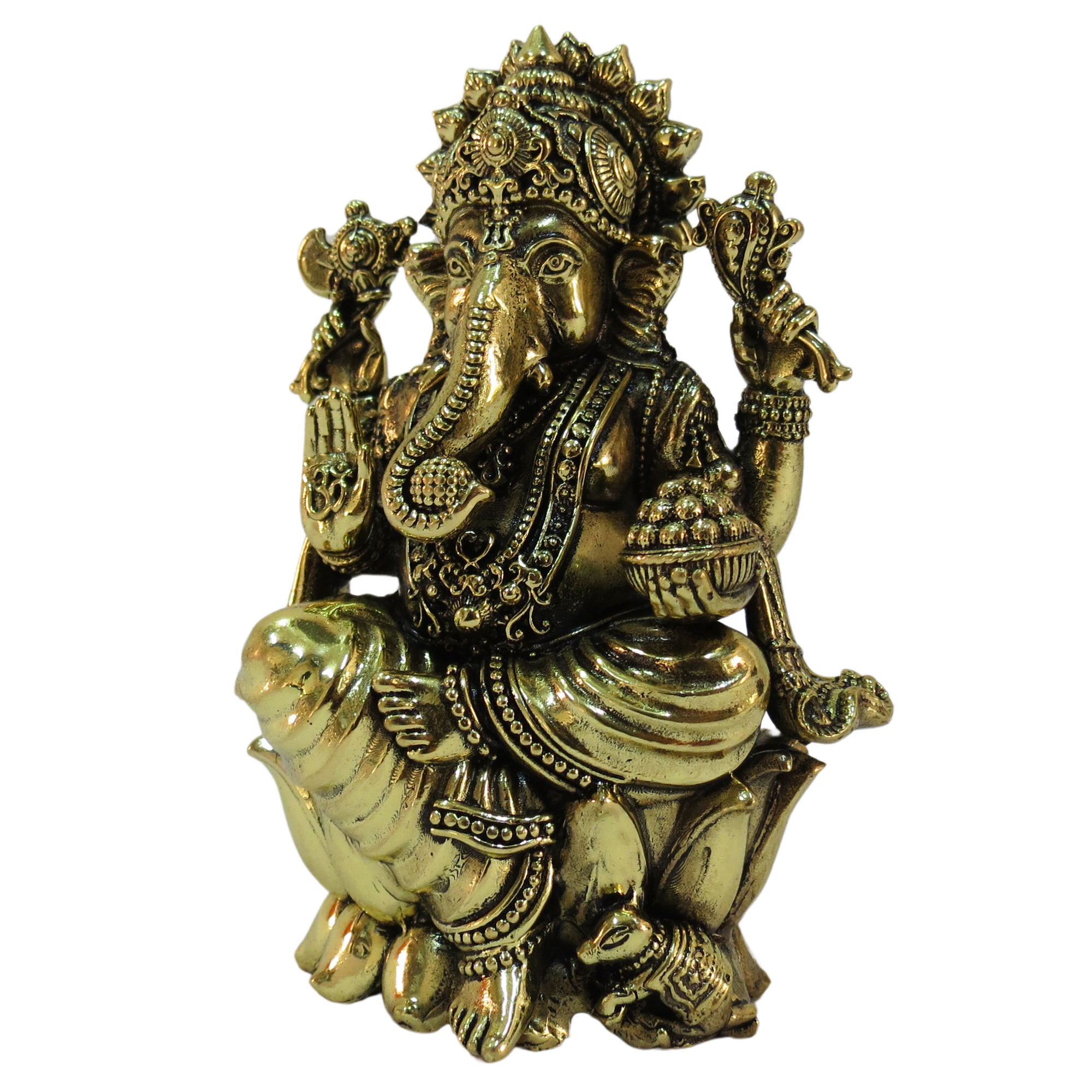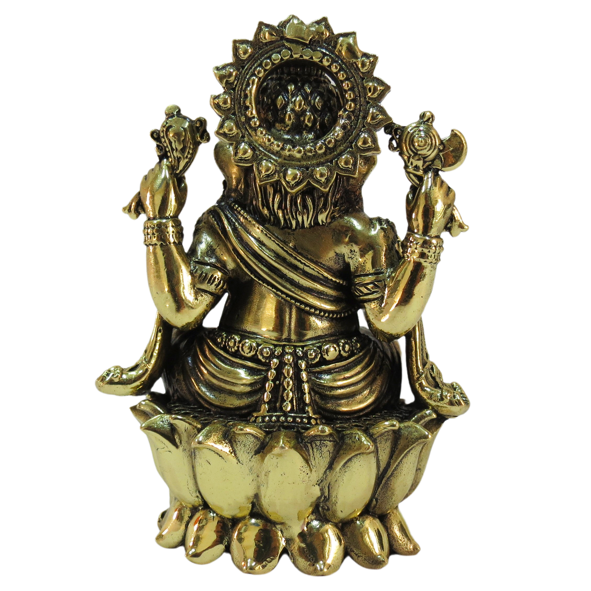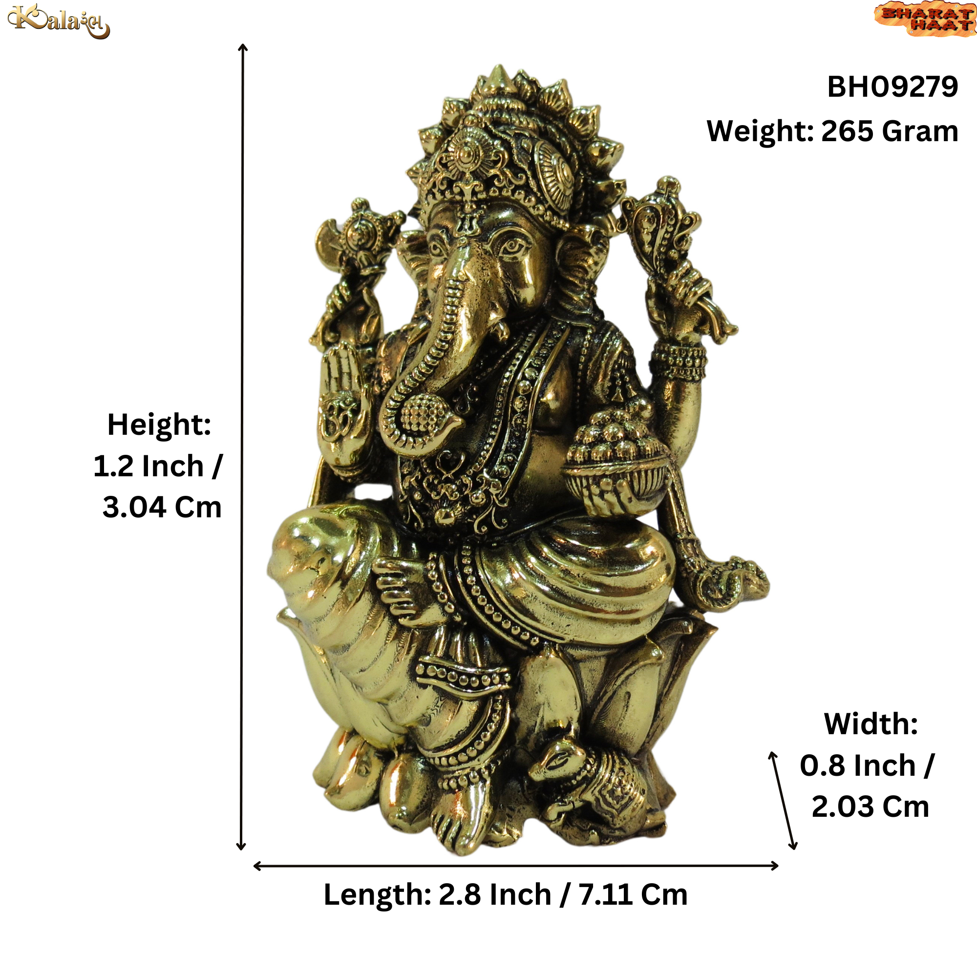 Measuring 2.8 x 1.4 x 4 Inch (7.11 x 3.55 x 10.16 Cm) and weighing 265 grams, this compact yet detailed idol is perfect for placement in pooja rooms, study tables, living areas, or office desks. The golden brass finish adds a rich, auspicious, and divine appeal to your space.