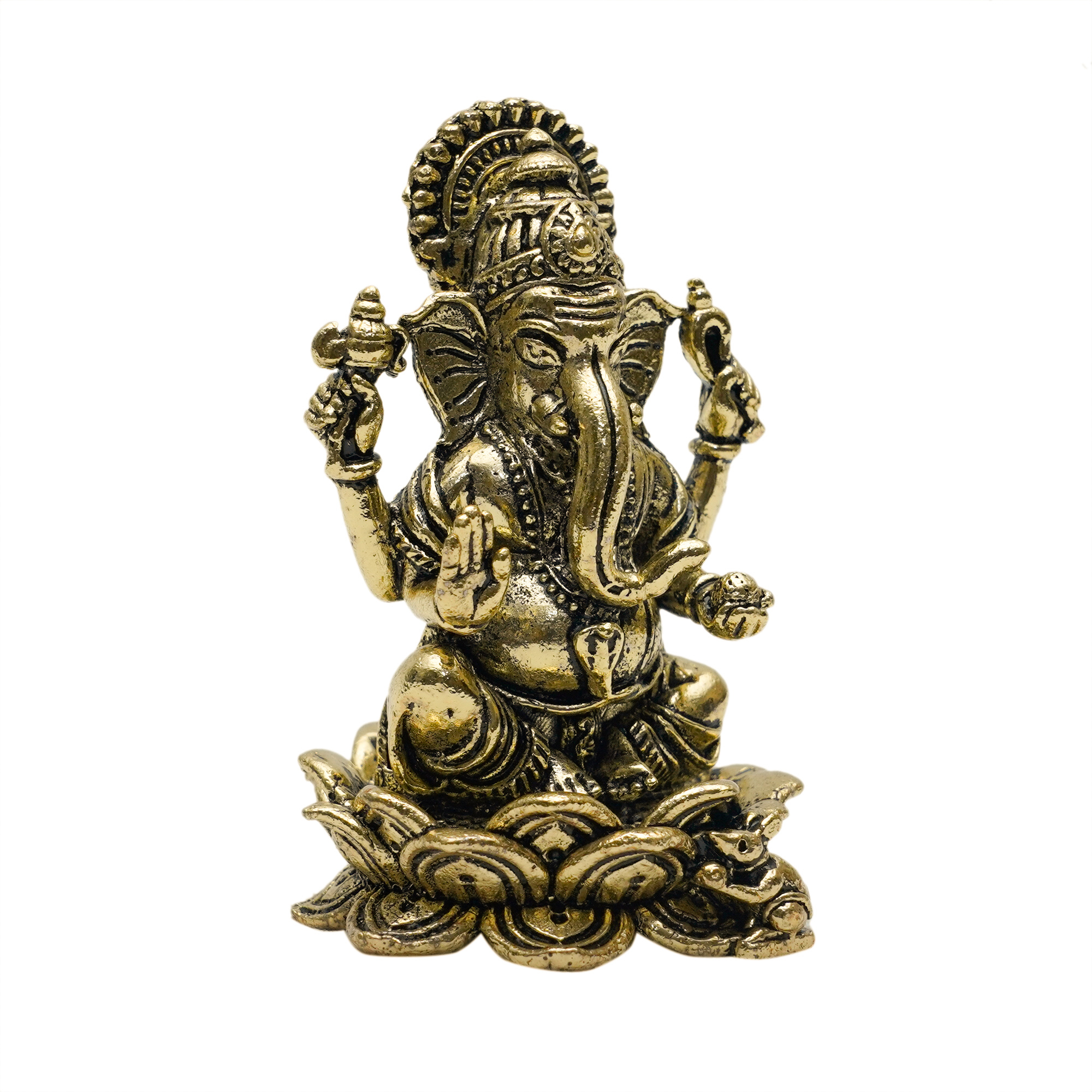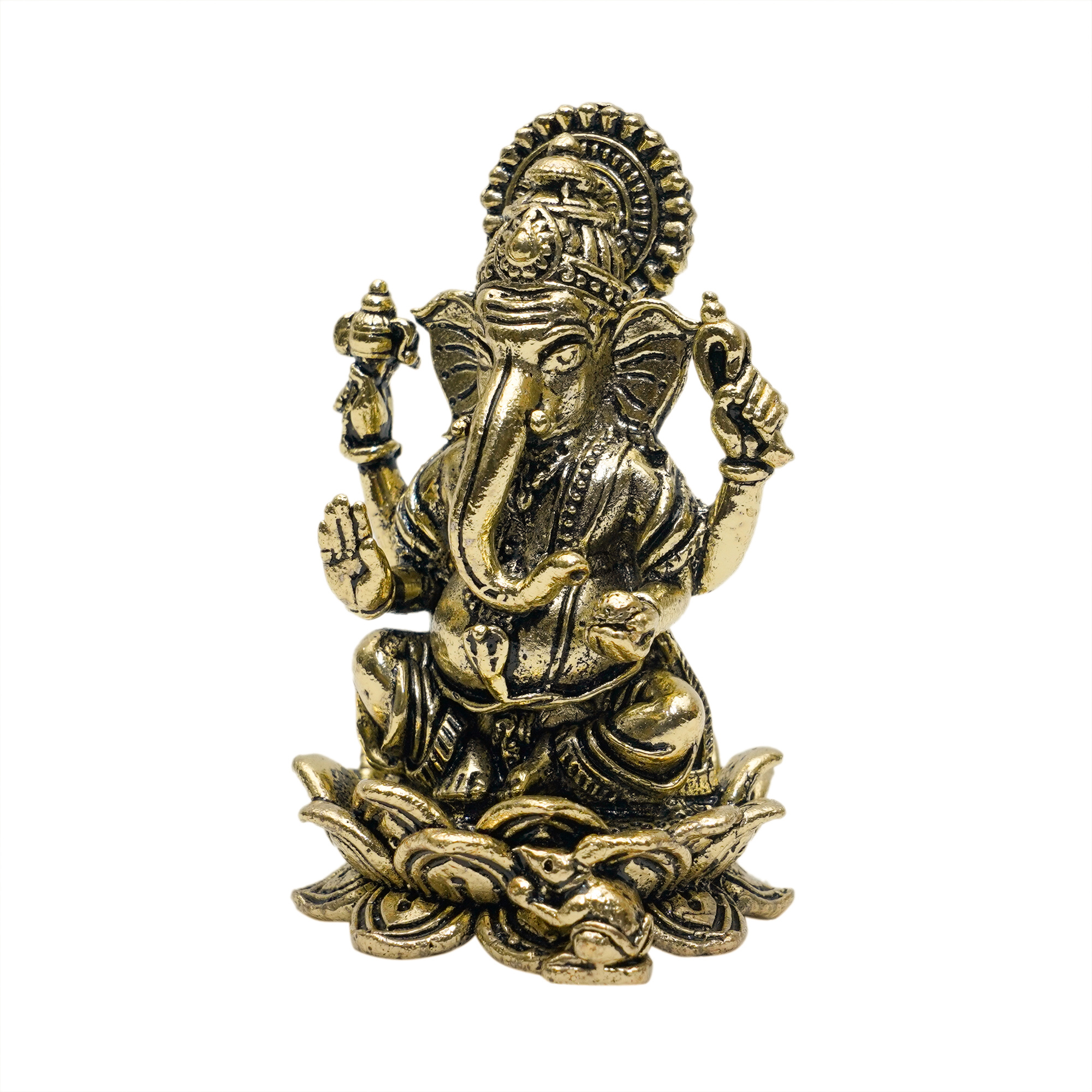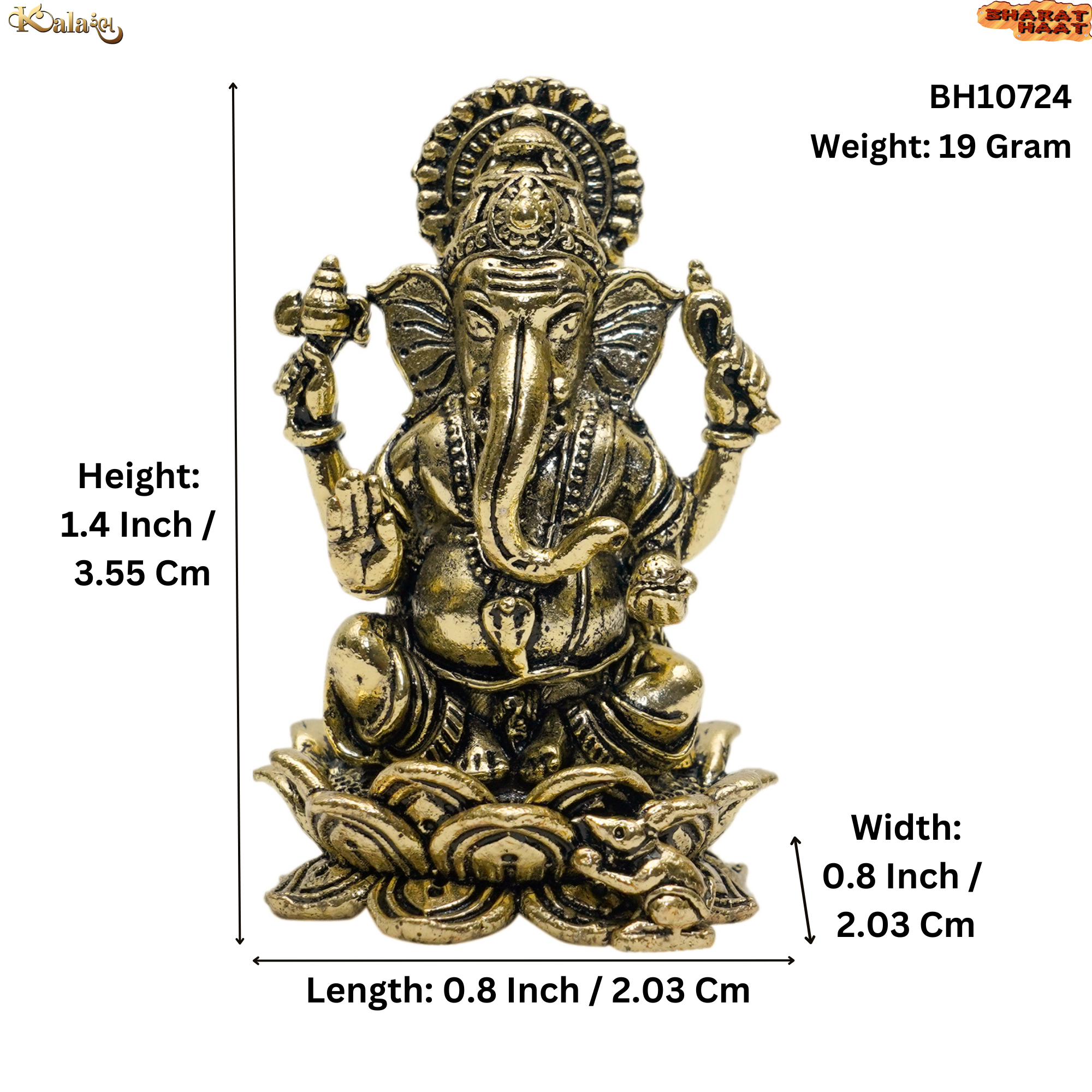 Miniature Brass Ganesha idol – 0.8 x 0.8 x 1.4 inches, 19g. A delicate handcrafted statue symbolizing wisdom, prosperity, and the removal of obstacles, ideal for small spaces or as a spiritual gift.