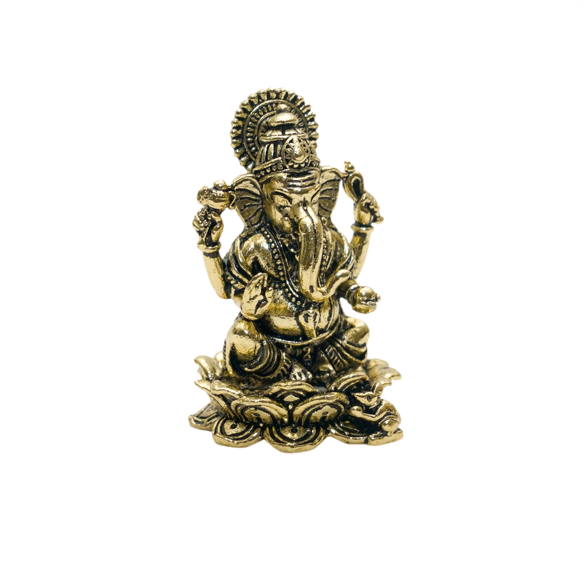 Handcrafted Brass Ganesha idol – 1.5 x 1.5 x 2.5 inches, 110g. A finely detailed statue of Lord Ganesha, symbolizing wisdom, prosperity, and the removal of obstacles. Ideal for pooja rooms, shelves, or gifting.
