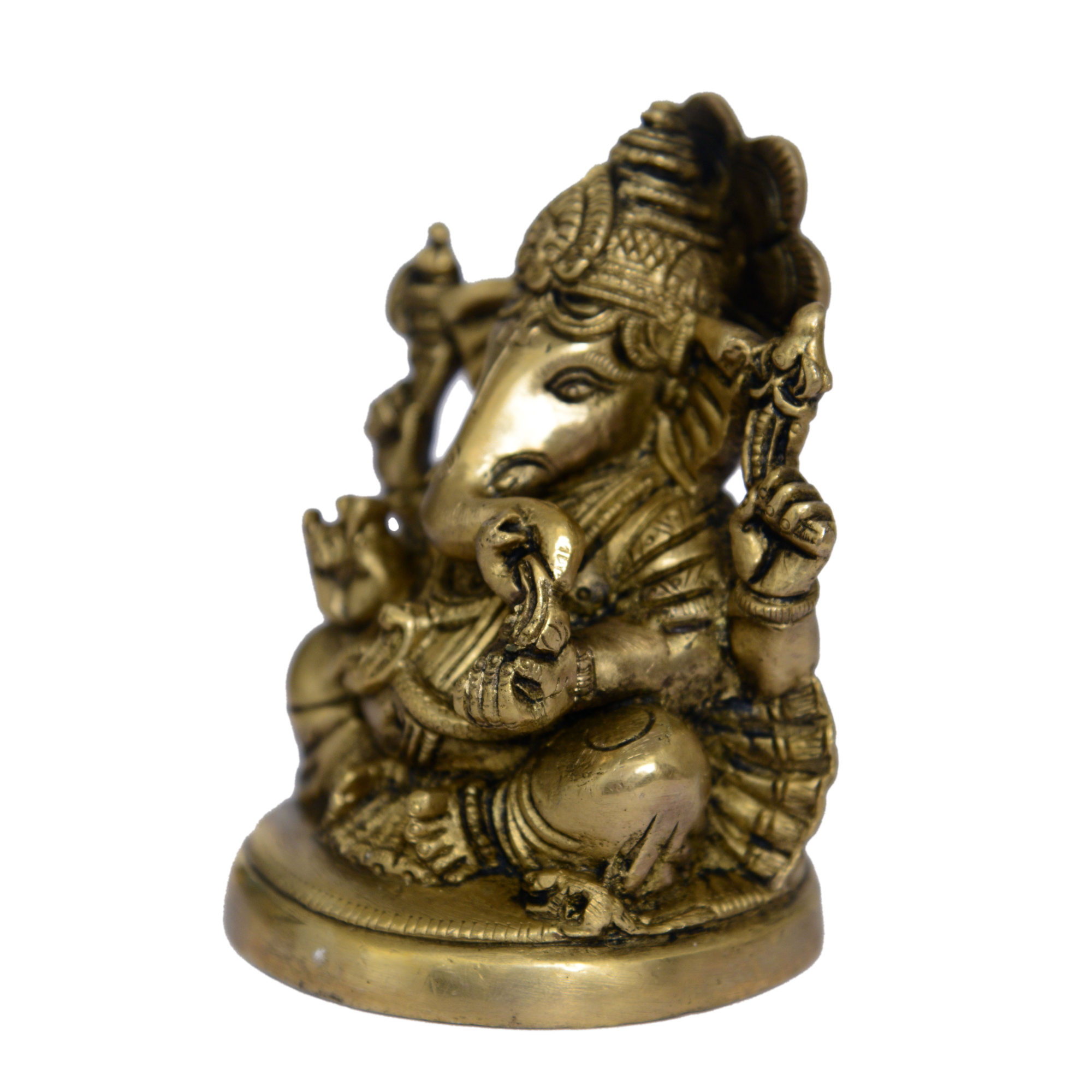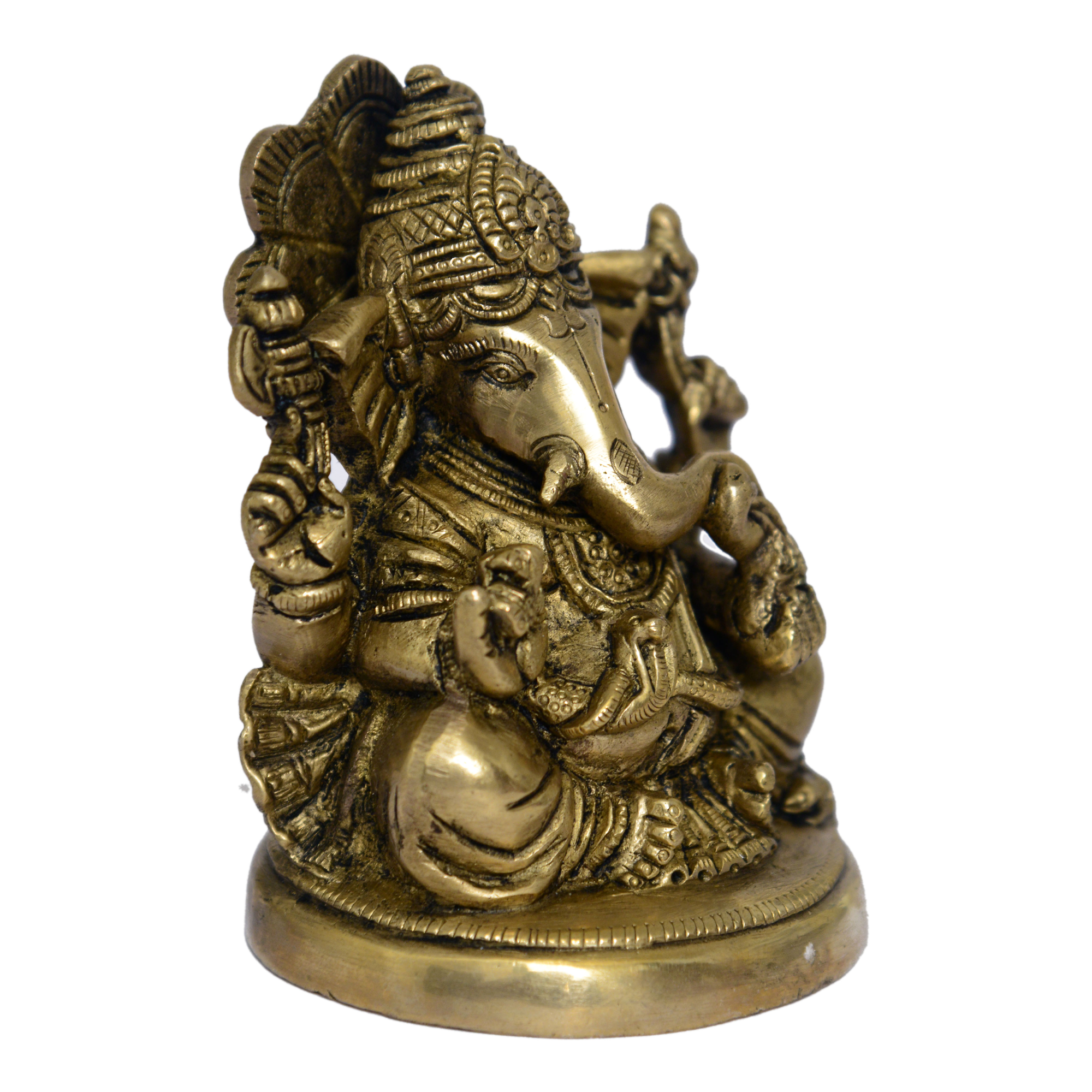 - Classic Ganesha Design - Traditional brass Ganesh idol in classic sitting posture, symbolizing wisdom