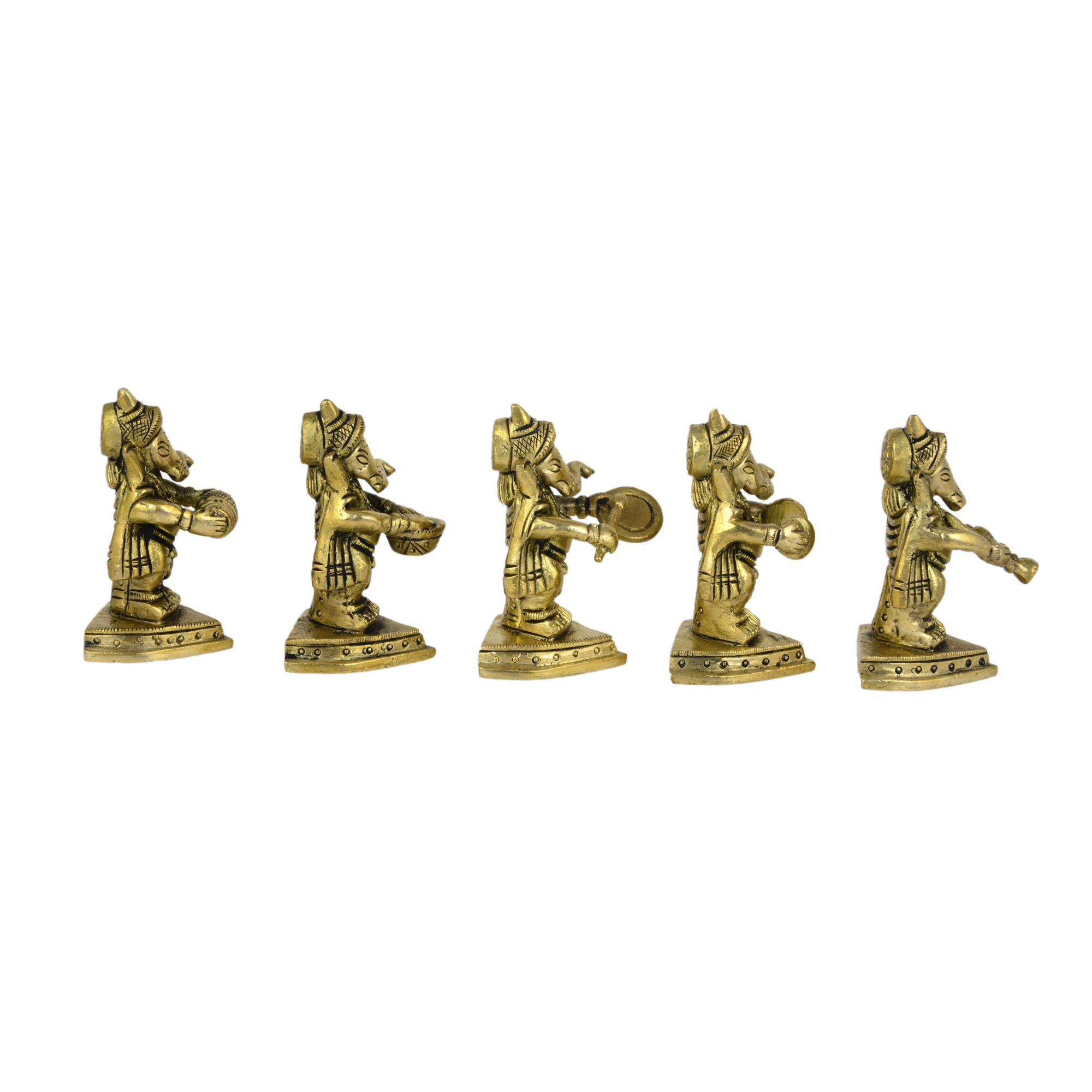 Design: Exquisite 5-piece set featuring Lord Ganesha in different musical poses, each holding a unique traditional instrument.