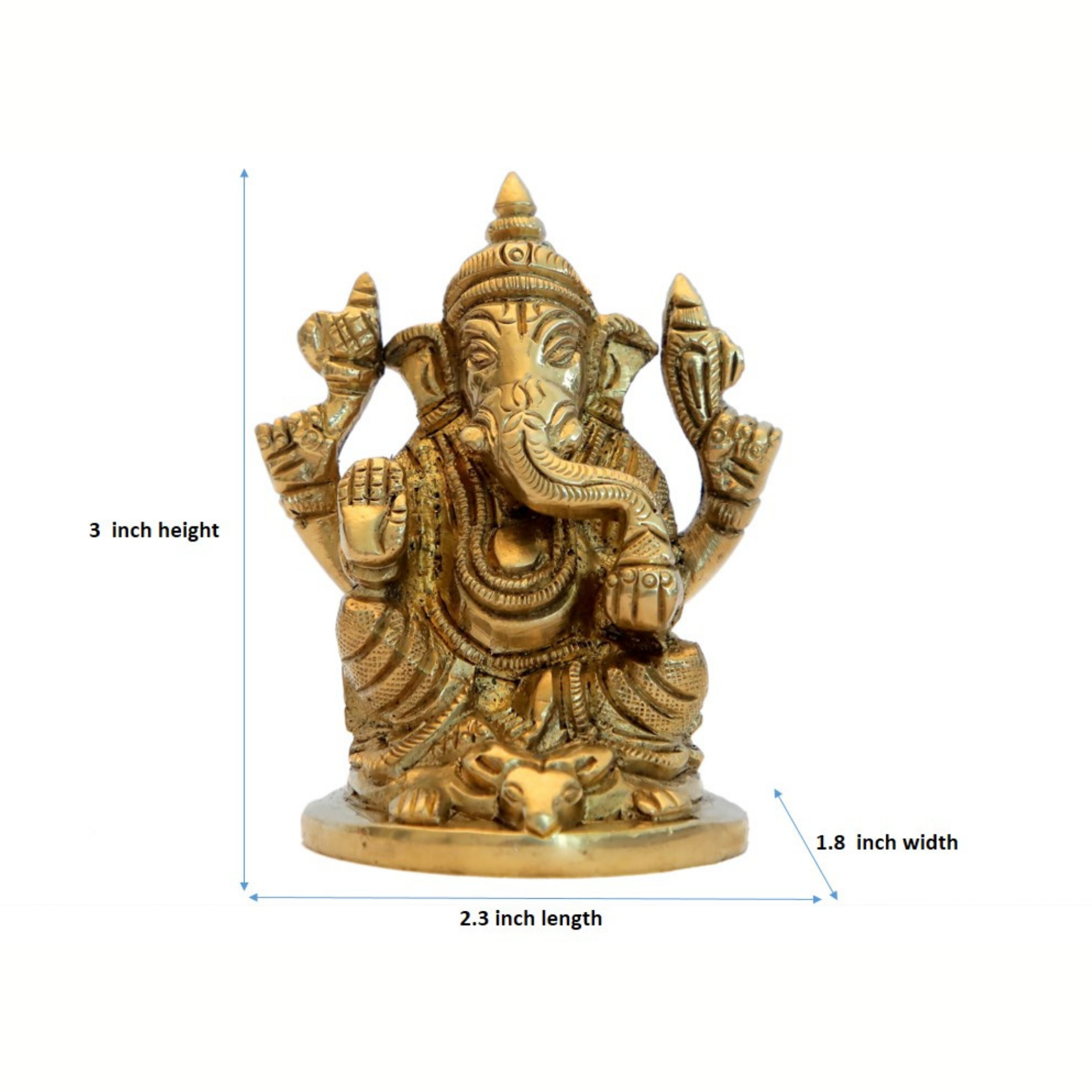 Brass Ganesha on Rat Idol 3 Inch KBH07136