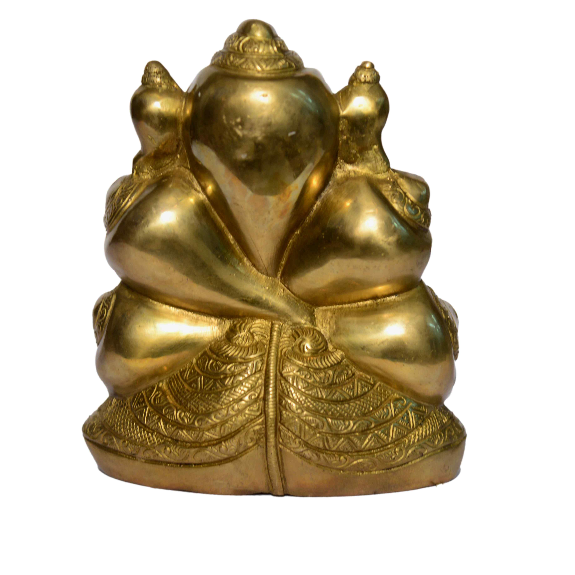 Made from pure solid brass, this Ganesha idol is an exquisite combination of spirituality and art. The intricate detailing on Lord Ganesha’s posture, ornaments, and the seven shankh creates a breathtaking visual appeal. With its radiant antique brass finish, this idol embodies the essence of Indian heritage and craftsmanship.