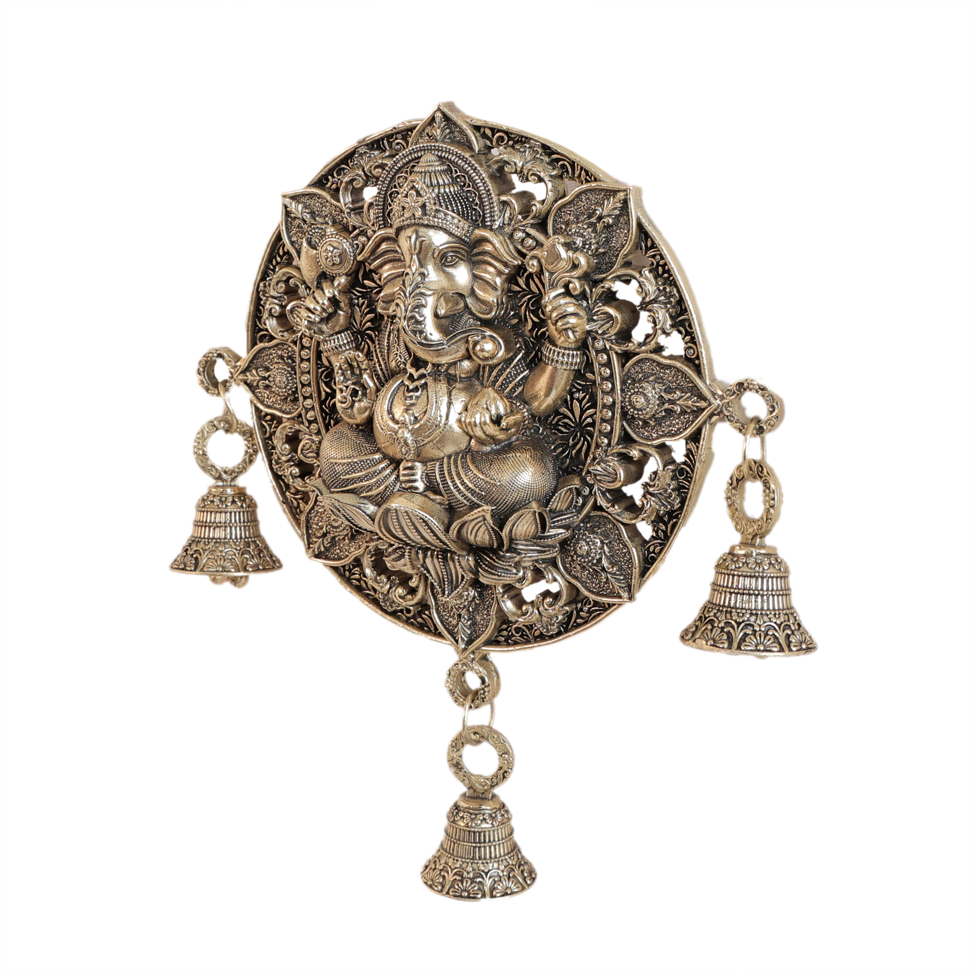 Brass Ganesha Wall Hanging Bell | Handcrafted Decorative Brass Bell for Home & Temple