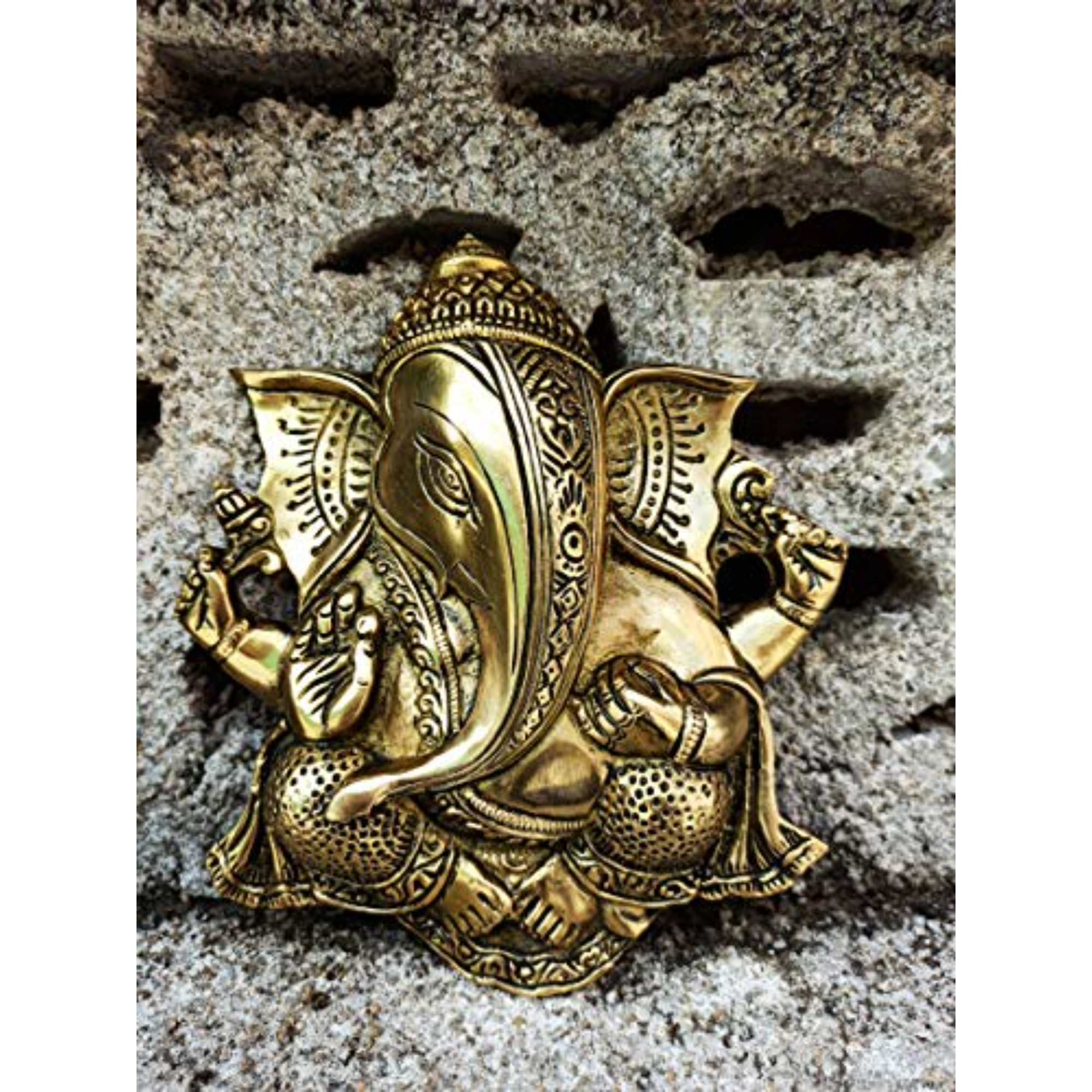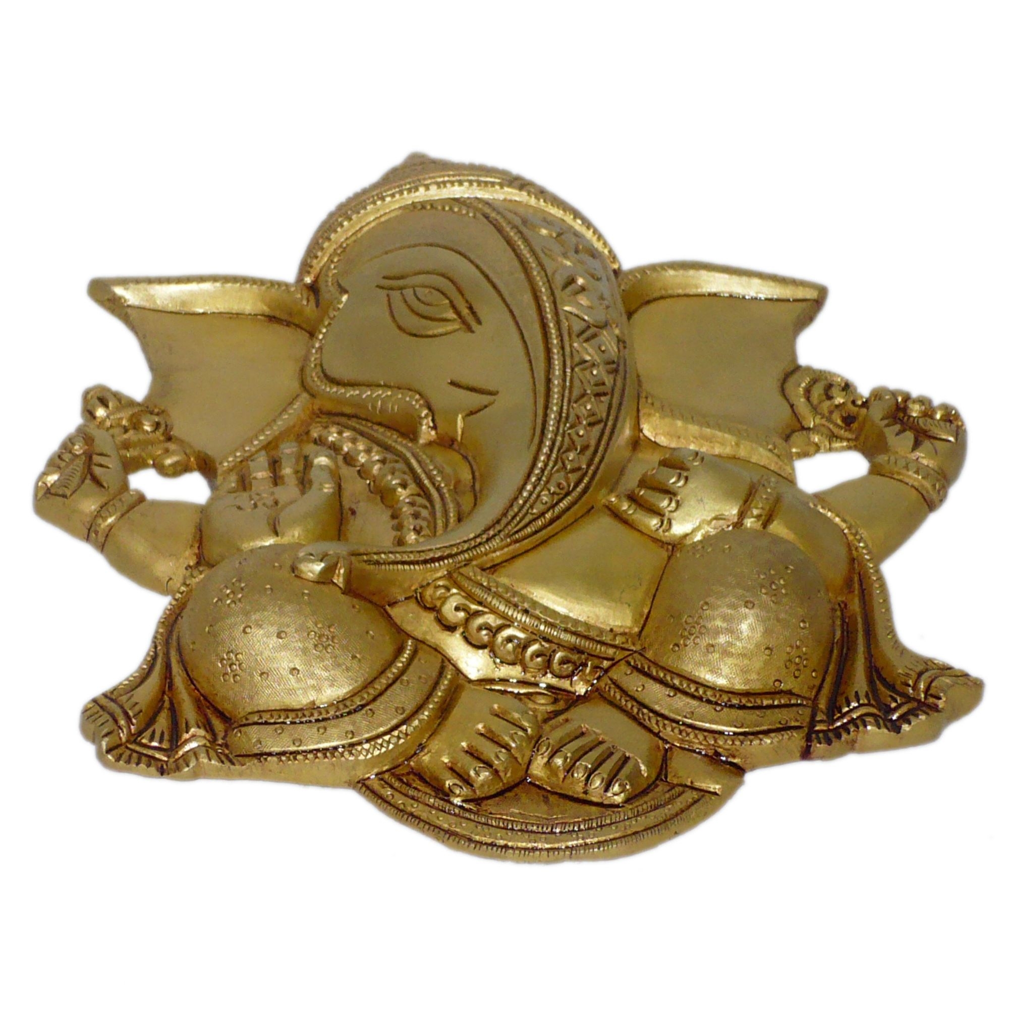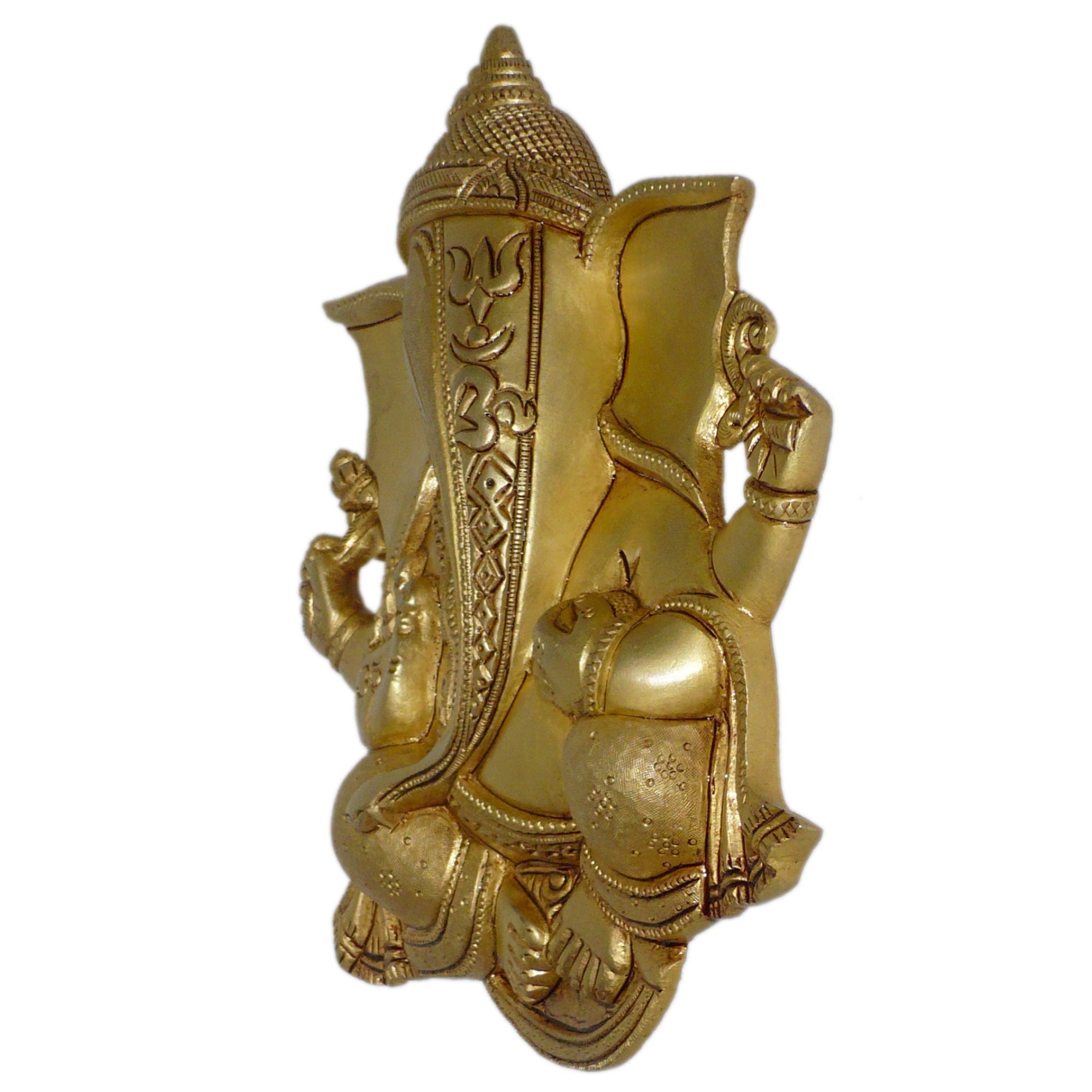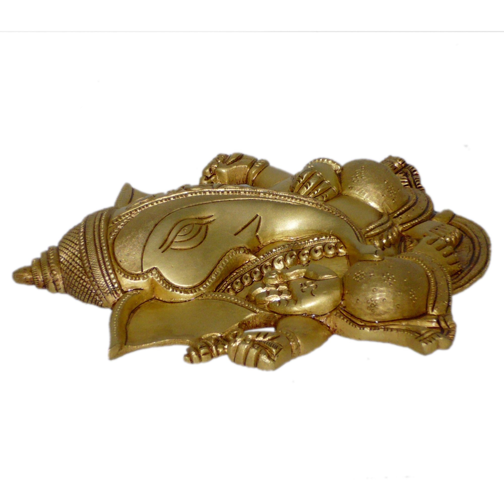 Elegant brass Ganesha wall hanging designed with intricate detailing. Ideal for adding a traditional and spiritual touch to any wall space.
