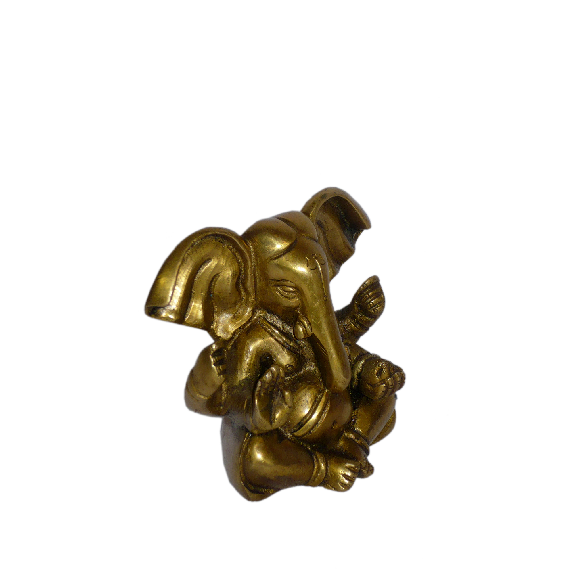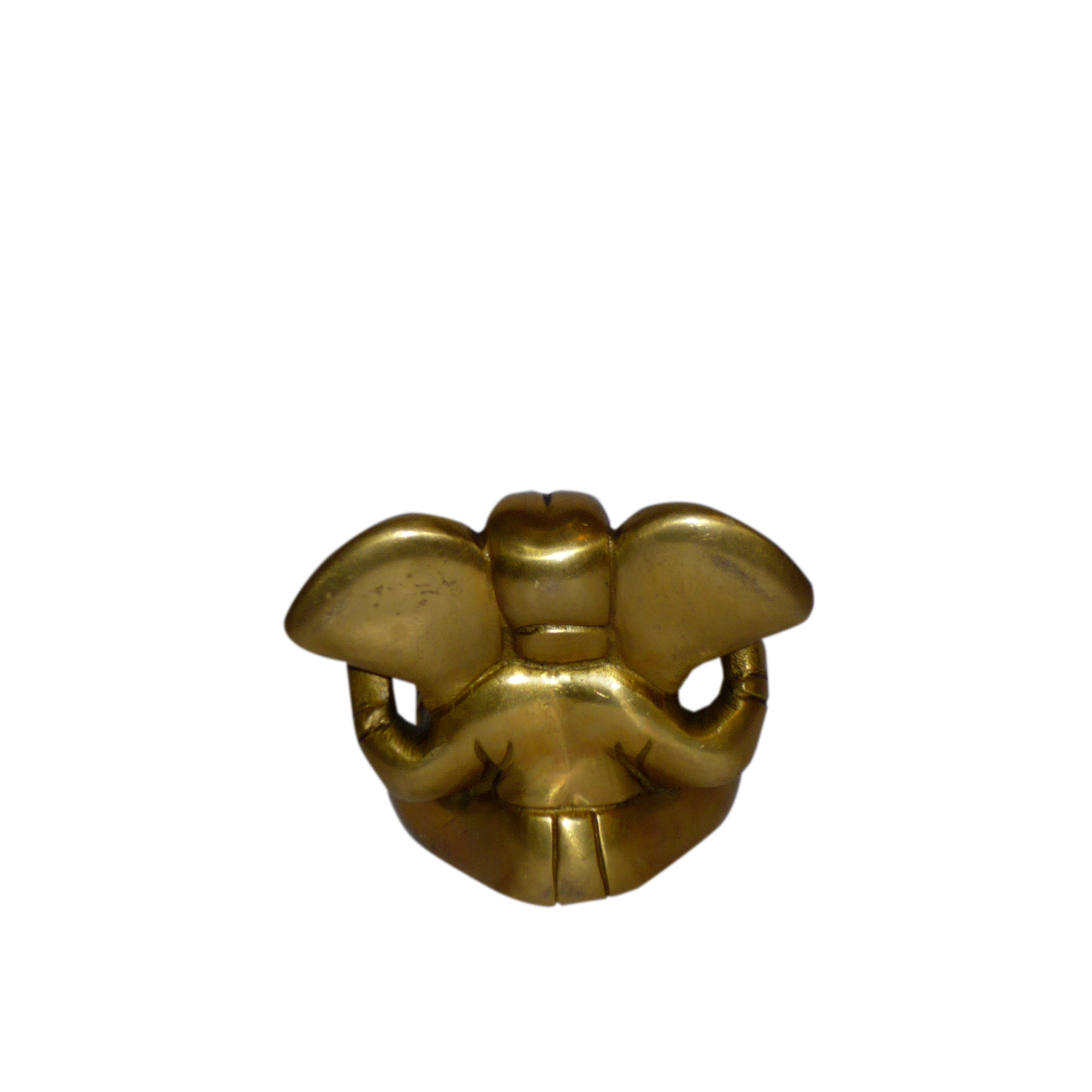Design: Beautifully sculpted small brass Ganesha idol with distinct large ears, symbolizing wisdom, attentiveness, and divine blessings.