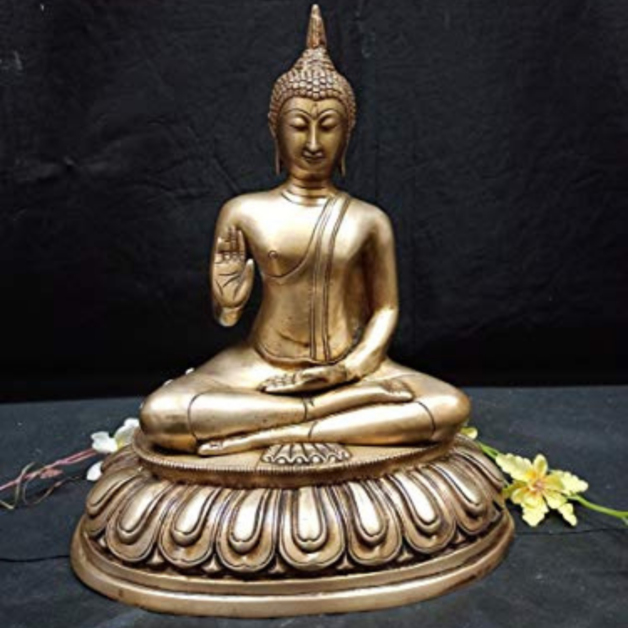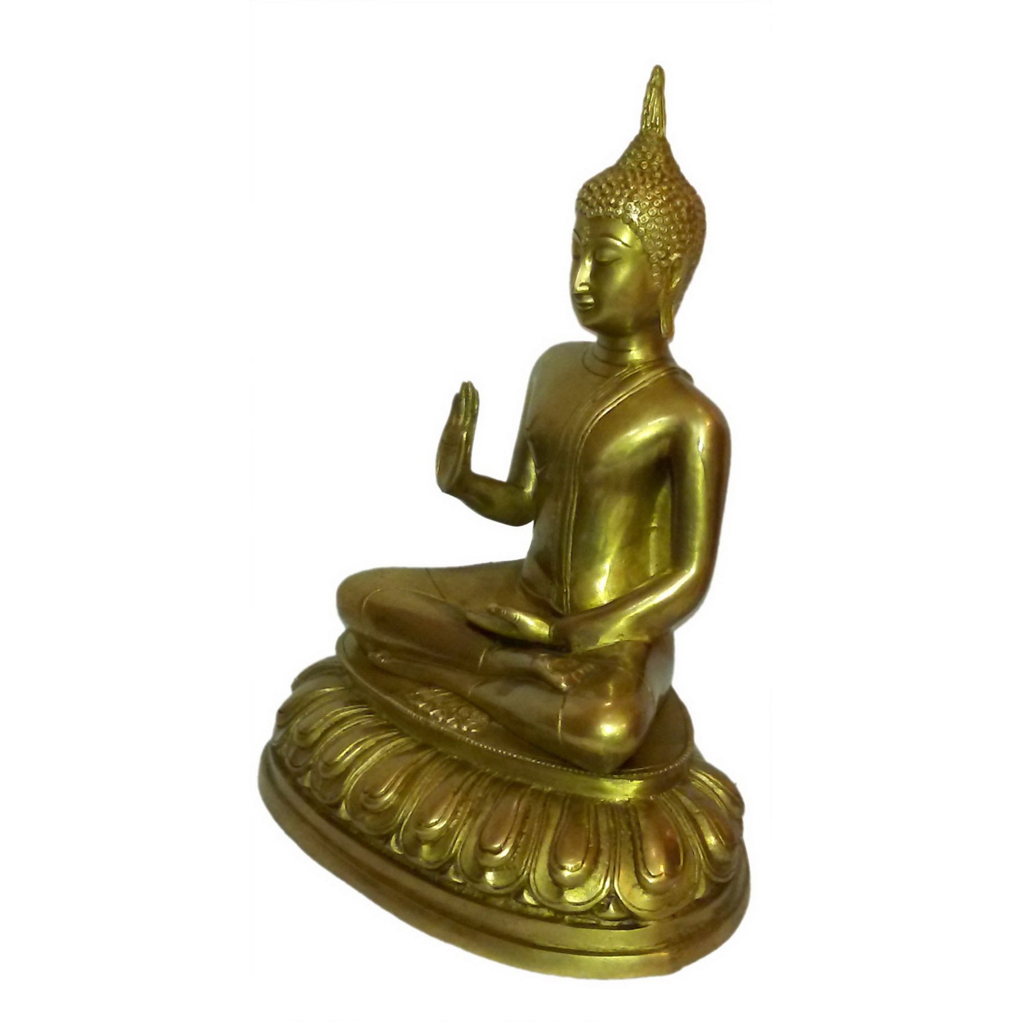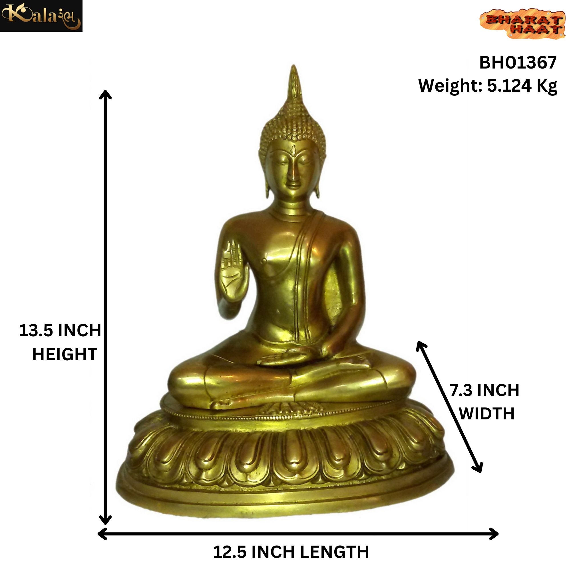Handcrafted Brass Gautam Buddha Medium Sitting – 13.5-inch decorative brass Buddha idol, ideal for meditation, pooja, or home décor.