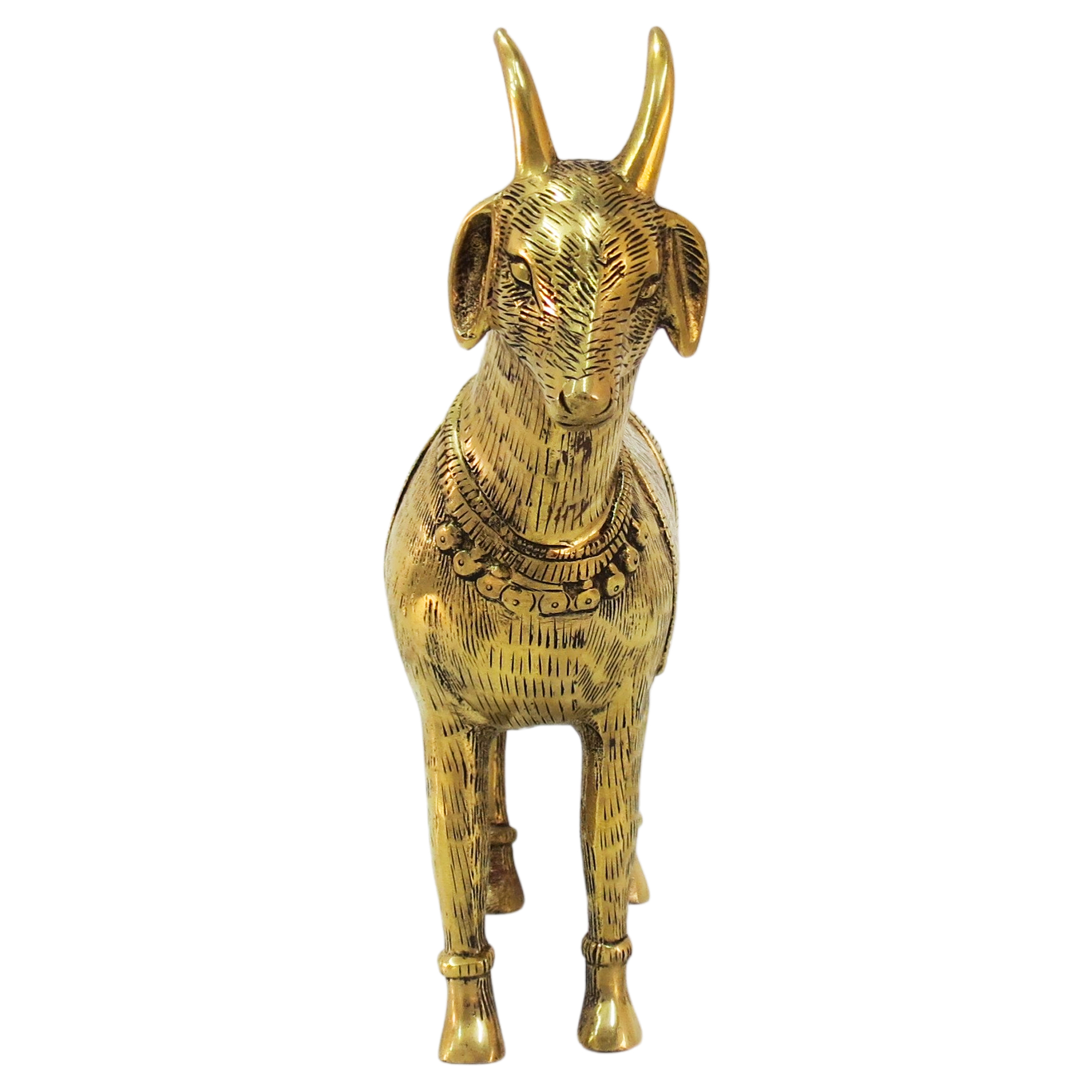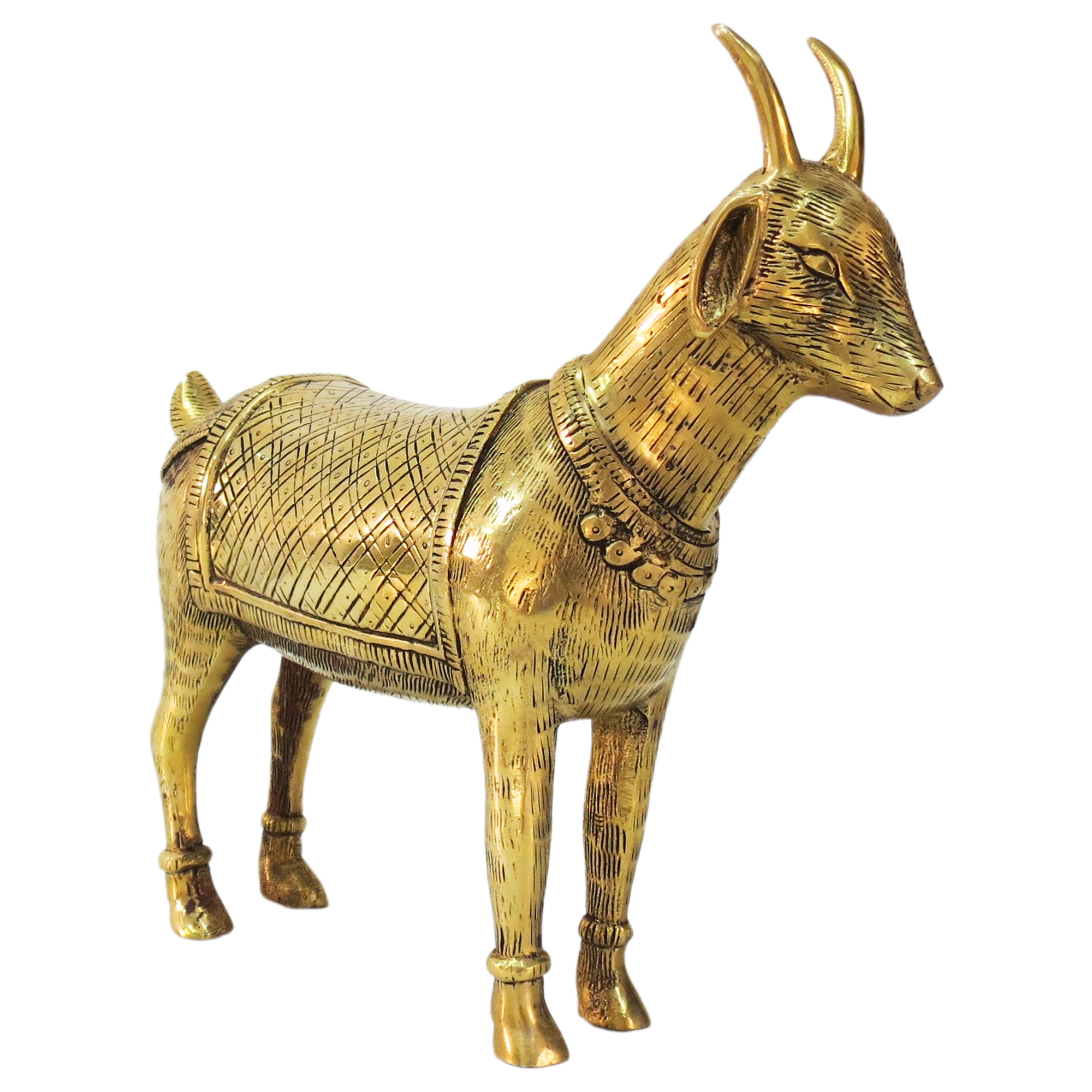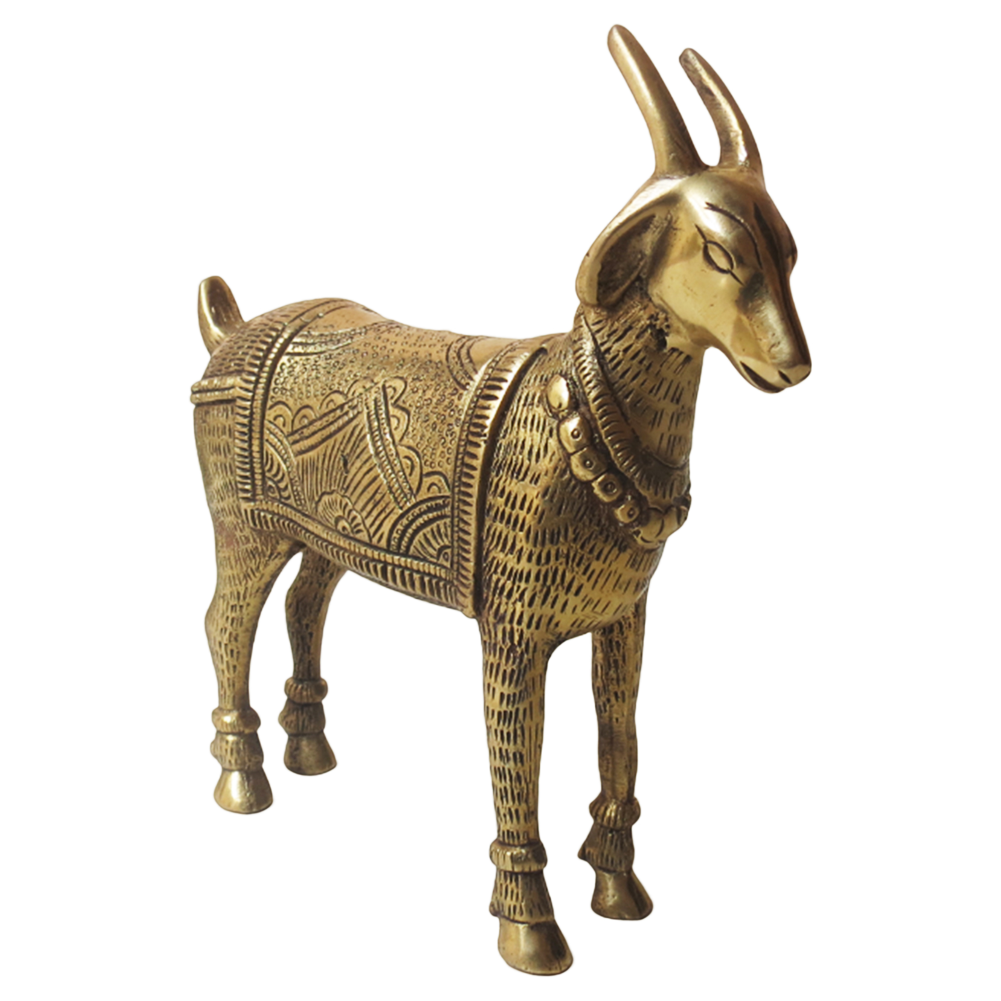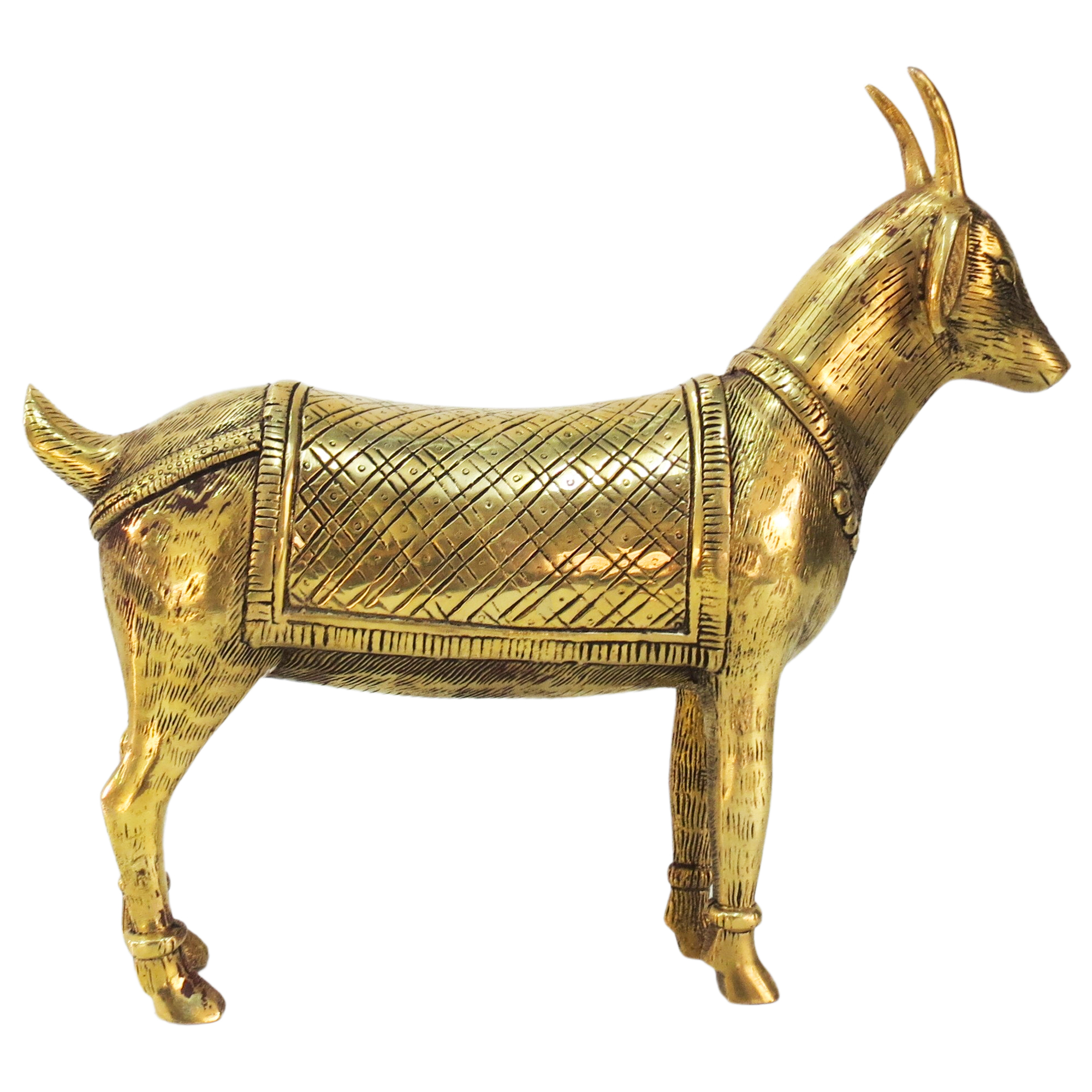 The statue captures the graceful stance of a goat with intricate detailing that reflects the remarkable skill of Indian artisans. Its hand-polished golden finish brings a warm, royal charm to any interior setting. According to Vastu Shastra, keeping a brass goat in your home or workplace invites success, positivity, and growth, especially in professional or financial aspects of life. Whether used as a decorative showpiece, a symbolic Vastu enhancer, or a thoughtful gift, this brass goat idol is a versatile addition that radiates charm and energy.