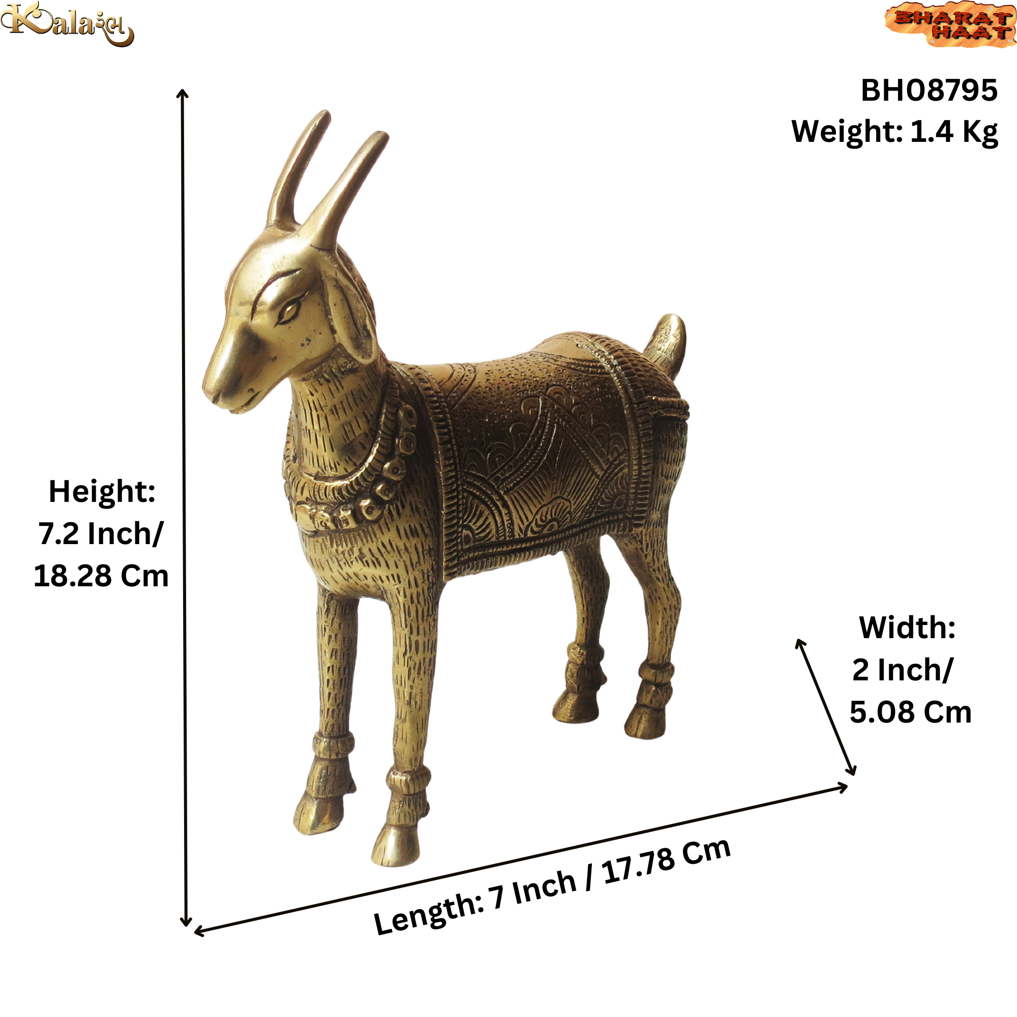 Add a touch of elegance and tradition to your space with this beautifully handcrafted Brass Goat Statue. Expertly cast from premium quality brass, this figurine symbolises strength, abundance, and prosperity, making it an excellent addition to your home décor, temple, or office. Measuring 7 x 2 x 7.2 Inch (17.78 x 5.08 x 18.28 Cm) and weighing 1.4 Kg, it is compact yet substantial — a perfect balance of art and craftsmanship.