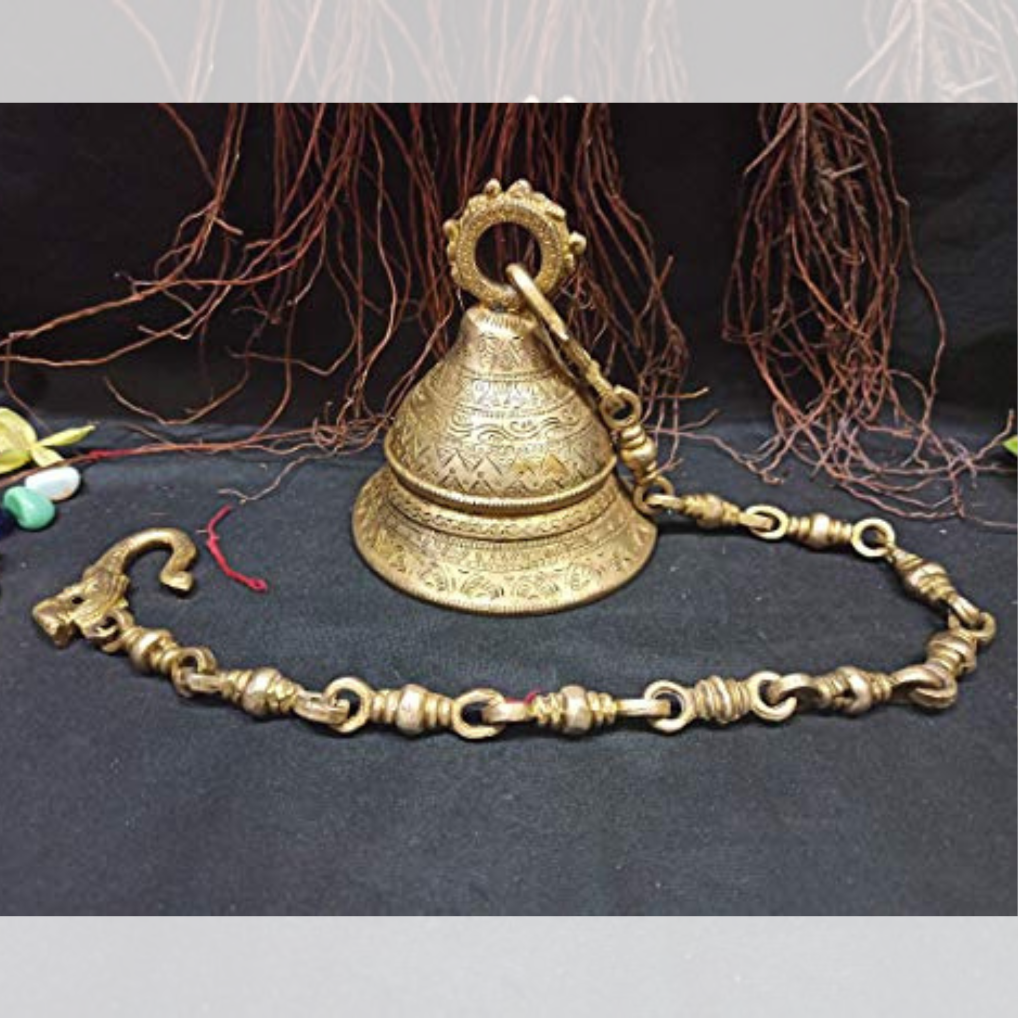 Design: Classic hanging bell with traditional detailing, perfect for home or temple décor