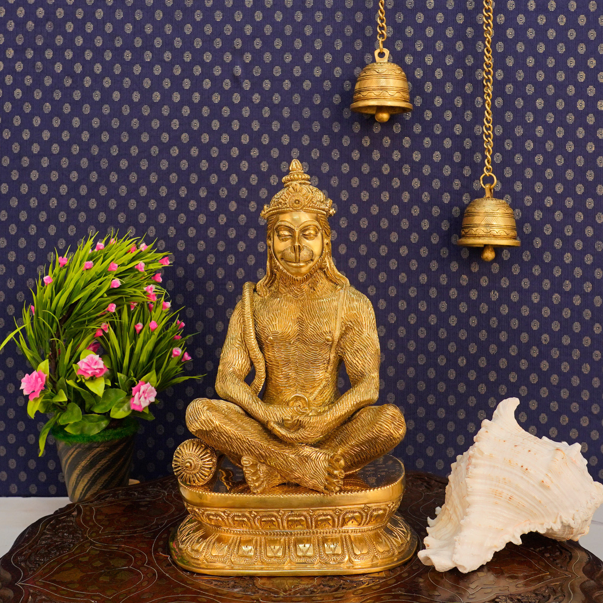 The Brass Hanuman Idol is believed to bring protection, positive energy, and strength, creating a spiritually harmonious environment. It also serves as a thoughtful gift for Hanuman Jayanti, Diwali, housewarming, or spiritual enthusiasts, offering both aesthetic and devotional value.