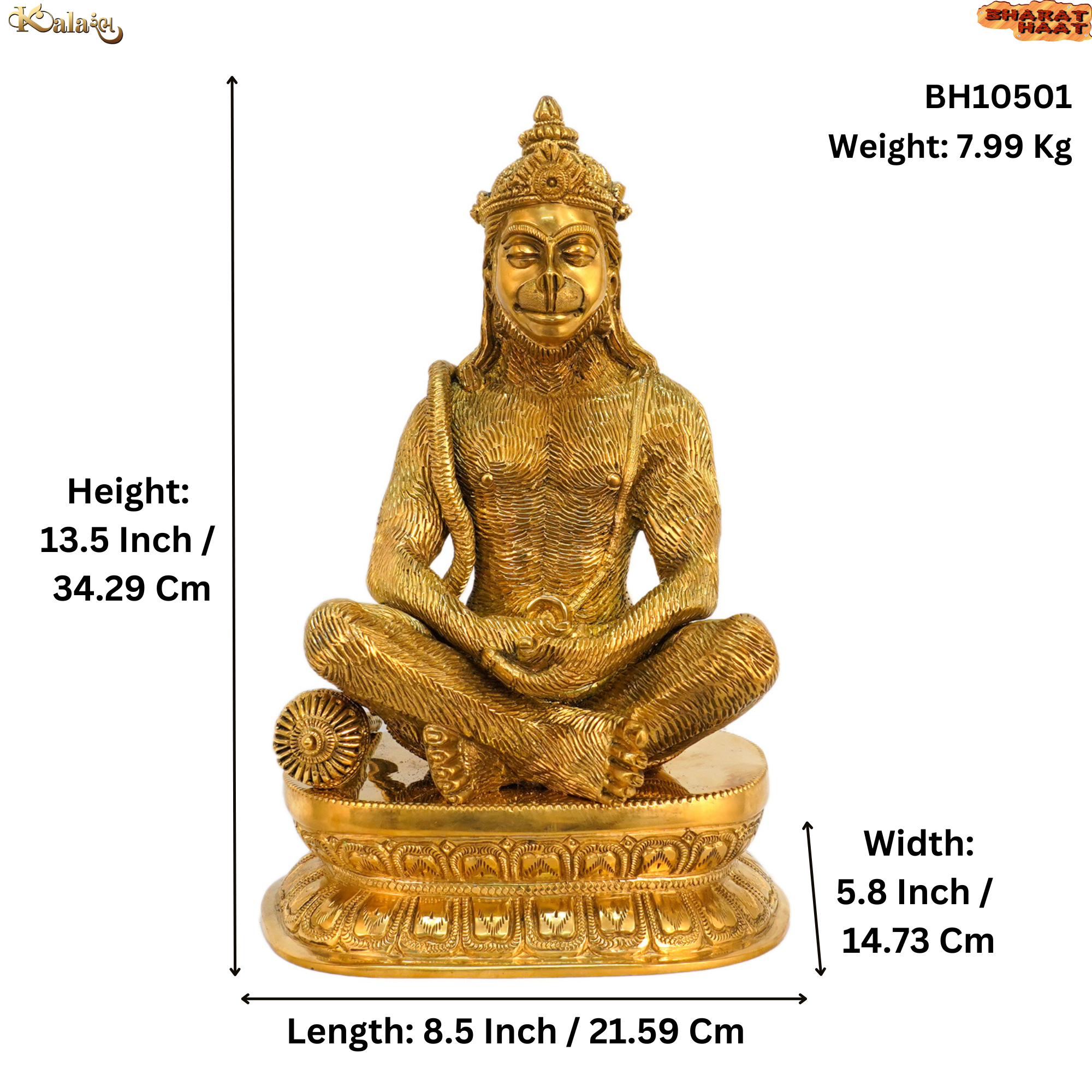 Made from high-quality solid brass, this idol features intricate craftsmanship and a traditional antique finish, reflecting elegance and devotion. Measuring 8.5 x 5.8 x 13.5 inches and weighing 7.99 Kg, it is perfect for placement in home temples, pooja rooms, offices, or as a showpiece décor item.