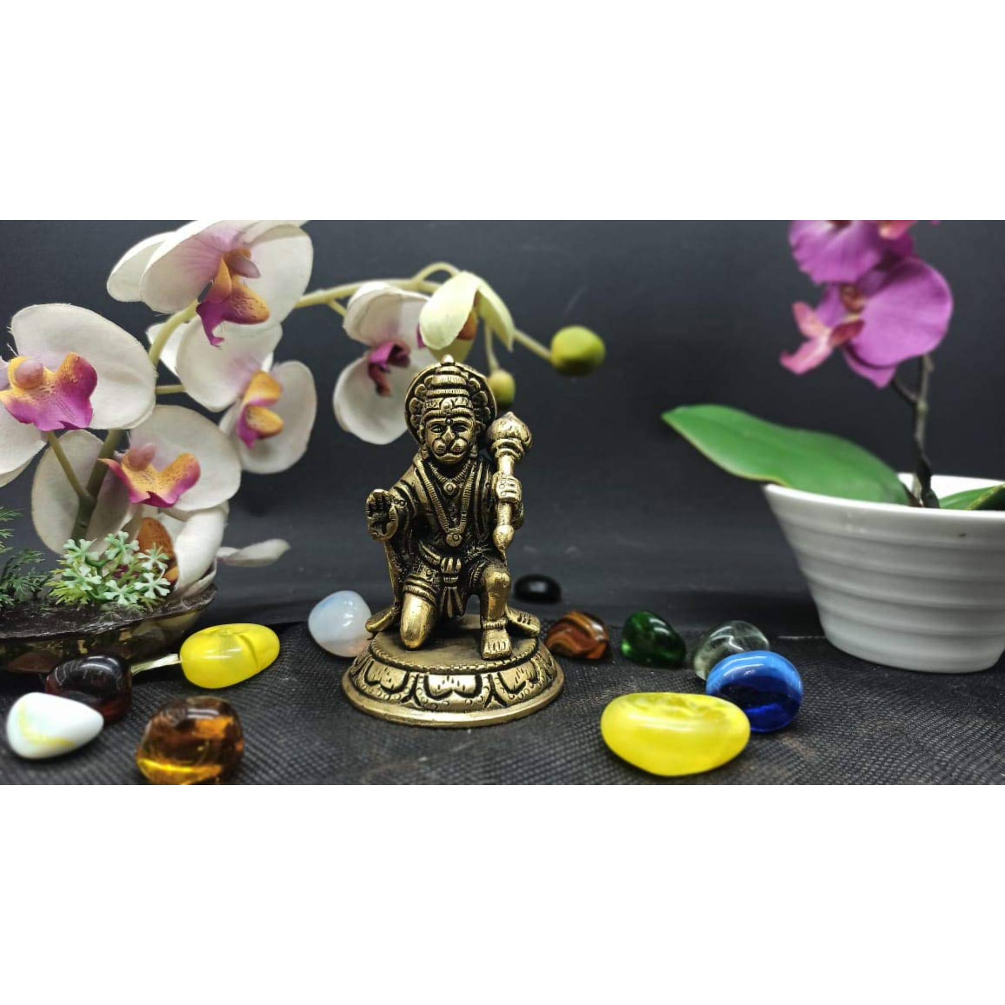 Handcrafted Brass Hanuman Sitting mini idol, perfect for pooja rooms, home decor, or temple display, symbolizing strength, protection, and devotion.