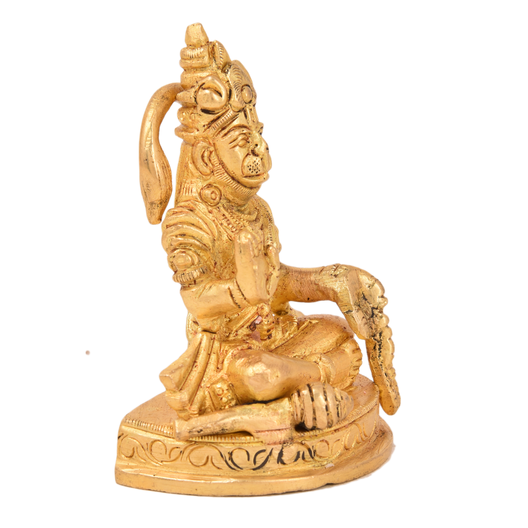 Brass Hanuman Sitting Idol (2.2 x 1.5 x 3.2 Inch, 250 Gram) – Beautifully handcrafted brass statue depicting Lord Hanuman in a peaceful sitting posture, radiating strength and devotion. Perfect for puja rooms and gifting.