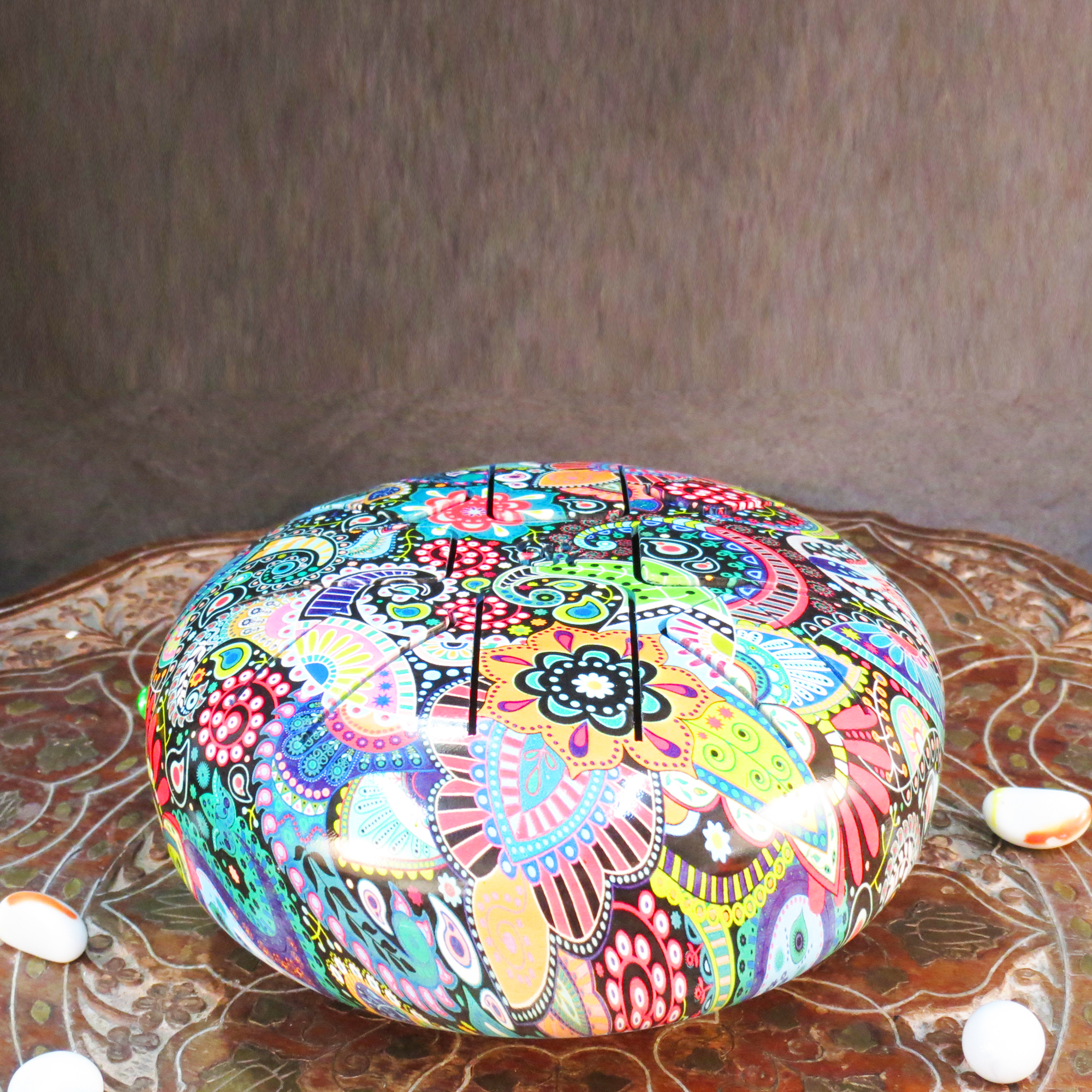 Each Brass Happy Drum Printed is meticulously handcrafted by skilled Indian artisans, reflecting intricate patterns and detailing that showcase India’s rich tradition of brass artistry. Its polished brass finish enhances the visual appeal while maintaining durability for years to come.