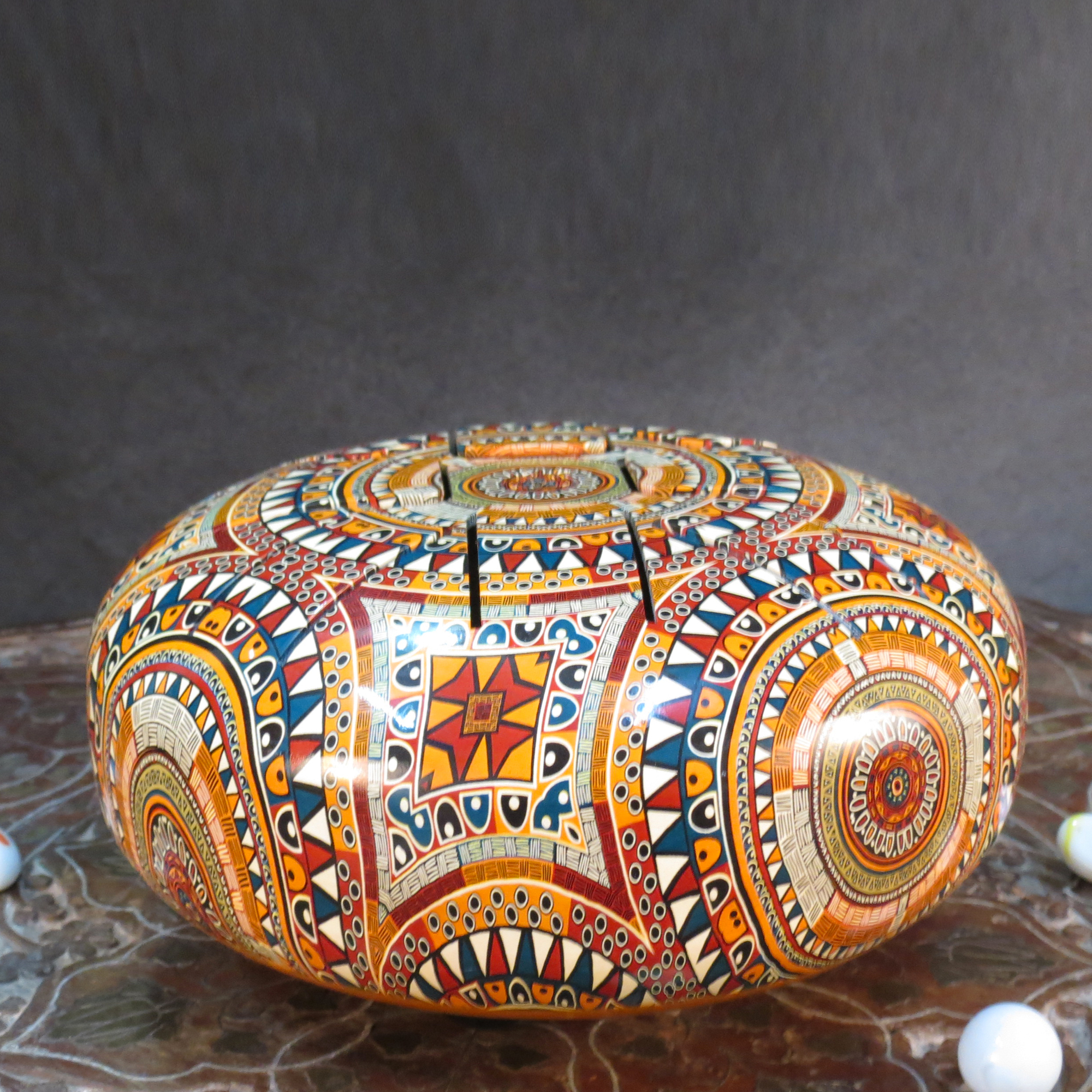 Happy Drum Printed Design: Features colorful or engraved happy drum motifs, symbolizing joy and positivity.