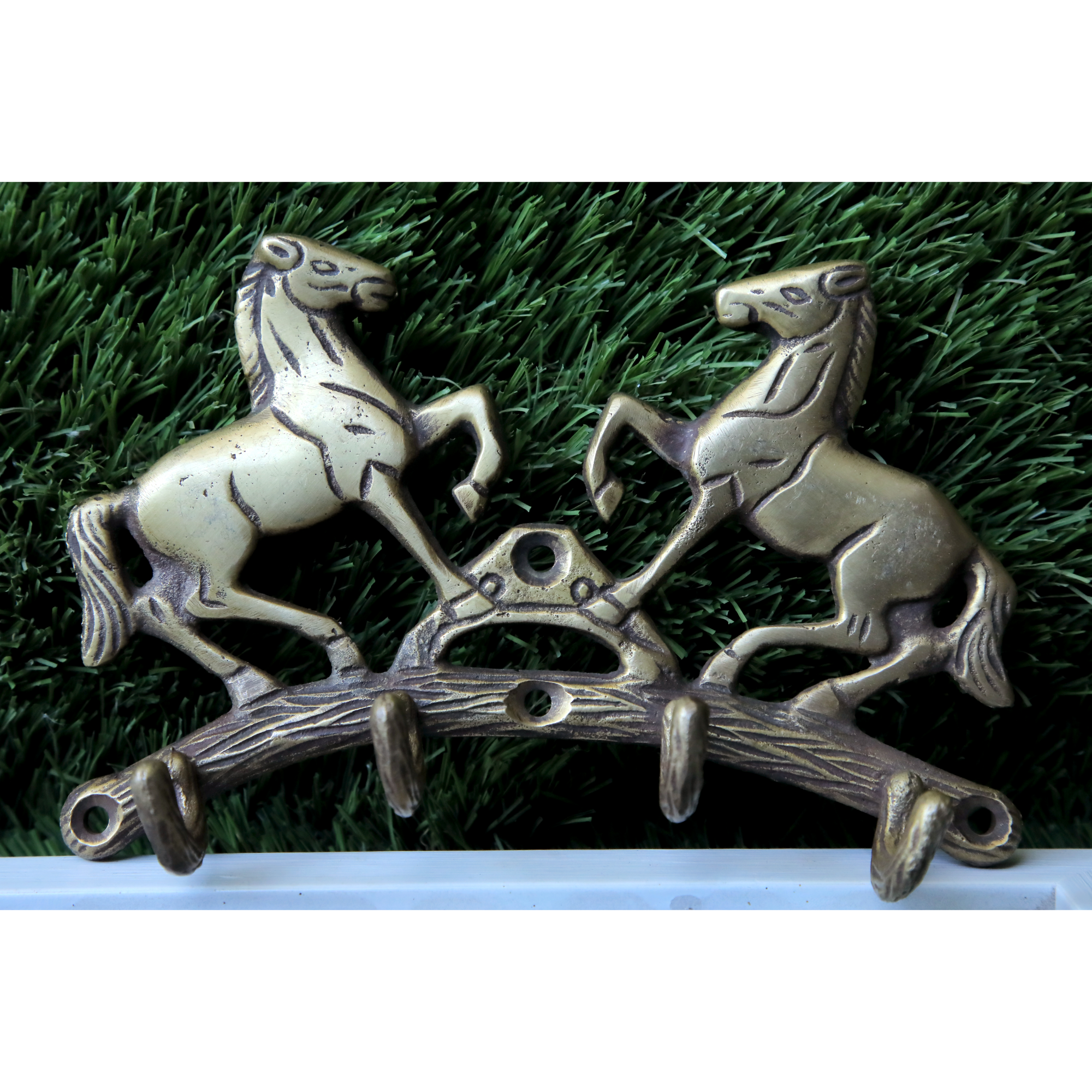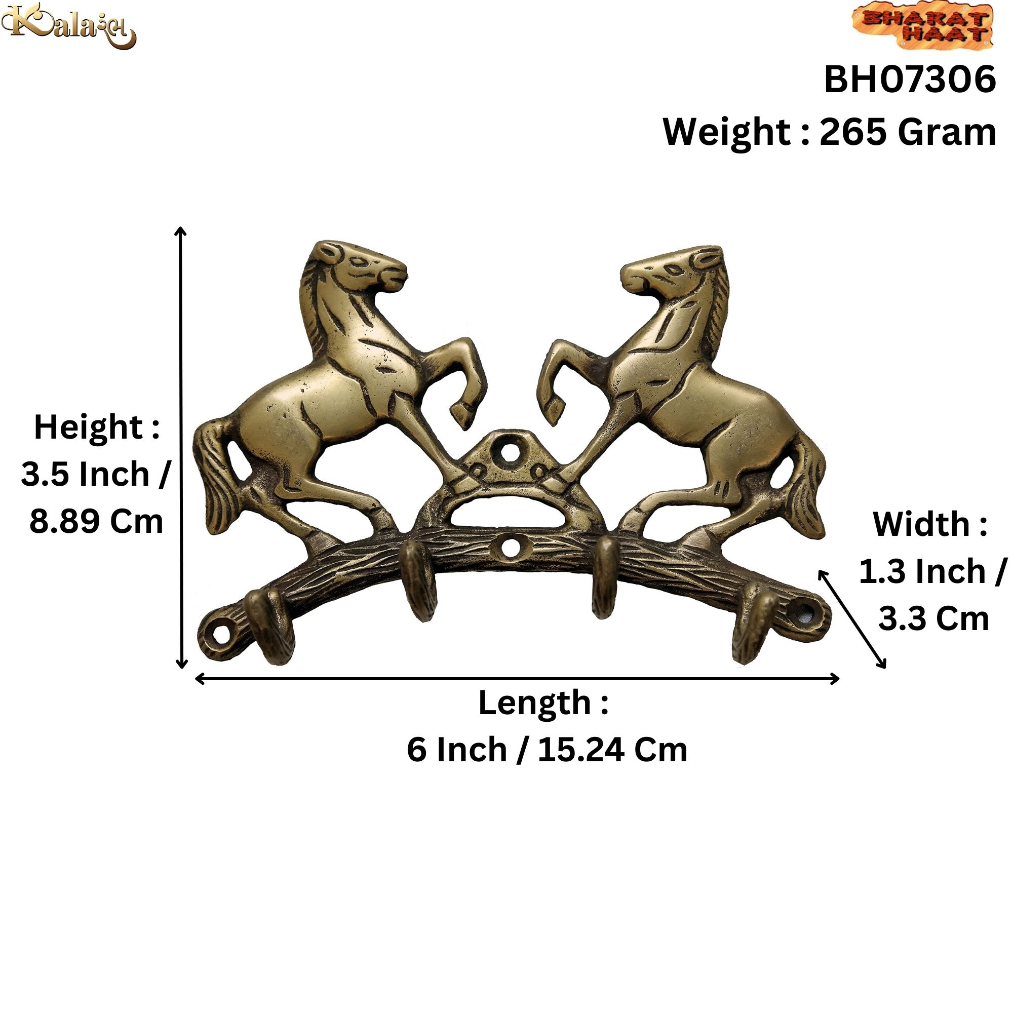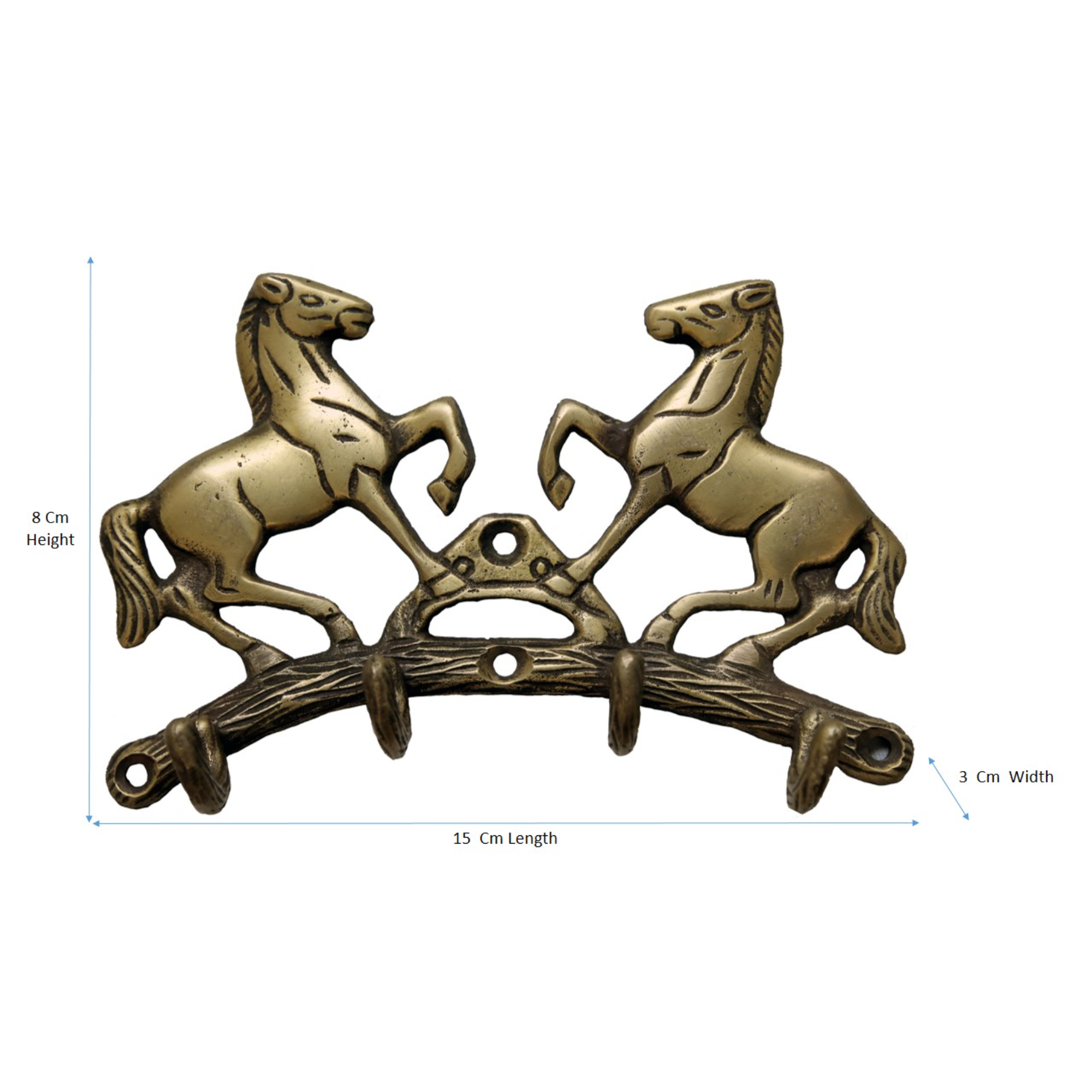 Brass Horse Design Keyholder made with quality brass, sized 6 x 1.3 x 3.5 Inch and weighing 265 grams. A decorative and sturdy wall key hanger for organized storage.