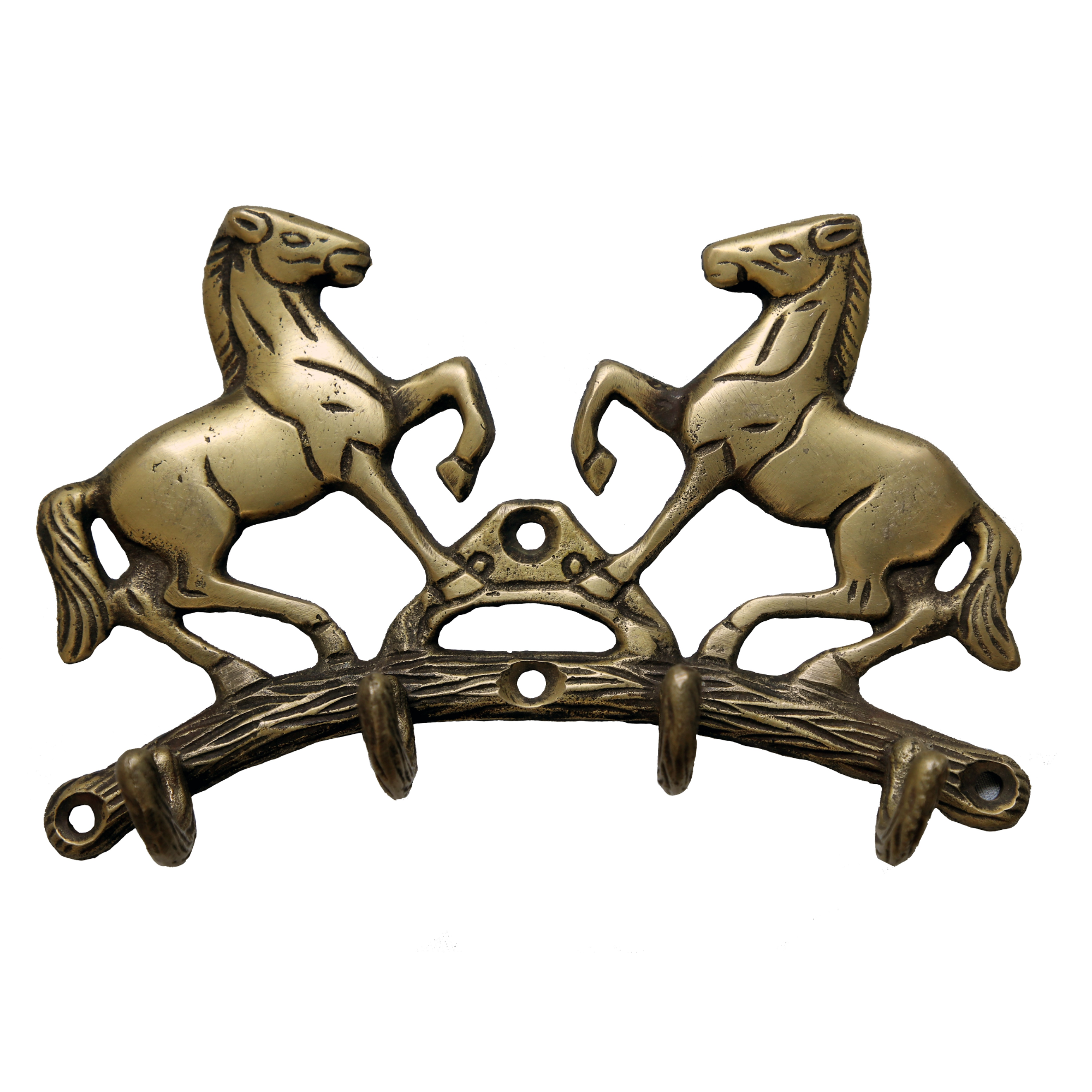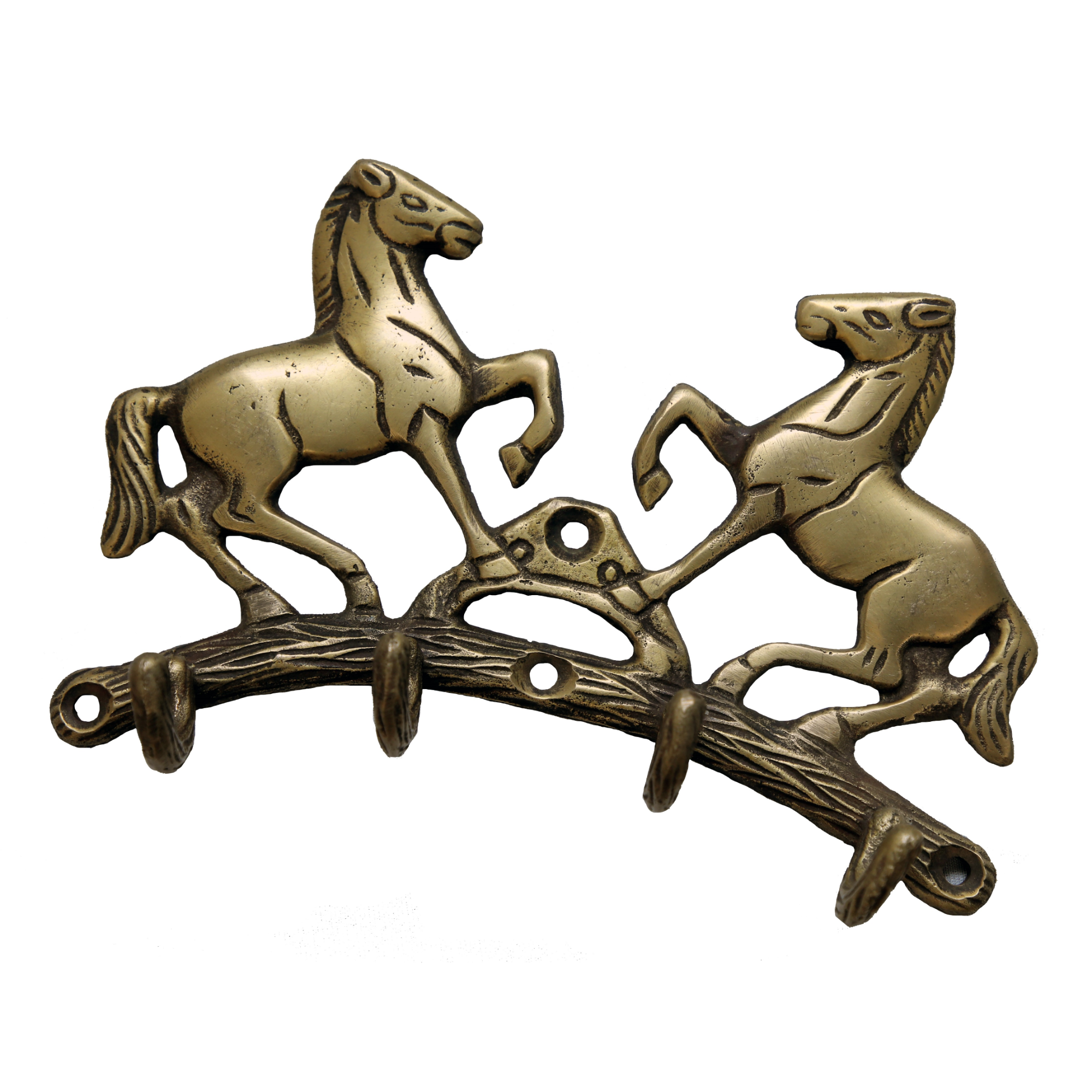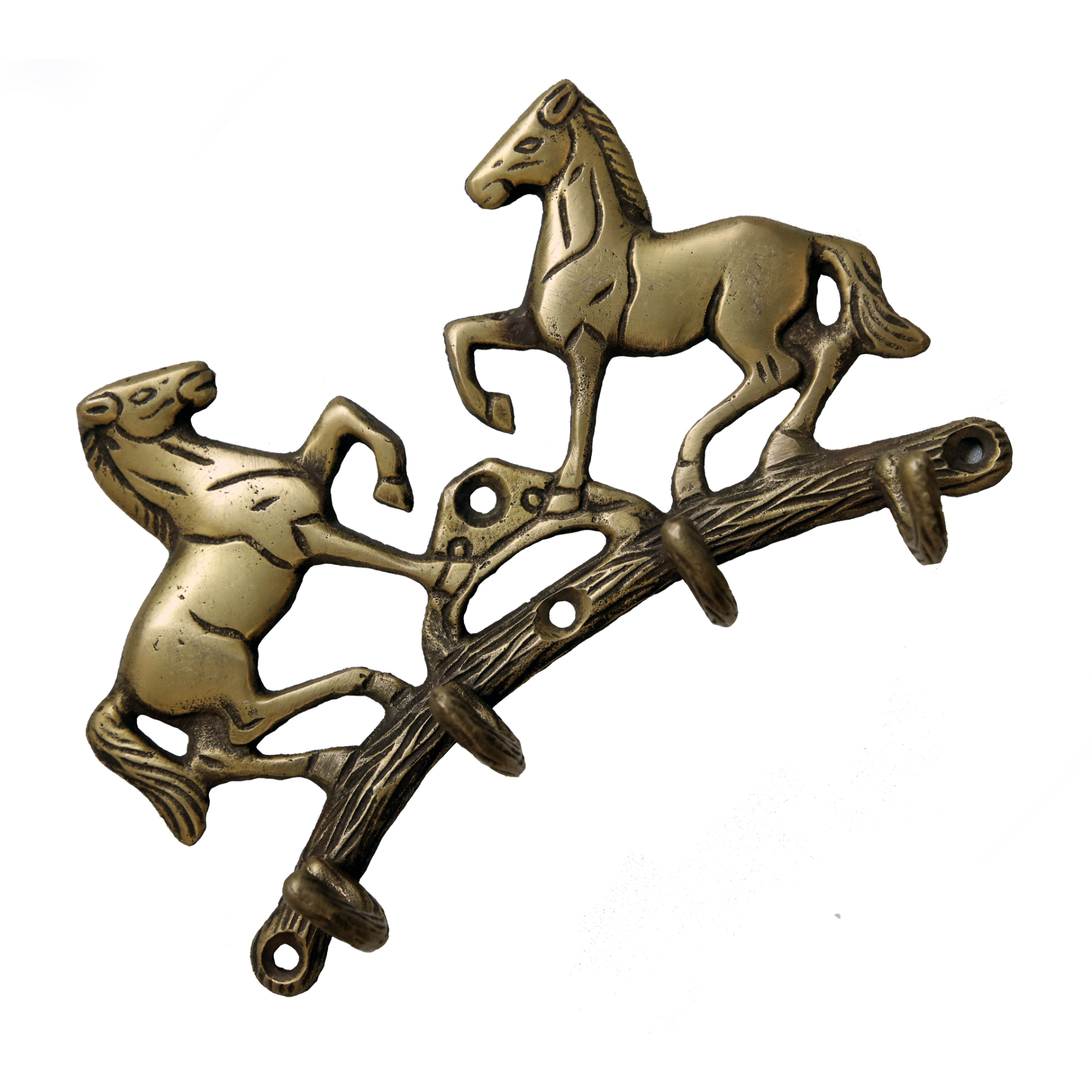 Brass Horse Design Keyholder made with quality brass, sized 6 x 1.3 x 3.5 Inch and weighing 265 grams. A decorative and sturdy wall key hanger for organized storage.