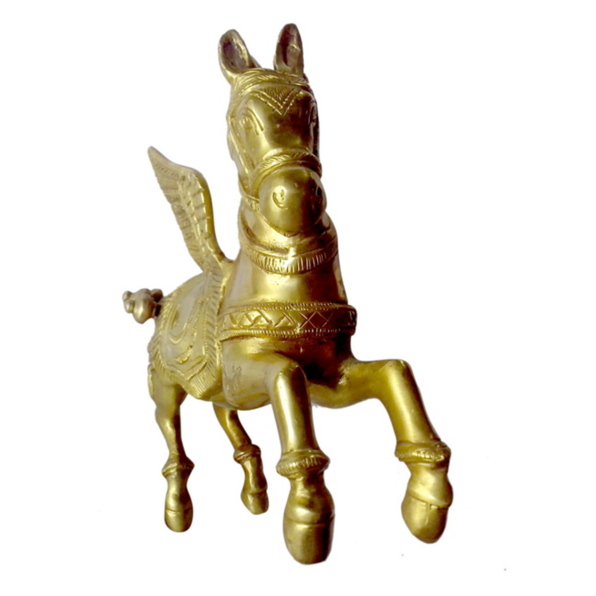 Design: Beautifully detailed brass horse sculpture, showcasing realistic features and artistic craftsmanship.