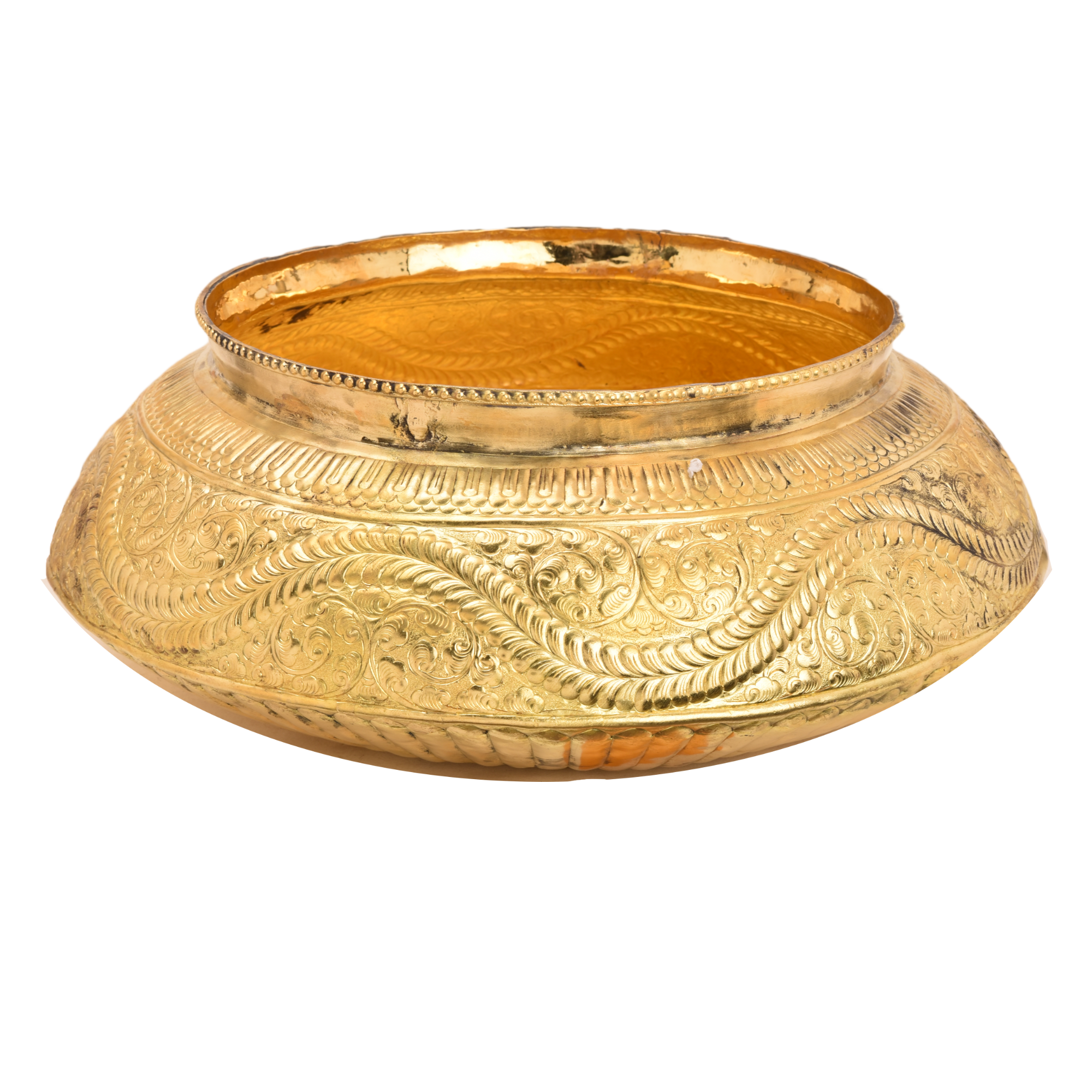 This Brass Hudli features a refined polish and traditional design, making it ideal for home décor, pooja rooms, and festive decorations. Use it as a flower urli or centerpiece to add a classic touch to your interiors.