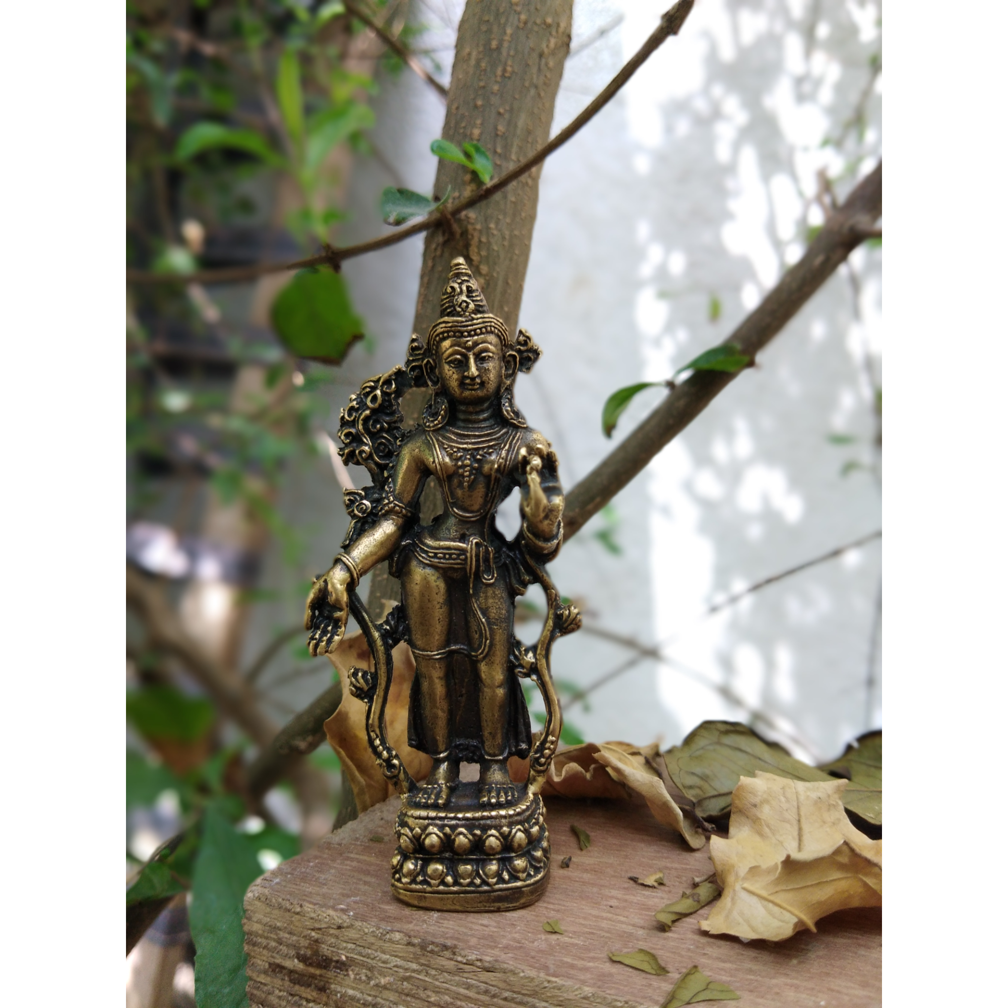 Design: Handcrafted miniature brass statue of Lord Indra, the king of gods, symbolizing power, protection, and divine authority.