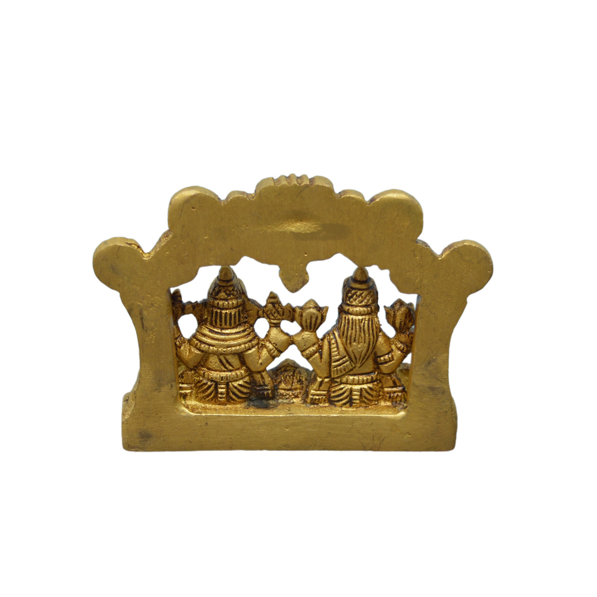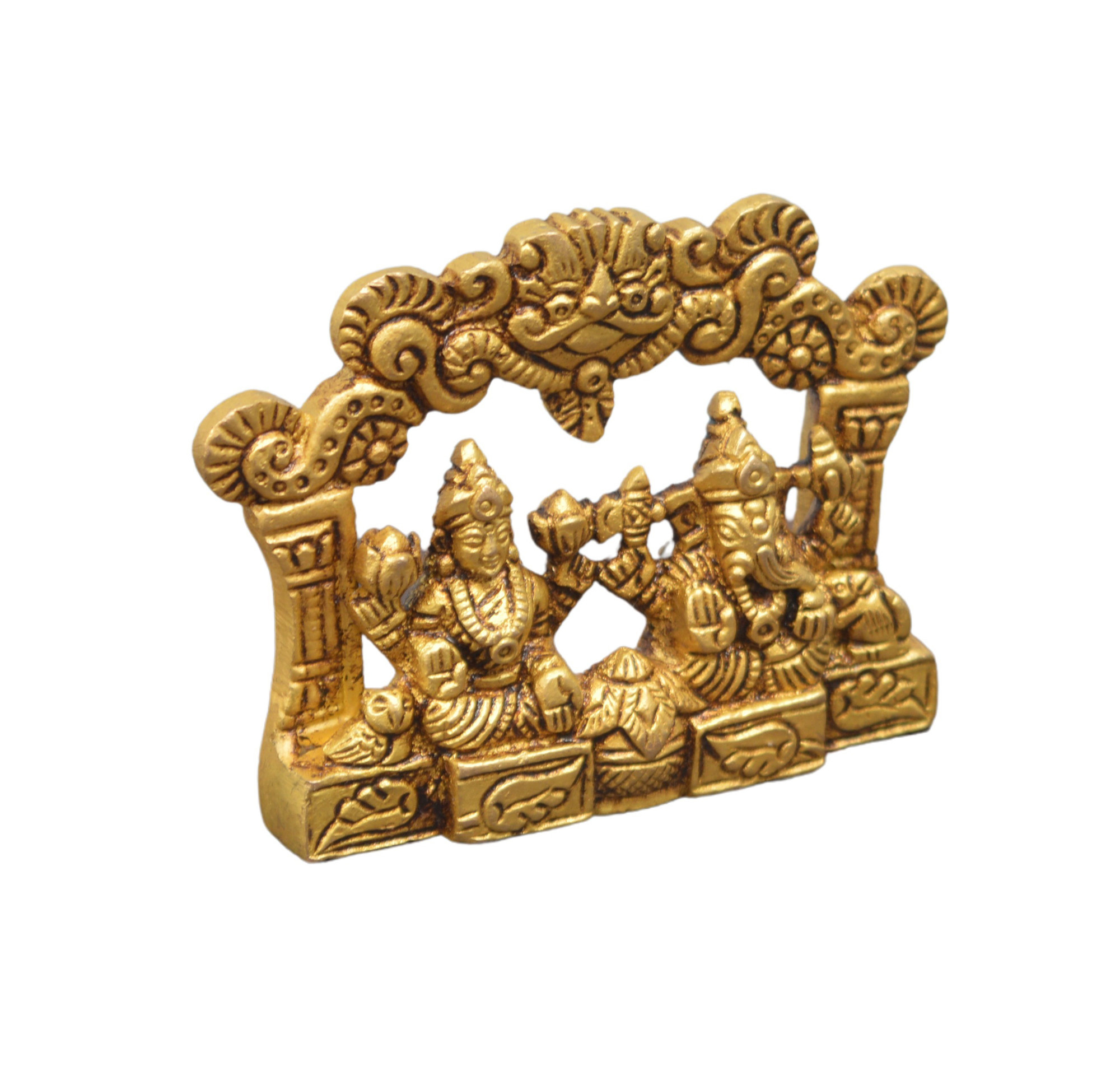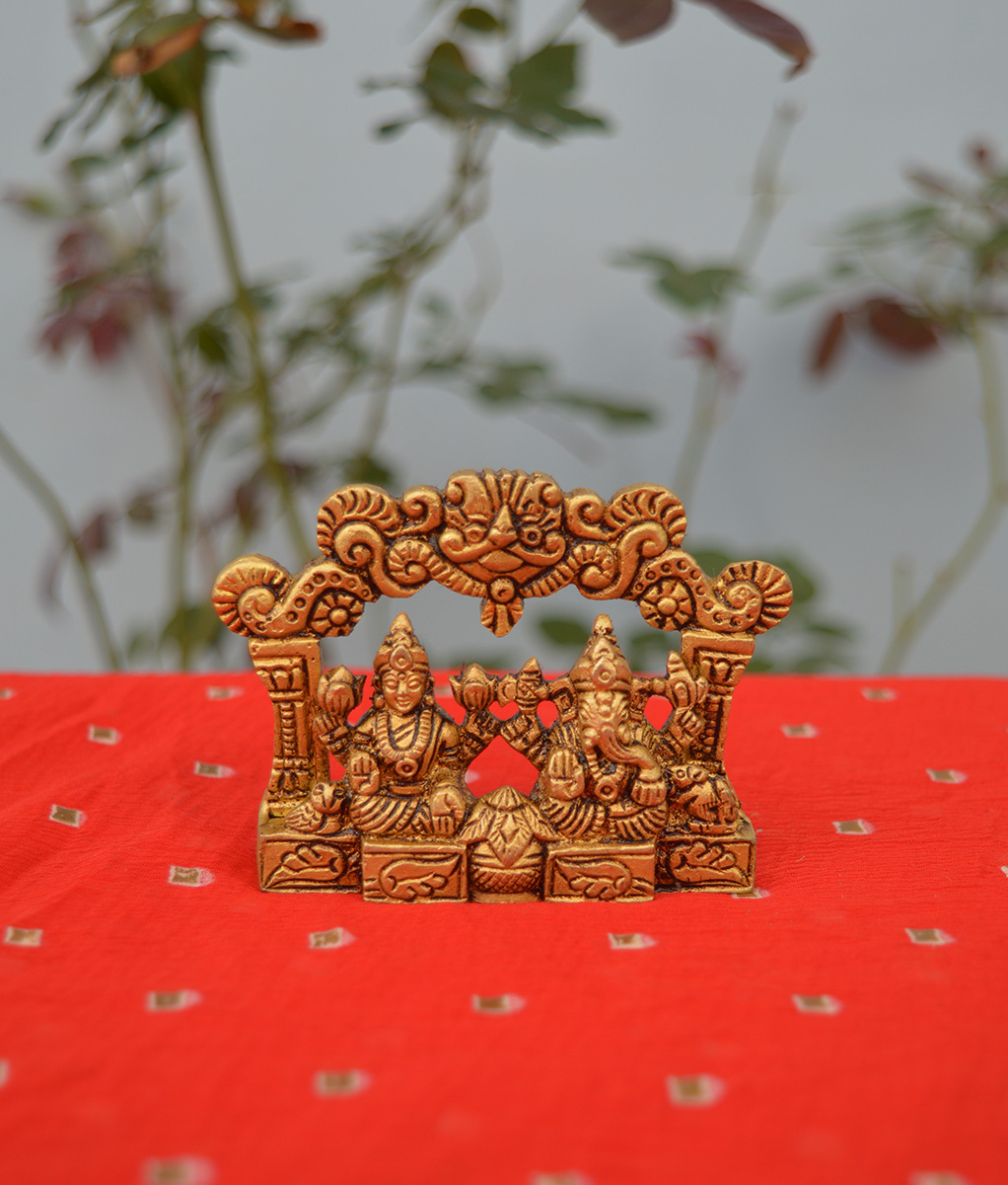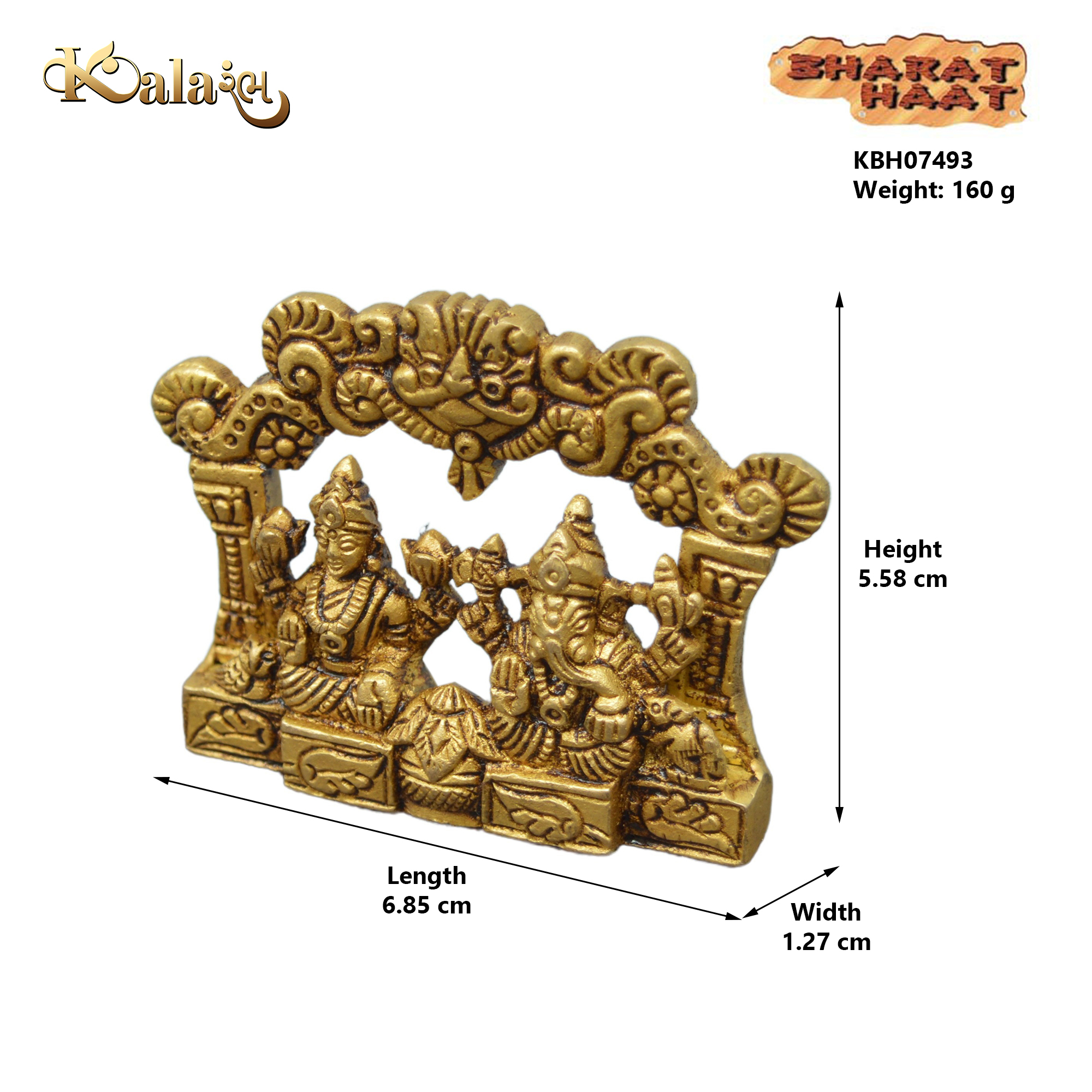 A finely detailed Brass Kaman Ganesh Laxmi Sitting idol crafted in premium brass, ideal for small temples, office desks, and auspicious gifting.