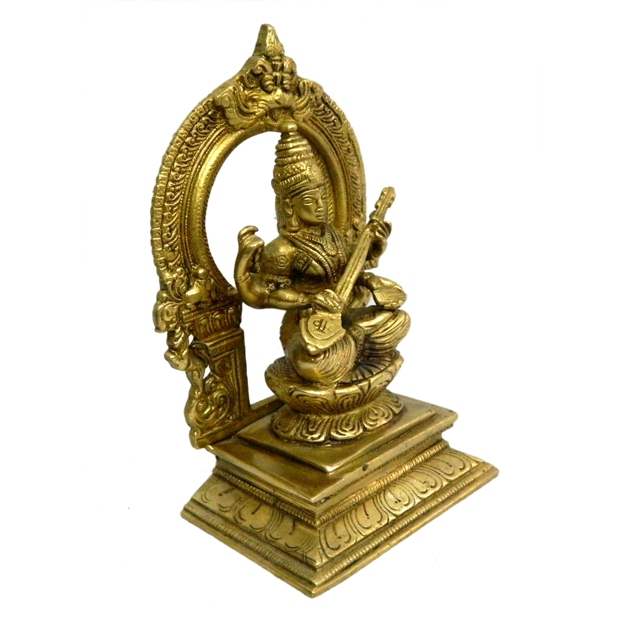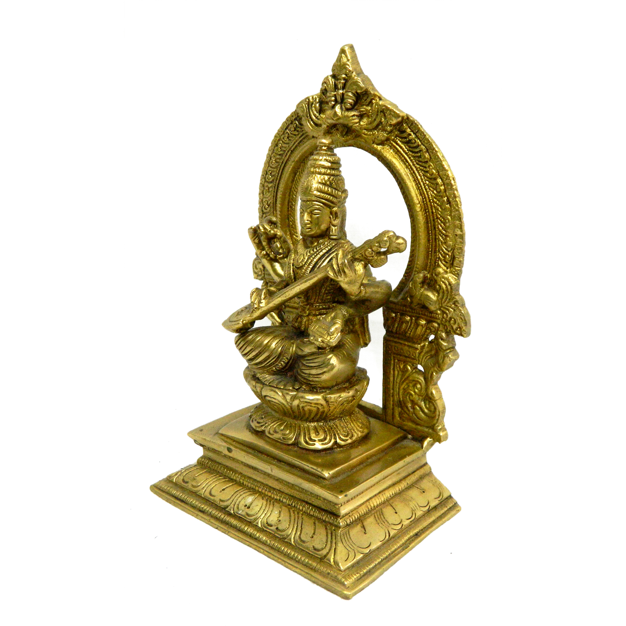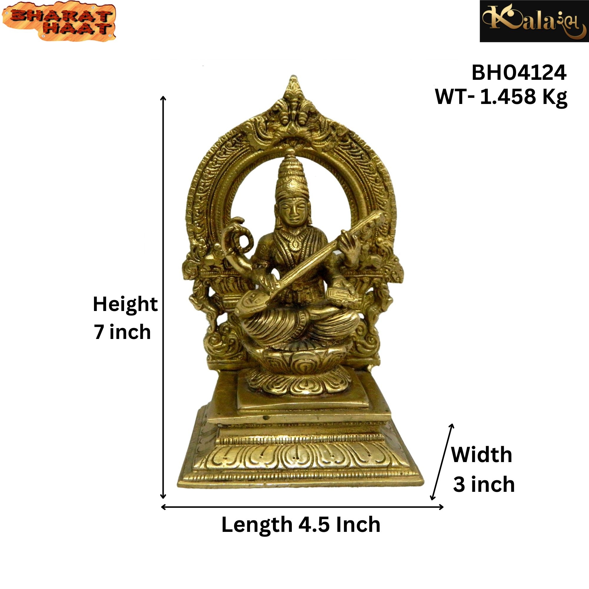 This Brass Kaman Saraswati Idol depicts the Goddess of Knowledge seated gracefully with her veena, symbolizing wisdom, learning, and artistic inspiration. Crafted from high-quality brass with intricate detailing, it is ideal for home, temple, or office decor and makes a thoughtful spiritual gift.