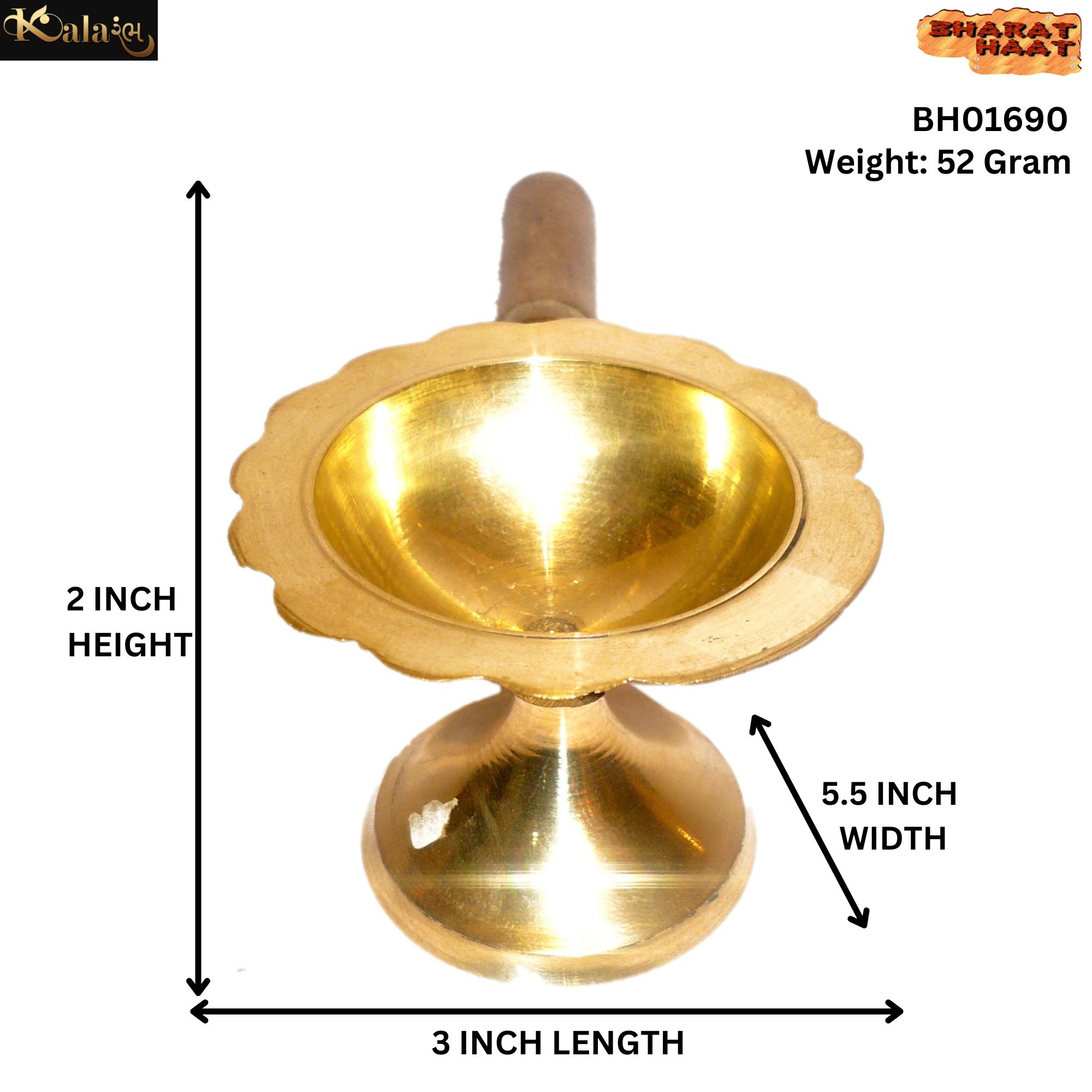 Mid-size Brass Kapoor Divi With Handle — ideal for pooja rituals and meditation, crafted with precision from high-quality brass.