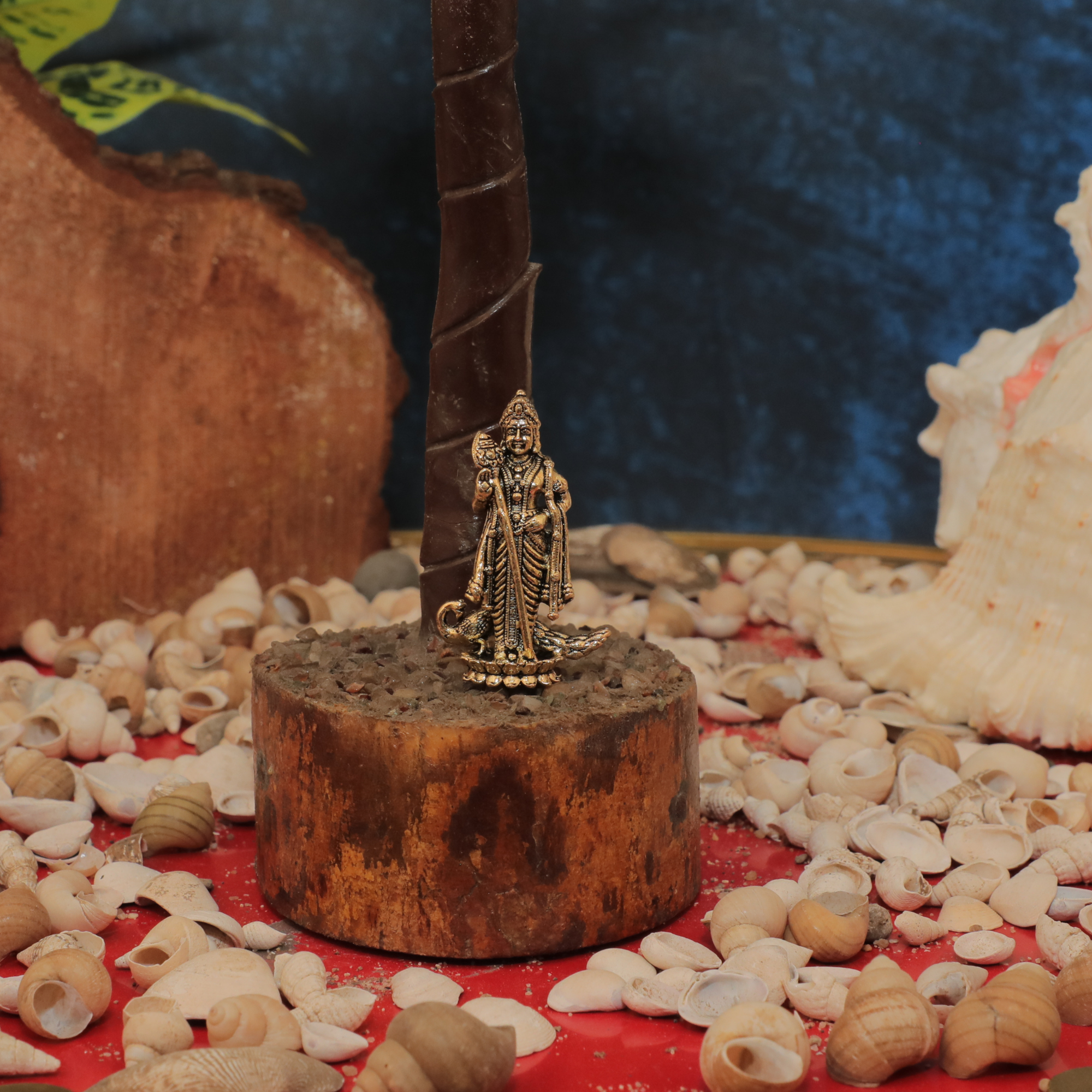 Design: Elegant brass design with smooth polish, showcasing artistic detailing and a traditional devotional look.