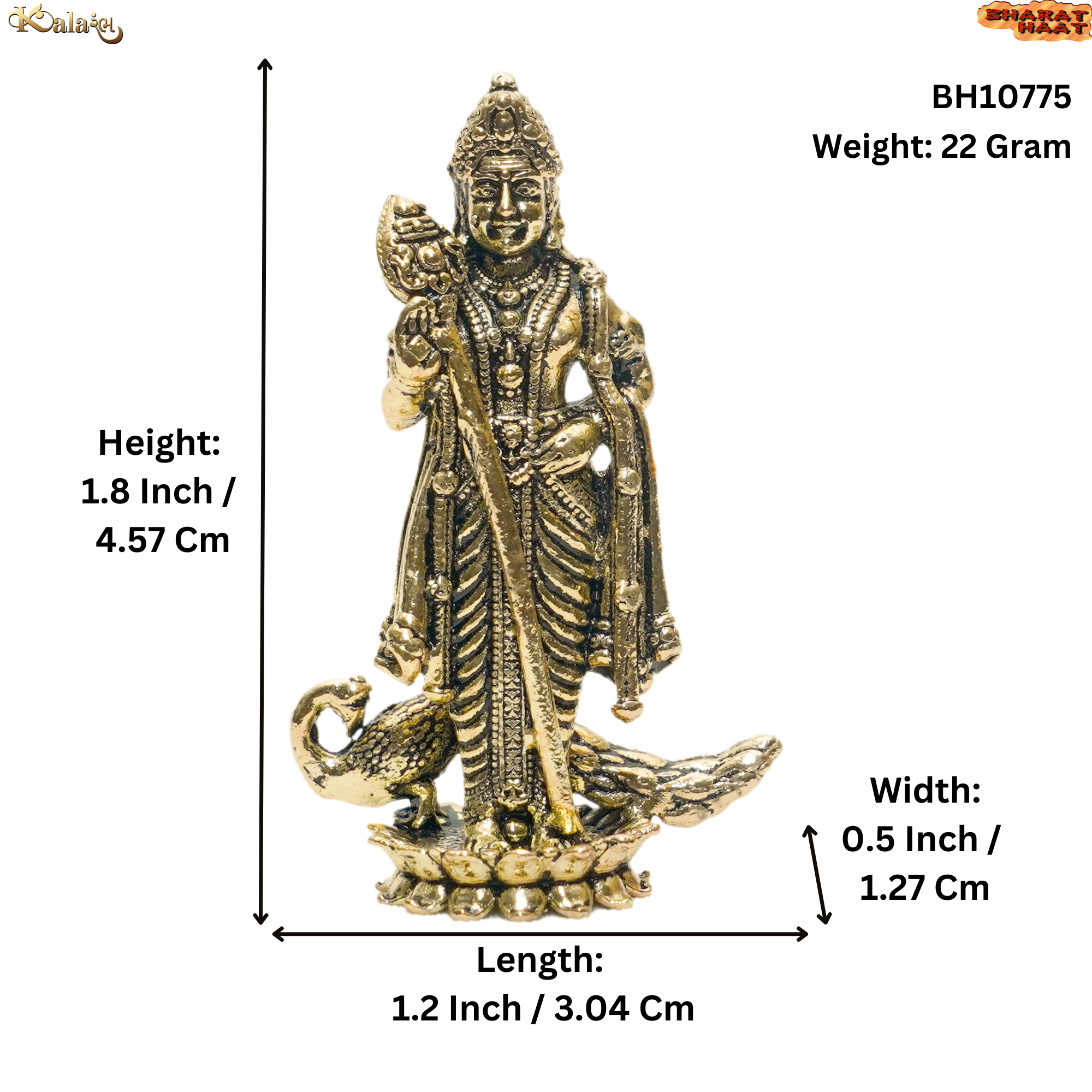 Compact and elegant Brass Kartikeya Idol, symbolizing divine strength and wisdom — ideal for pooja setup, home décor, or as a sacred gift.