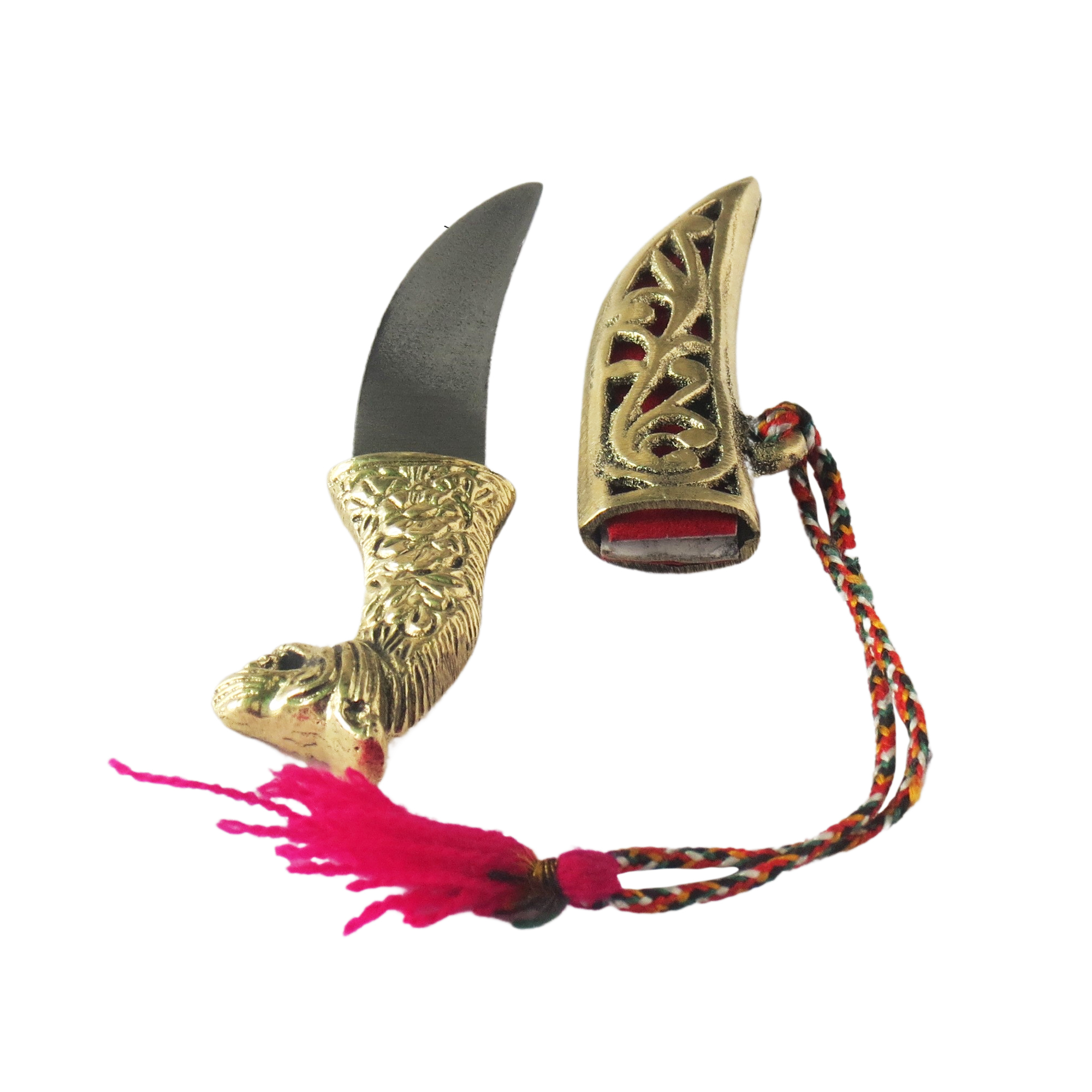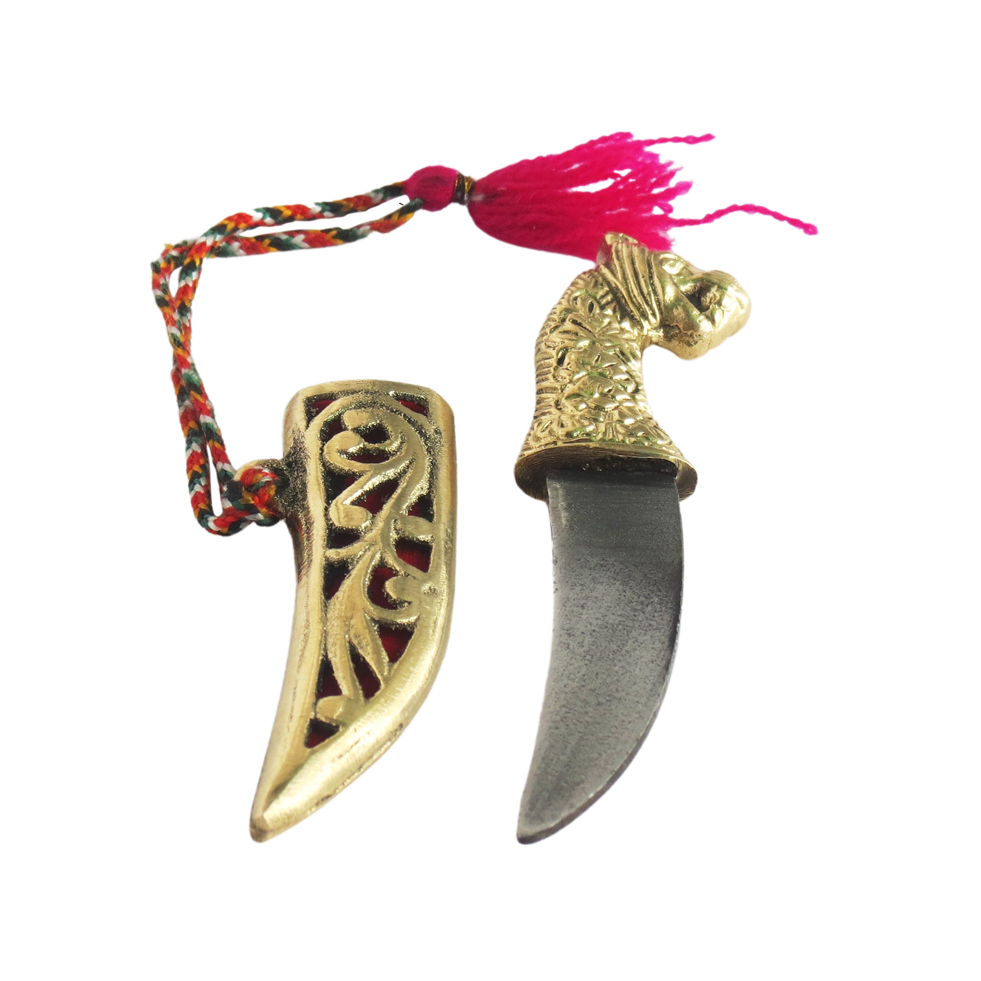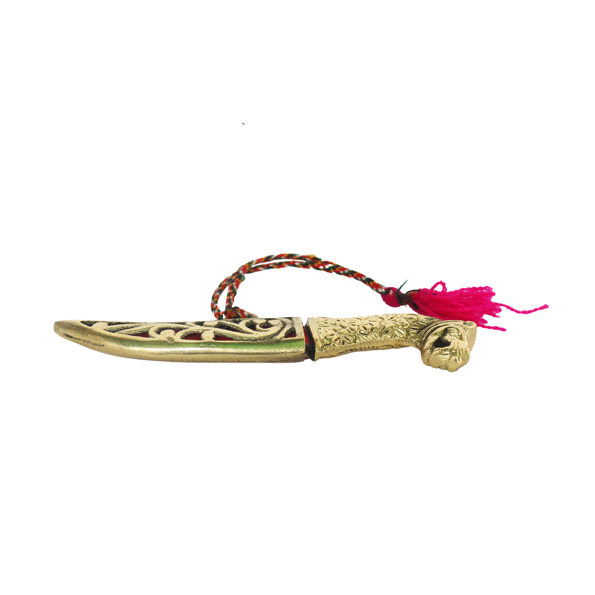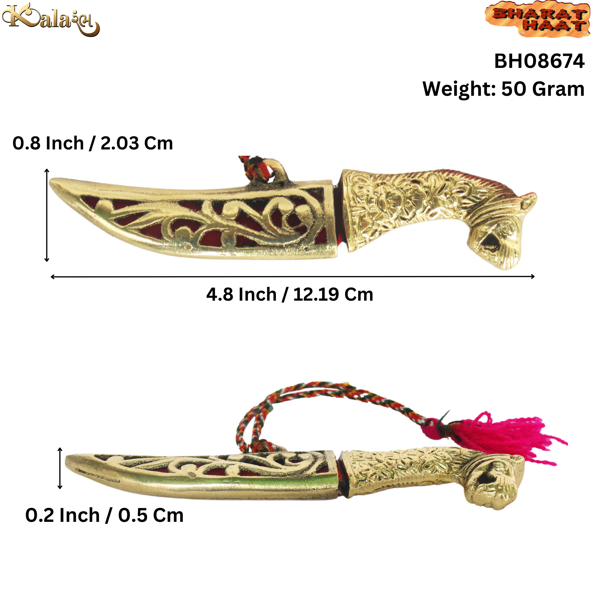 Expertly crafted from premium-quality solid brass, this miniature version measures 0.8 x 0.2 x 4.8 inches (2.03 x 0.5 x 12.19 cm) and weighs 50 grams. Despite its compact size, every detail is carefully carved to reflect the elegance of traditional Indian weaponry. The gleaming brass finish adds a regal and antique charm to your décor.
