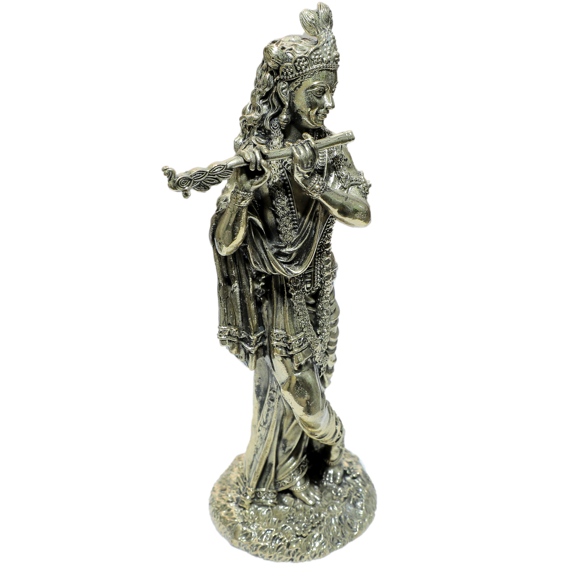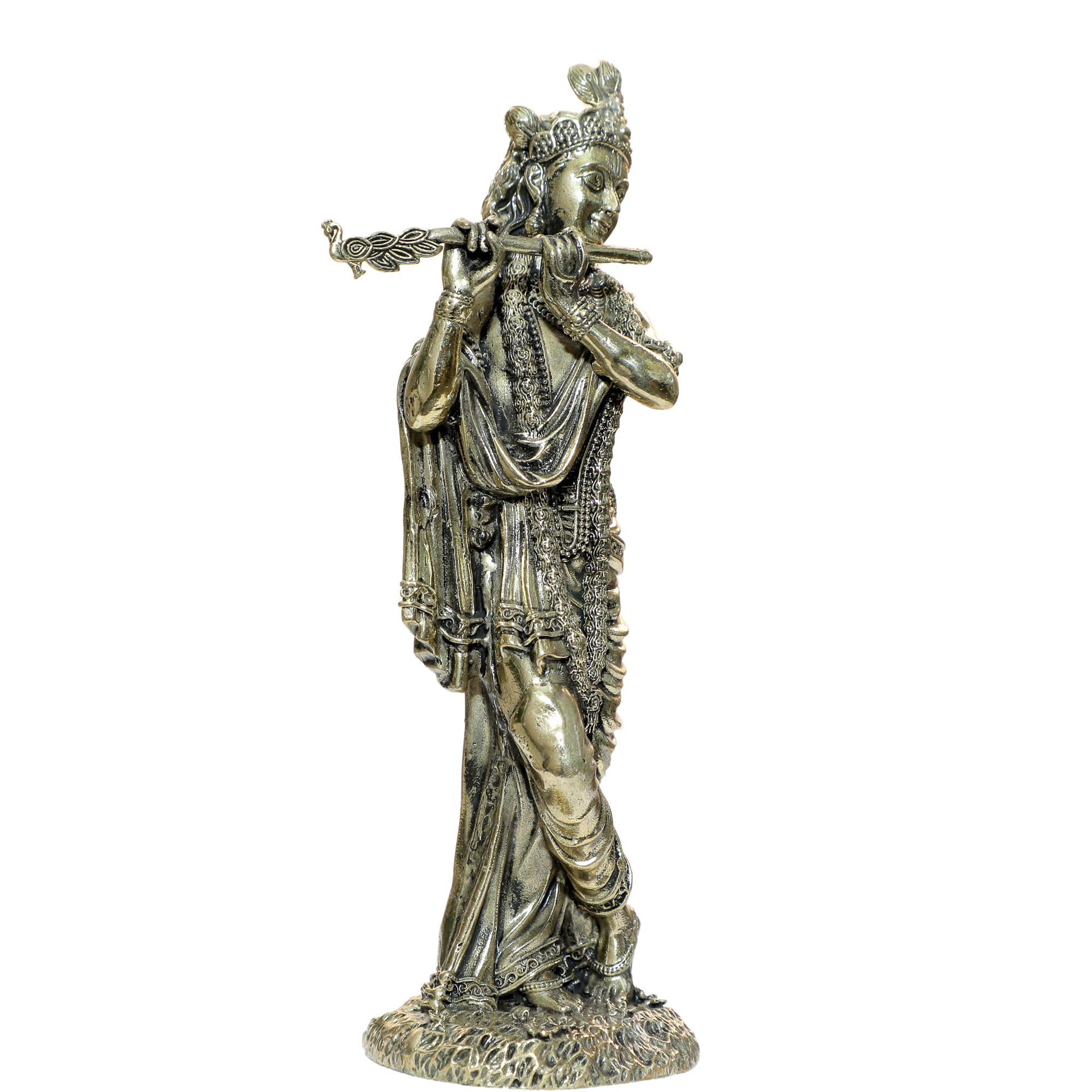 Beautiful Brass Lord Krishna idol in elegant standing posture.