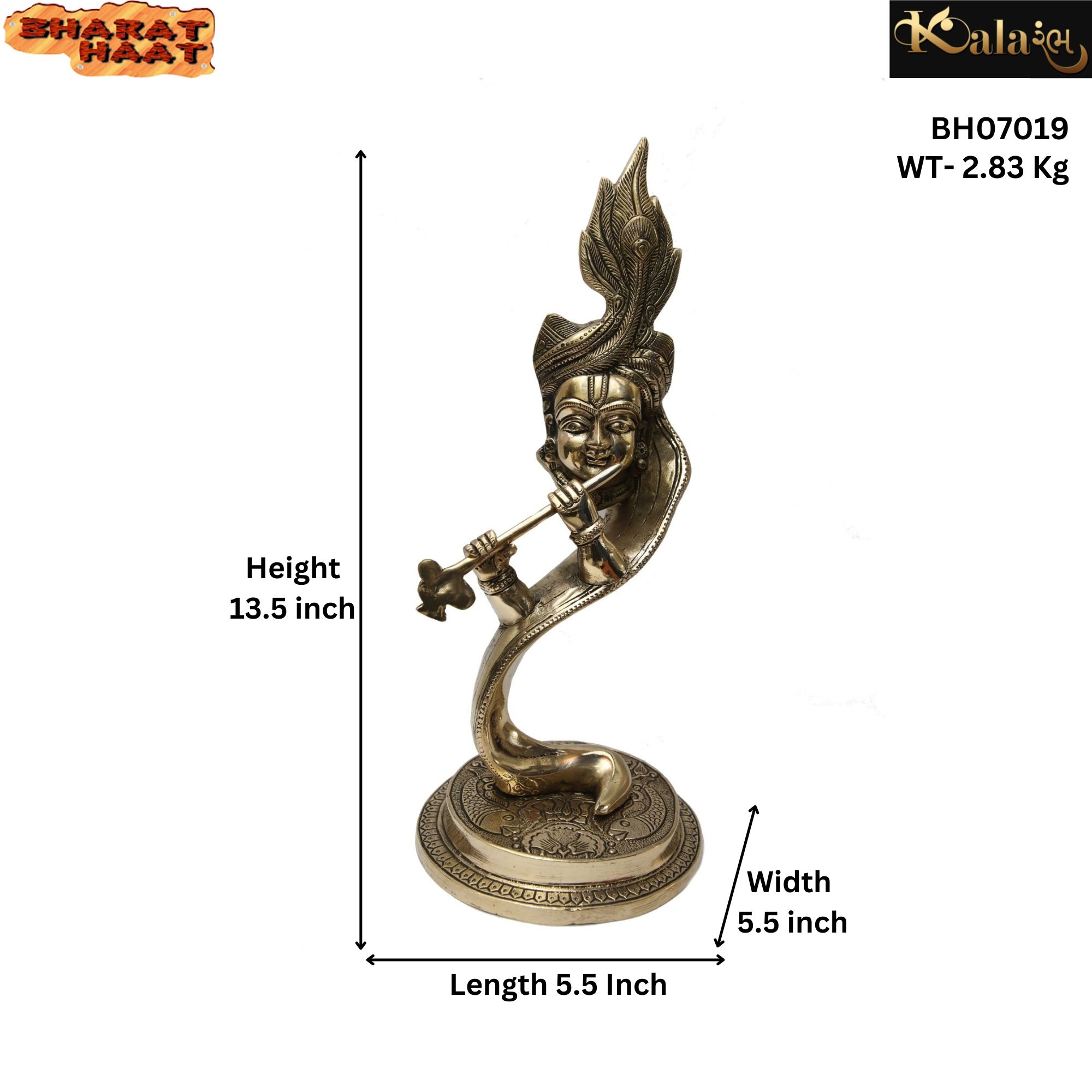 Bring the charm of Lord Krishna to your home with this Brass Krishna Statue – elegant, durable, and ideal for spiritual décor or gifting. Size: 5.5 x 5.5 x 13.5 inches, Weight: 2.83 Kg.