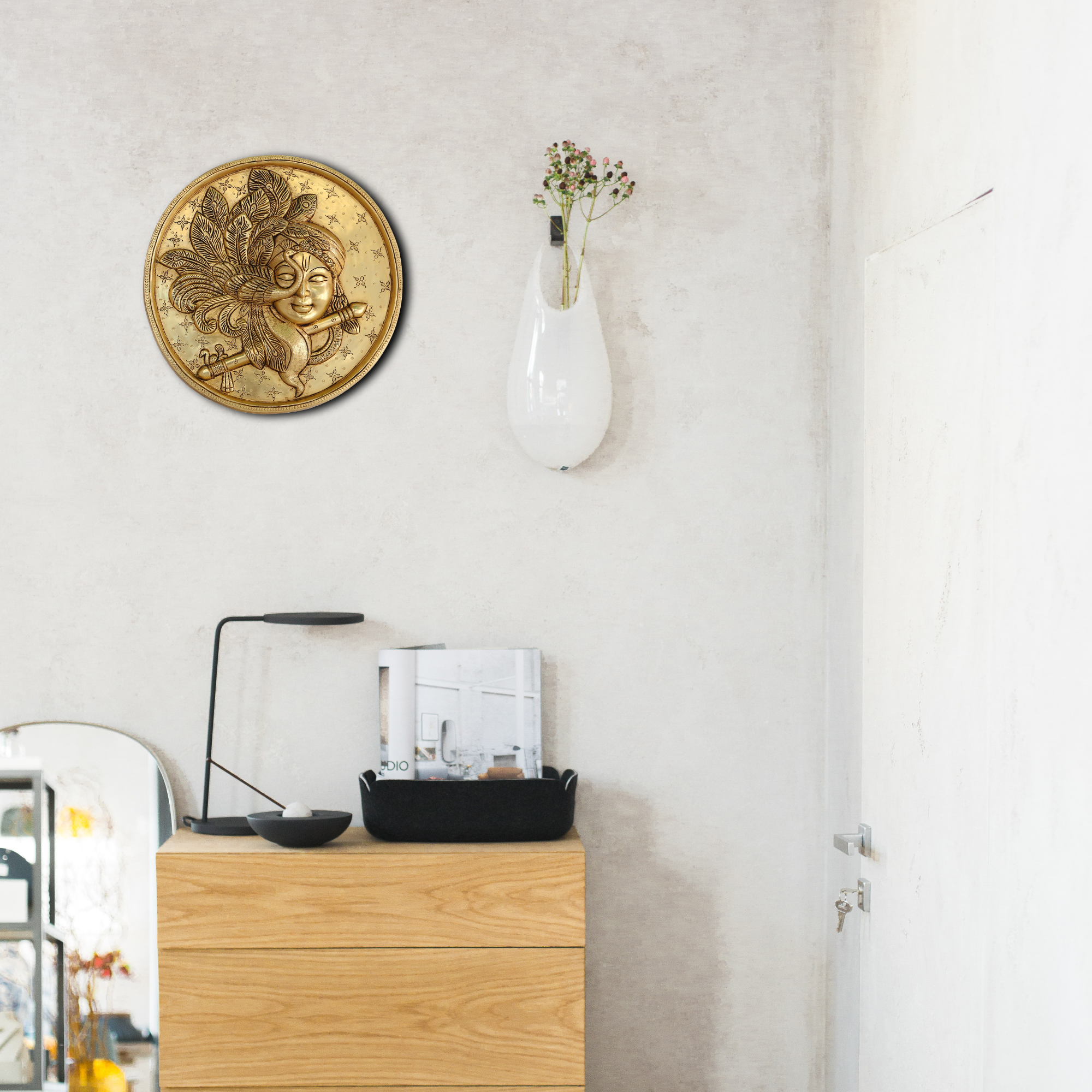 Elegant Brass Krishna Plate with intricate craftsmanship. Ideal for pooja rituals, home décor, and gifting.