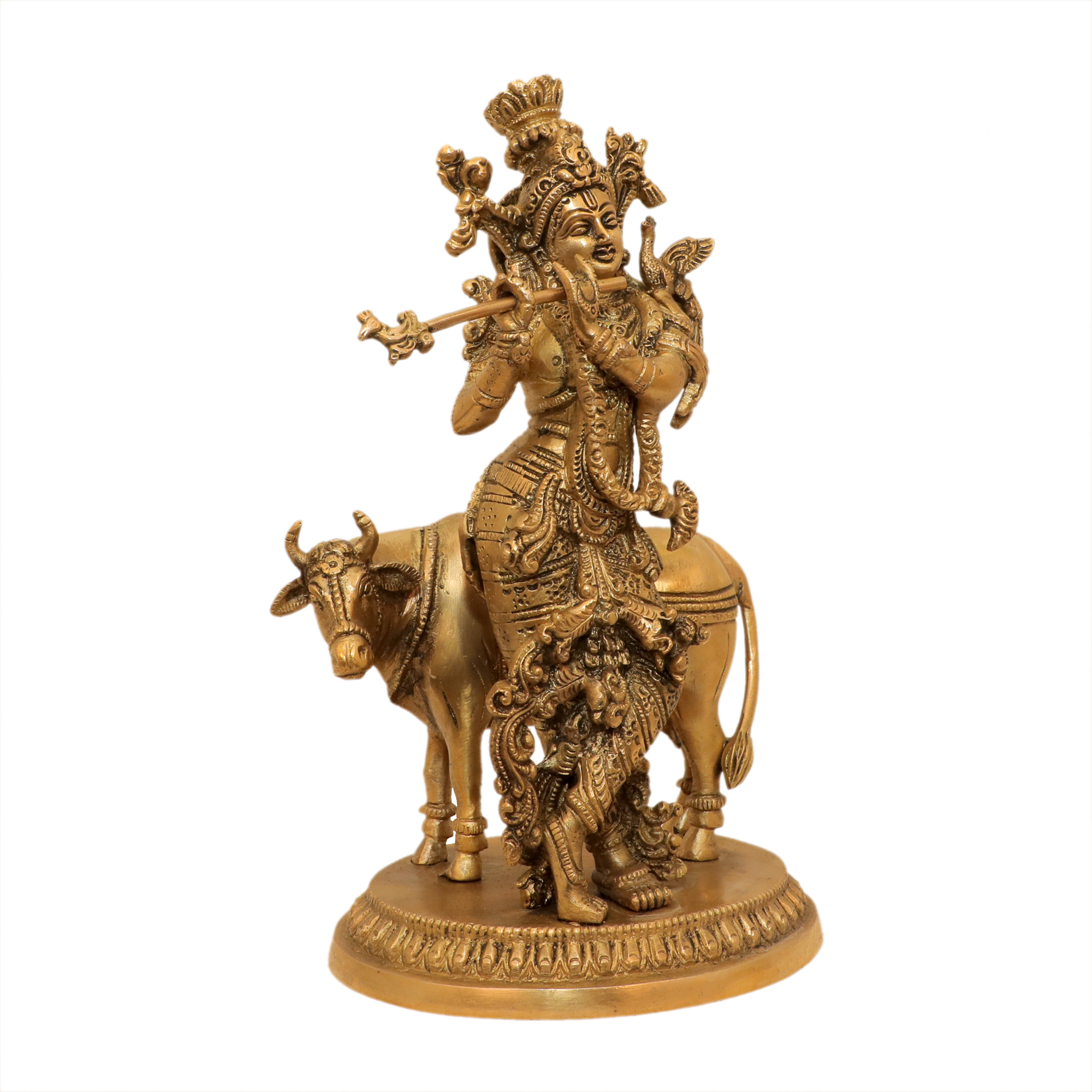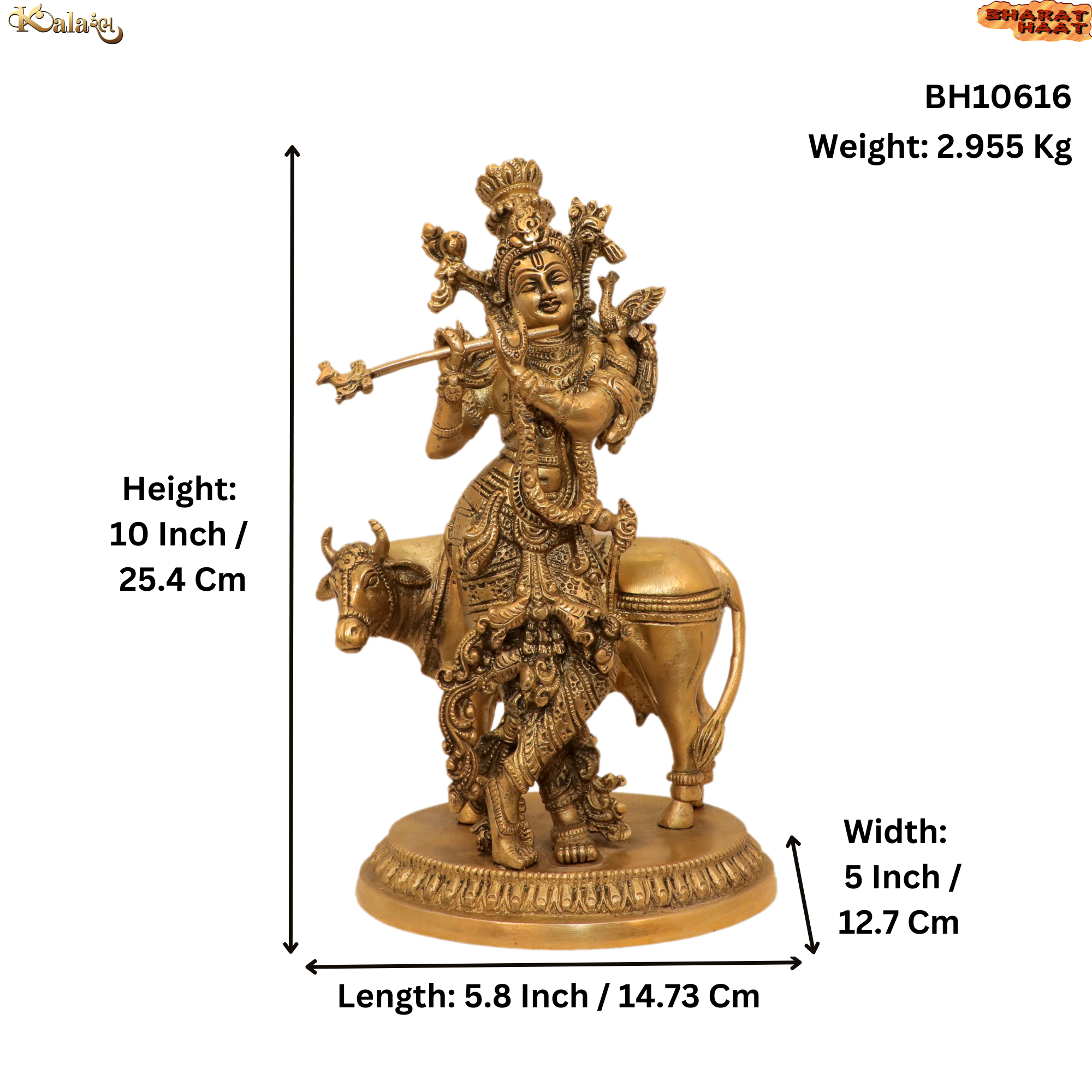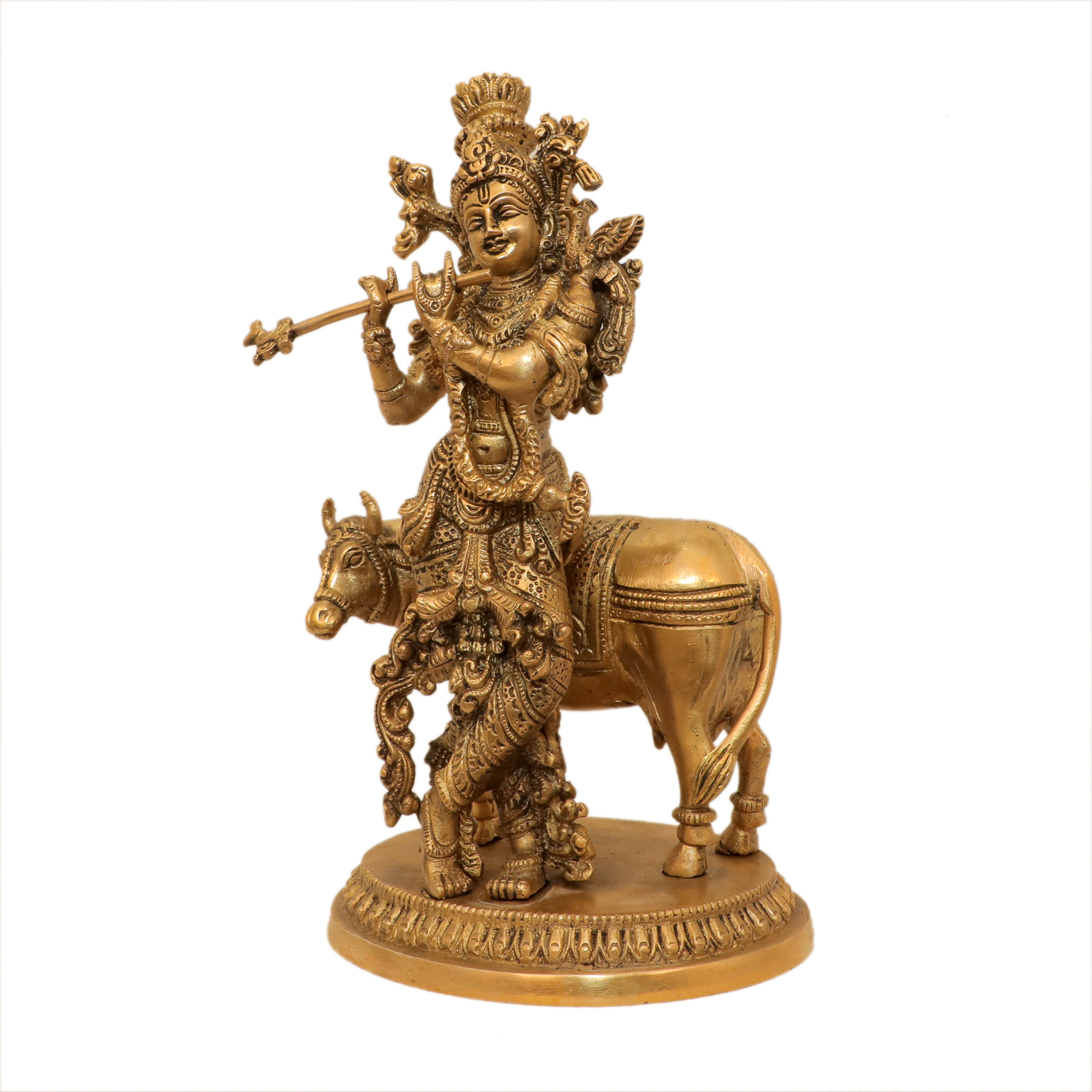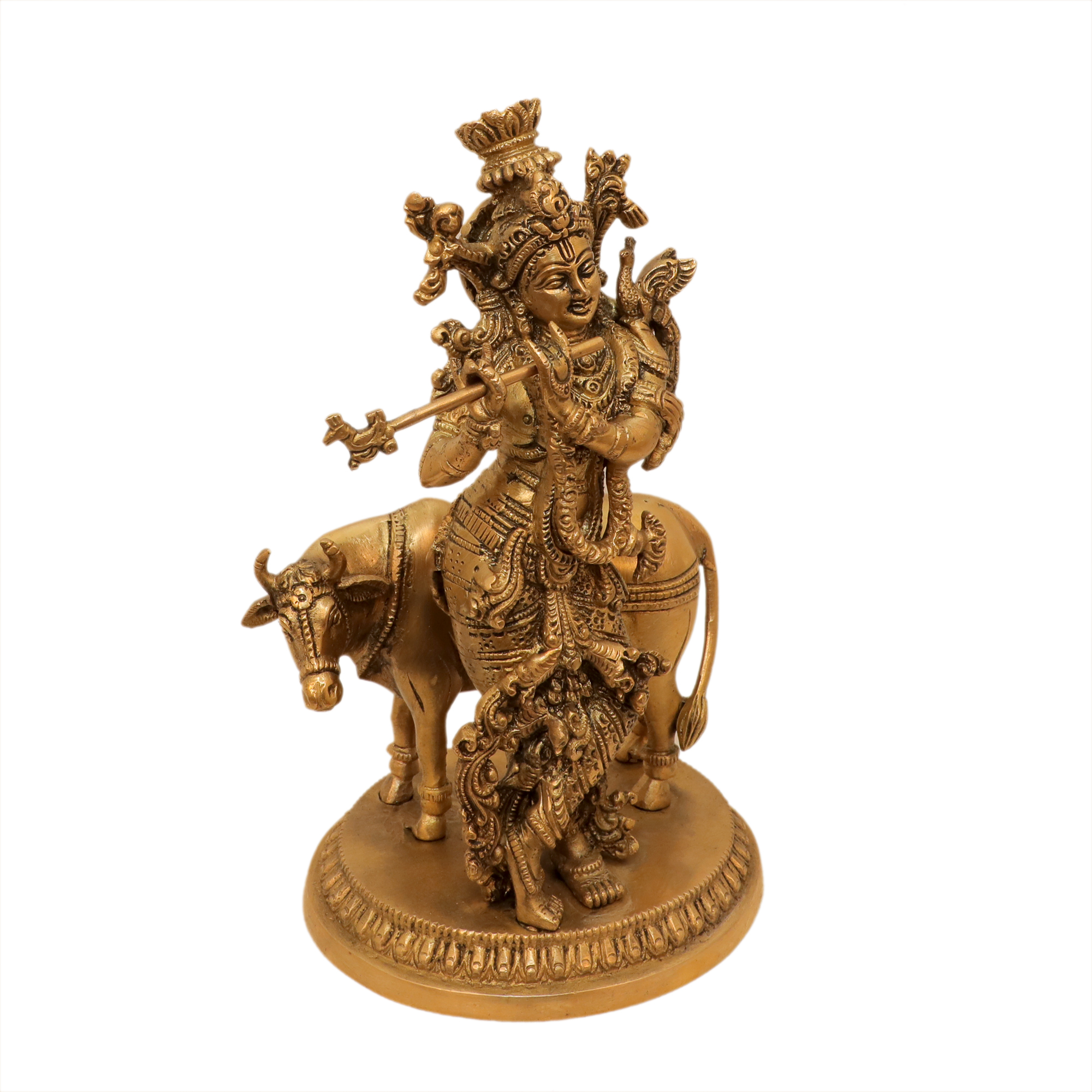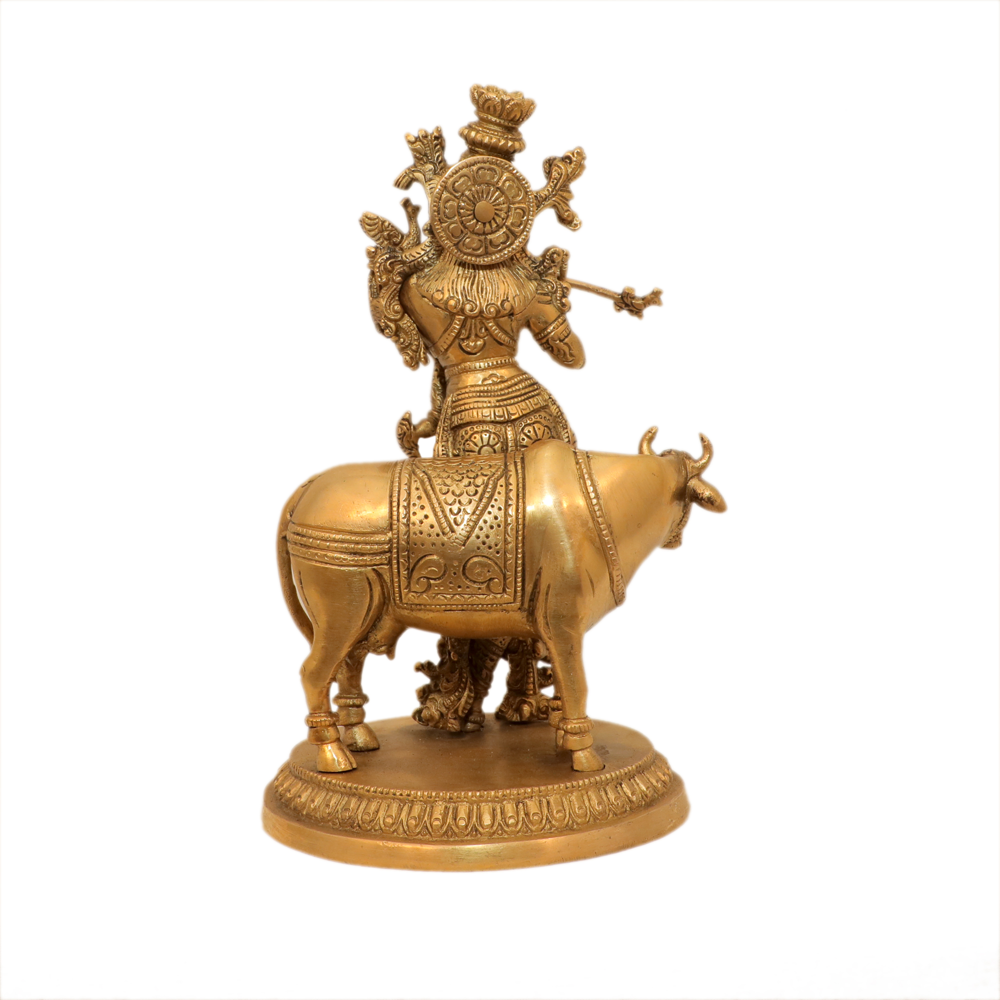 Beautifully handcrafted Brass Krishna with Cow, symbolising devotion, love, and pastoral charm.