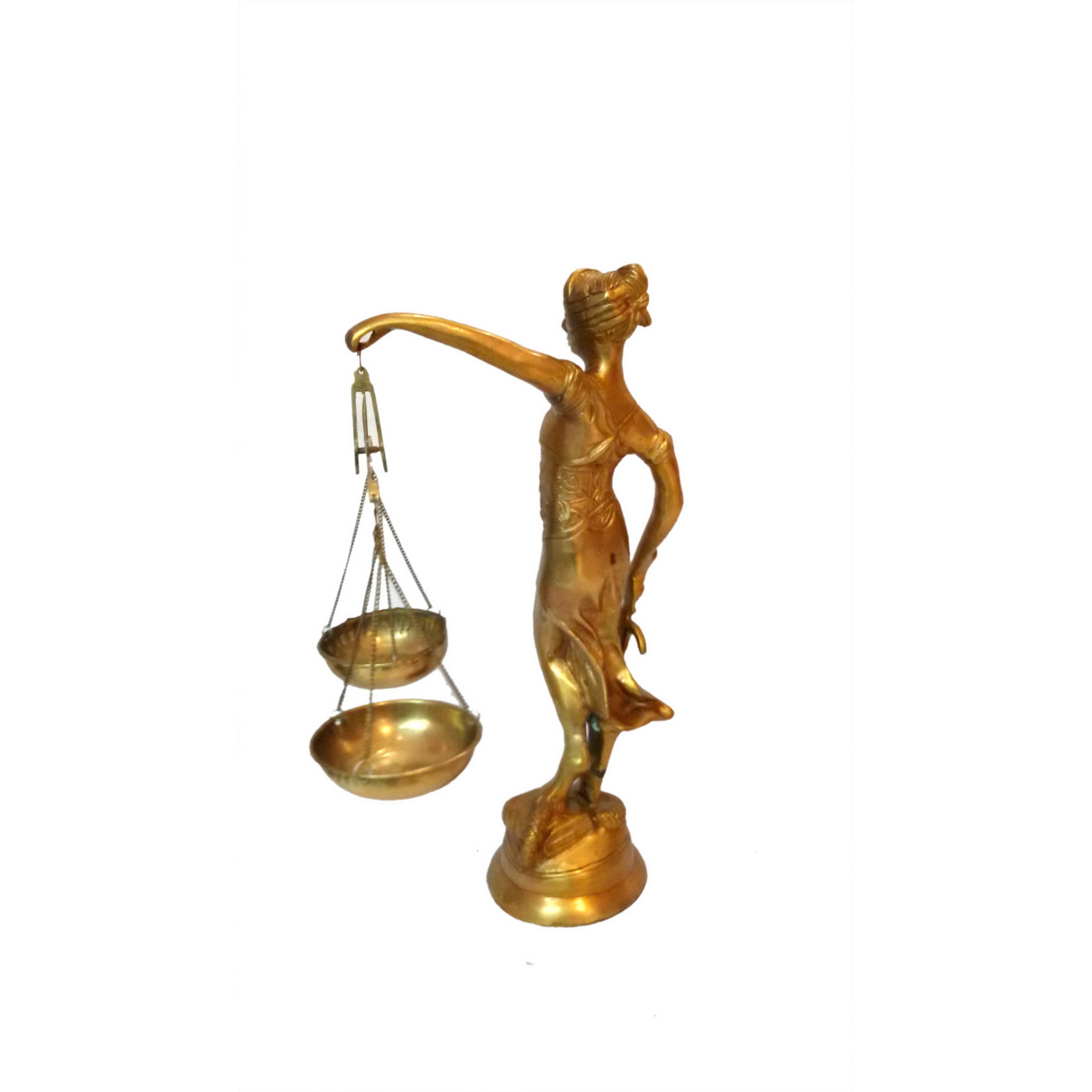 Handcrafted Brass Justice Lady – 13.5-inch decorative brass statue, ideal for office décor, study rooms, or gifting.