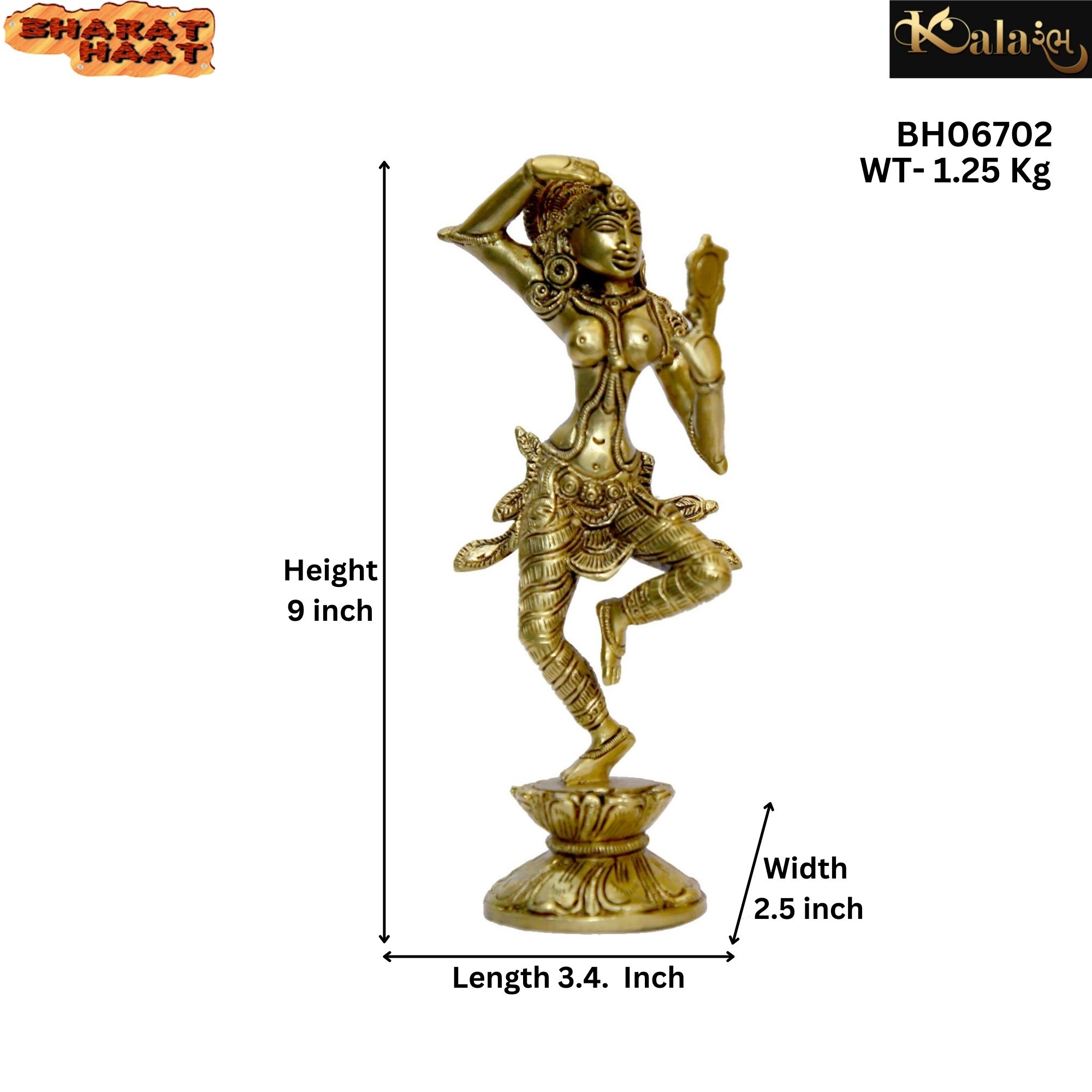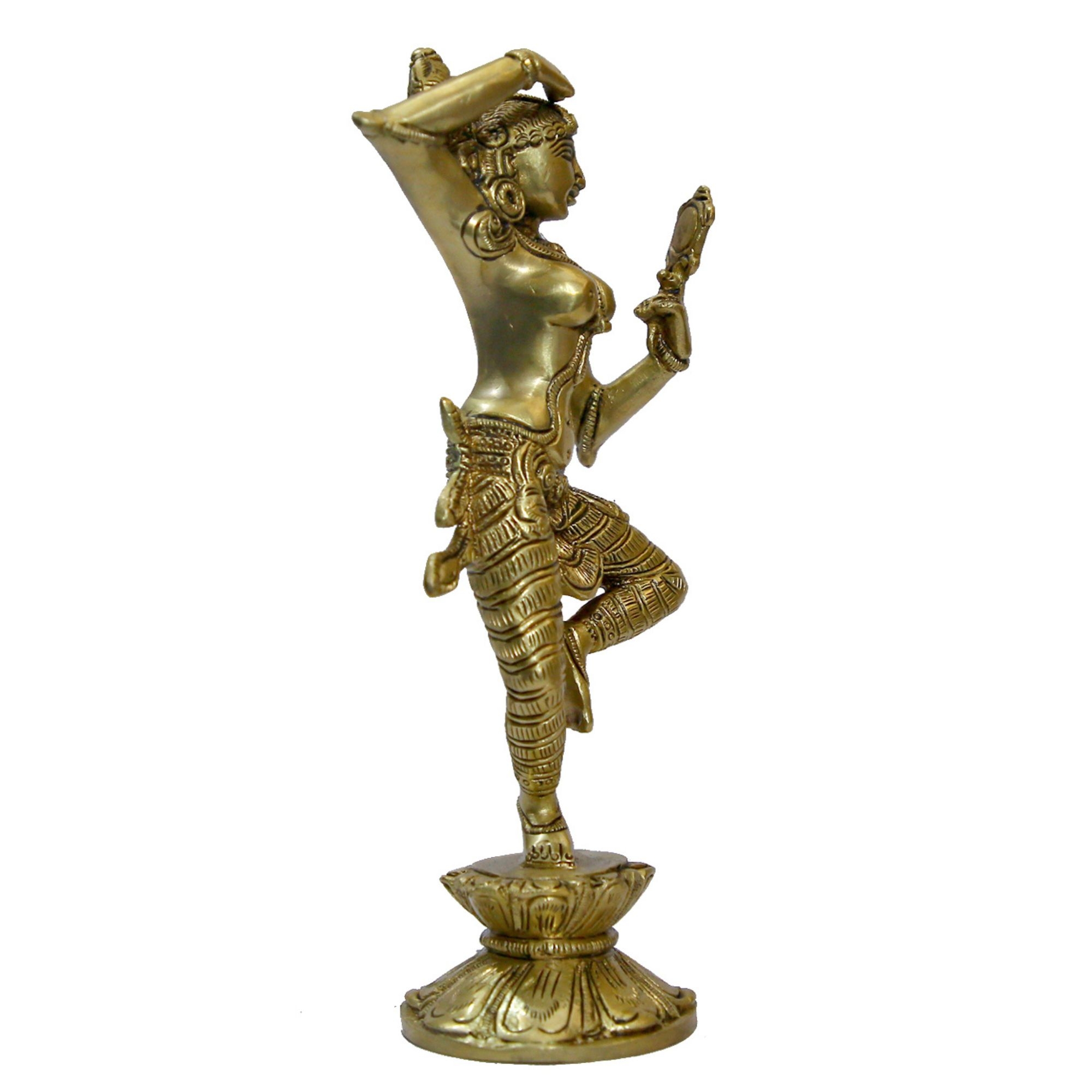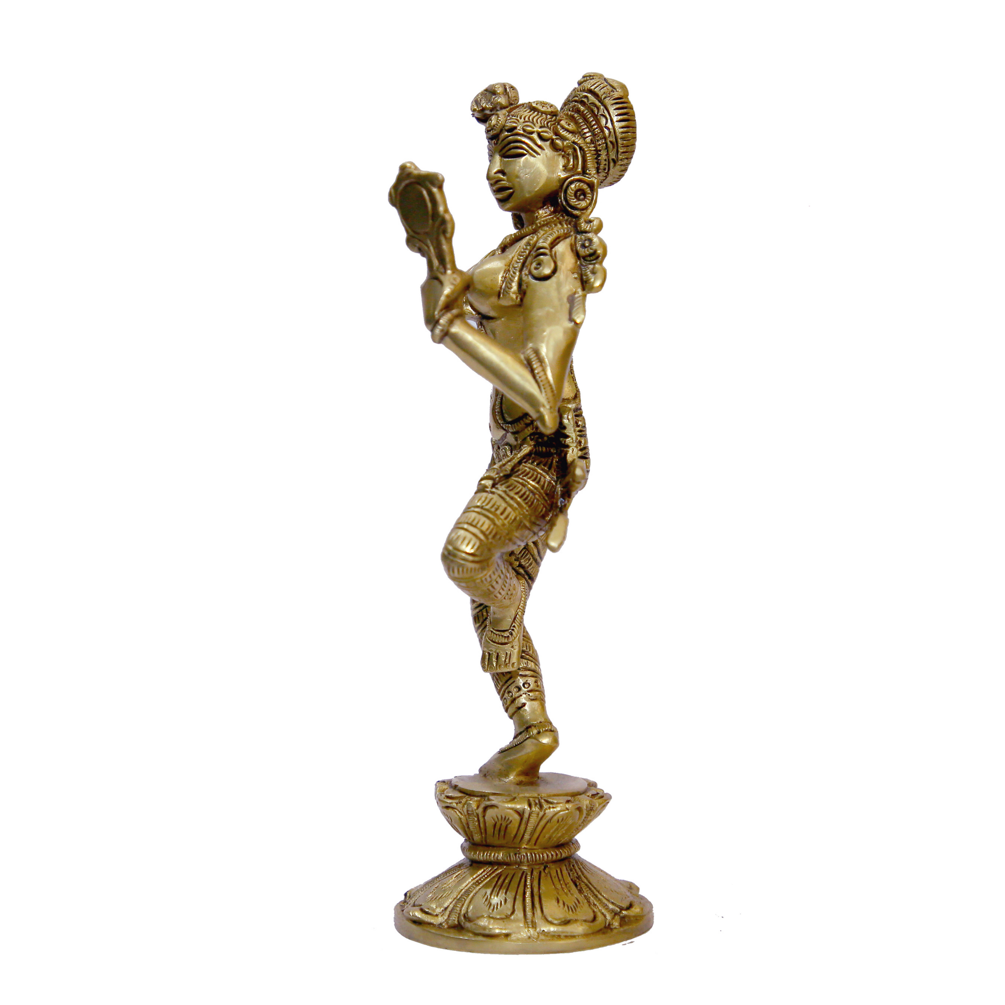 Graceful Brass Lady with Mirror Showpiece featuring intricate handcrafted details, showcasing feminine charm and classic beauty. Size: 3.4 x 2.5 x 9 Inch, Weight: 1.25 Kg, 1 Piece.